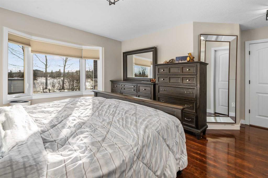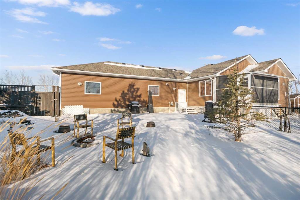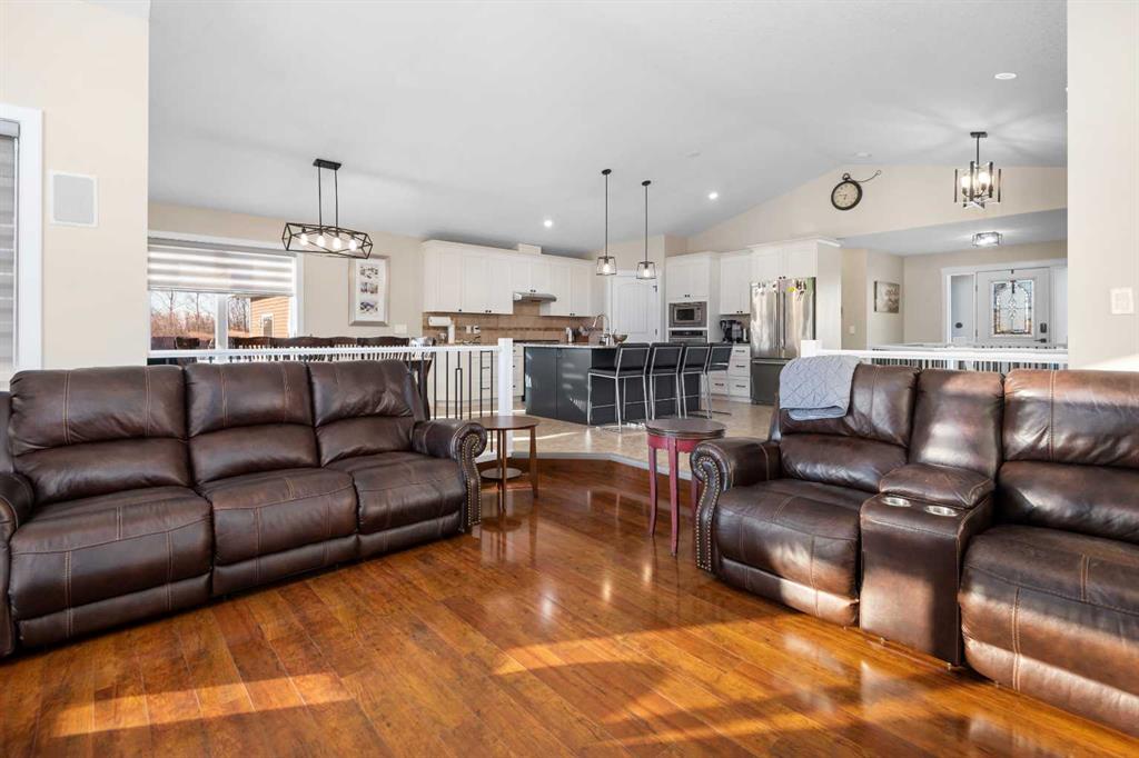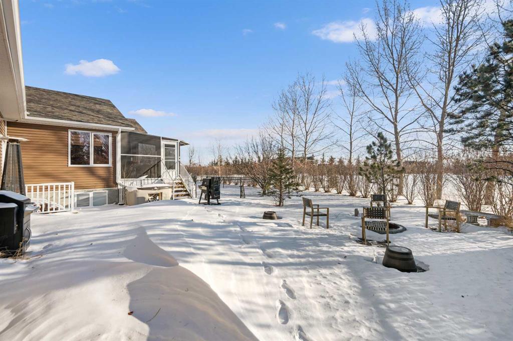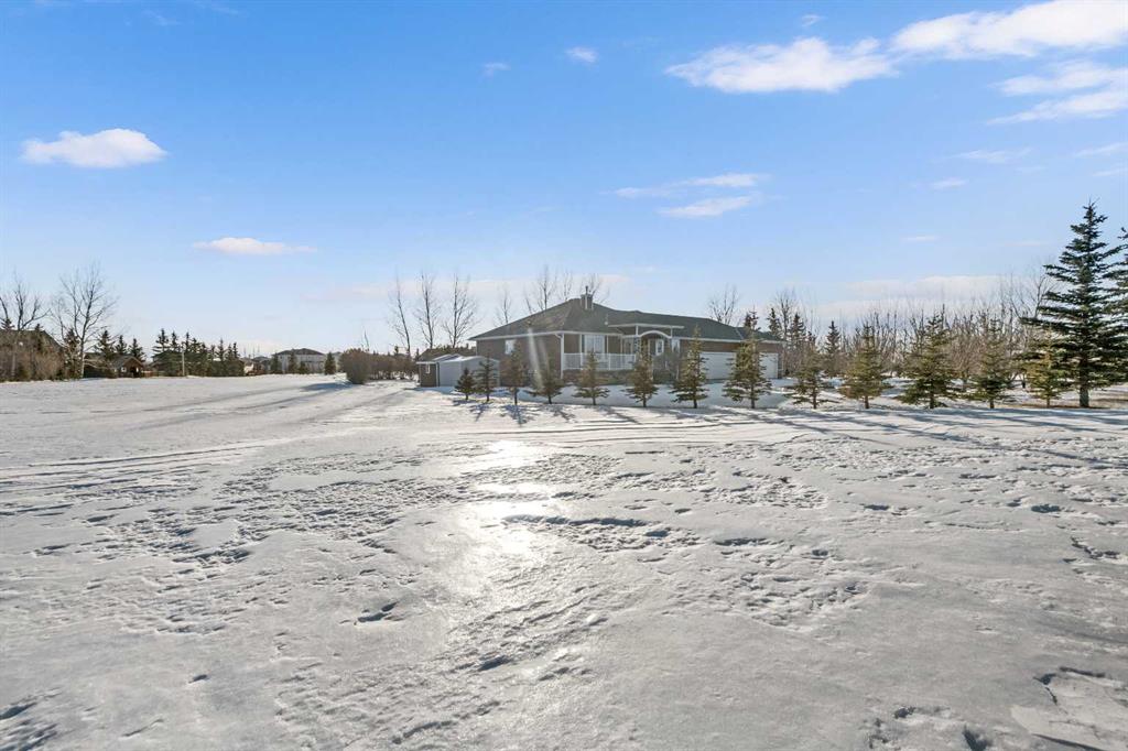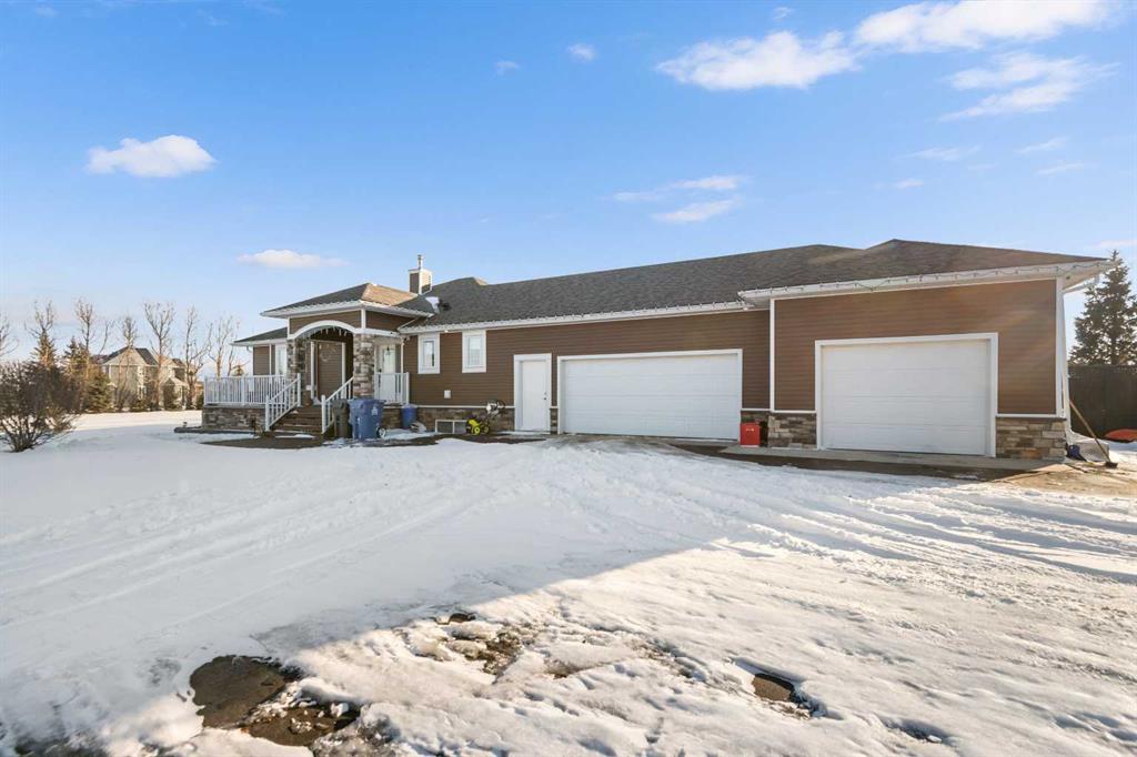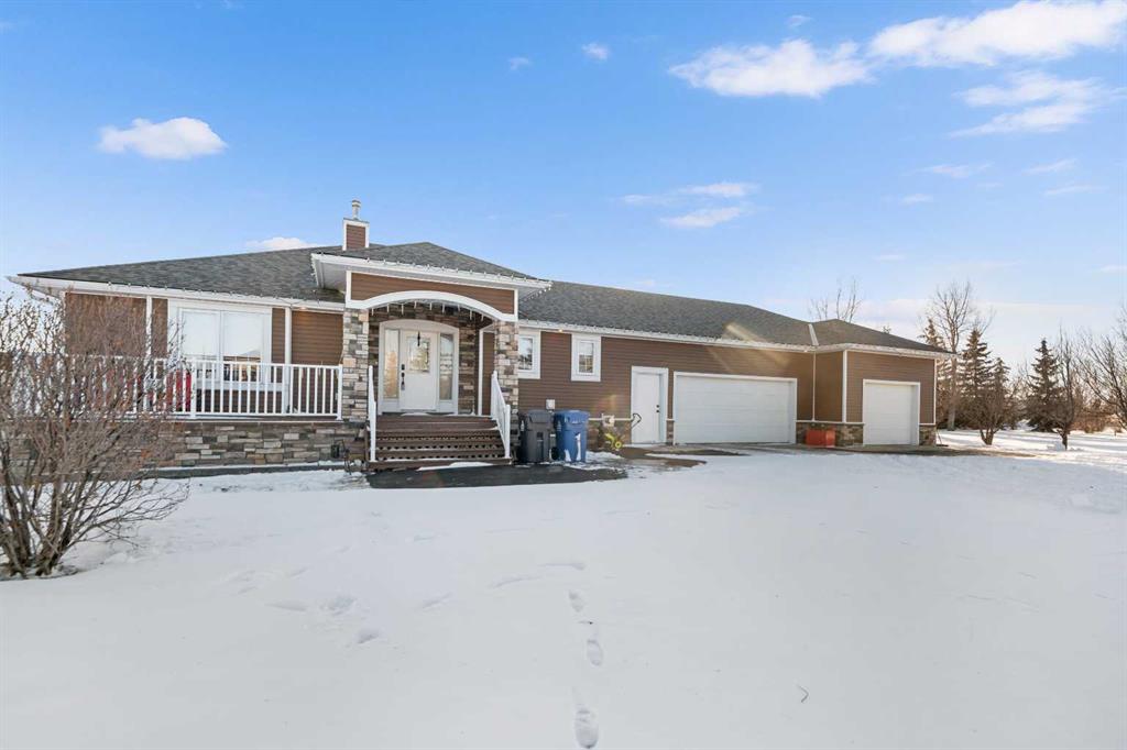STUNNING LOCATION just outside of Airdrie minutes from shopping, and 1 min from HWY 2. This 2 acre parcel and good sized 1672 sq. ft bungalow with OVERSIZED triple attached garage is the perfect escape from the bustle of the city. This home comes fully loaded with high end features, large open kitchen with tons of room for entertaining family or guests. Family/great room with corner fireplace off the kitchen, and walk out onto the covered back deck area for summer eves and look out onto the open acerage and lovely trees. Large master (primary) suite with 4 pc en-suite, soaker tub, and HUGE walk-in closet. Second bedroom up and another 2 pc bath. Main floor laundry for convenience and just off the HUGE TRIPLE ATTACHED garage, perfect for all the toys. Fully developed lower level with another 3 pc bath, bedroom, media area, sitting area, and a wet-bar area with second dishwasher, perfect for game nights or entertaining. This is a truly beautiful piece of land, and super convenient location, so get the best of both worlds between city convenience and country seclusion.