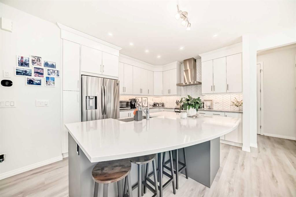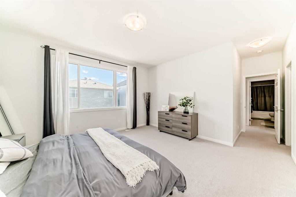 An Immaculate condition 2,243 sq.ft 2-storey single family detached home sitting on a large 44′ W Lot in beautiful Carrington NW. The main floor and upper floor both has 9’ ceiling, neutral colours, a beautiful upgraded gourmet kitchen with quartz countertops and a massive island. It also come with a nice size office area with huge windows! Gorgeous luxury vinyl flooring flows throughout the main floor. The second floor features a master bedroom with attached 5 piece upgraded ensuite featuring quarts countertops, free standing tub, shower with a bench and a walk-in closet. The house also has 2 more bedrooms, a full bathroom with quartz countertops, laundry room and a big bonus room. Basement is unfinished and has a bathroom rough-in. Enjoy access to amenities including planned schools, an environmental reserve, and recreational facilities, sure to complement your lifestyle!