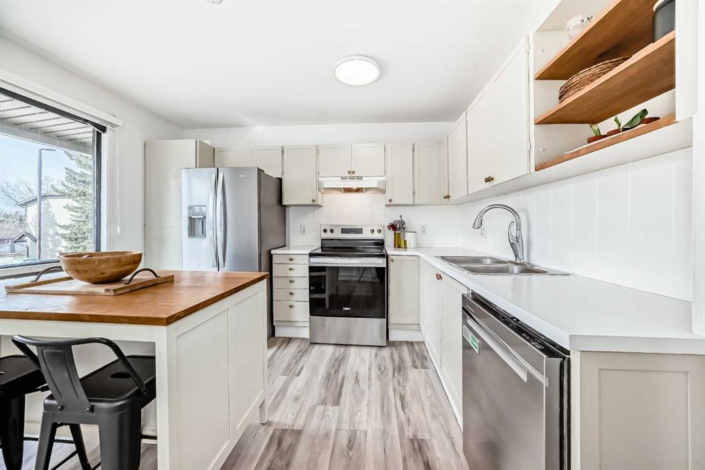 A rare opportunity to own a 3 bedroom in West Edge! This stylish, spacious and recently updated home will sure impress! New paint, luxury vinyl plank flooring and LED lighting fixtures throughout have been thoughtfully curated. Step outside to your private yard and notice the newly installed pressure treated fence with access to green space perfect for all the summer activities. Inside, the luxurious kitchen features new storage cabinetry, new stainless steel appliances, refurbished cabinets and hardware, a custom island and generous counter space—perfect for everyday living and entertaining. The open-concept living and dining area creates the perfect ambiance to entertain, with massive windows and sliding glass doors to let in all that natural light. A newly renovated powder room completes the main floor beautifully. The updated wrought iron and custom wood railings leads you to the upper level, where you’ll find an renovated 4 piece bath, two generously sized bedrooms and a West facing primary retreat with double French doors complete with plenty of closet space. The basement provides additional living, utilized as a home office and flex space with ample storage, laundry room and convenient step-free access to the attached garage – perfect for those cold days. All this in an unmatched South West location, close to shopping, transit, Stoney Trail and easy access to the city core. Do not miss this opportunity!