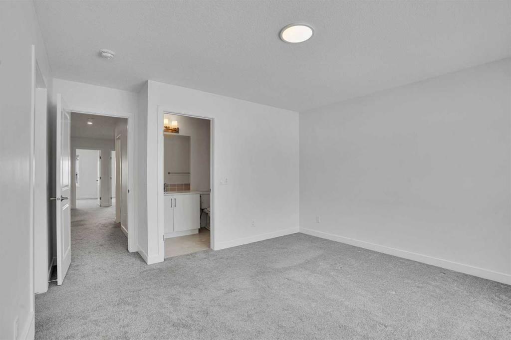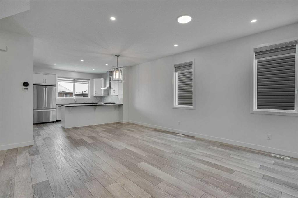 Discover a rare walkout basement home in one of Calgary’s newest and most vibrant communities — Moraine. Thoughtfully designed and built for modern living, this 2022 residence offers four bedrooms and three full baths, blending elegance, comfort, and cutting edge technology. The main floor welcomes you with bright, open concept living under 9 foot ceilings. The kitchen is a showpiece, featuring sleek quartz countertops, abundant cabinetry, and high end appliances, including a gas range that elevates both style and functionality. Matching quartz surfaces in the bathrooms create a cohesive, luxurious aesthetic throughout. A main floor bedroom and full bath provide flexibility — ideal for guests, multigenerational living, or a private home office. Natural light fills every space, enhanced by zebra blinds for adjustable privacy. Luxury vinyl plank flooring adds sophistication and durability across the main level. Upstairs, the primary suite offers a peaceful retreat with a four piece ensuite and a generous walk in closet. Two additional bedrooms, a full bath, a bonus room, and convenient upper level laundry complete this well planned layout. The unfinished walkout basement is a blank canvas awaiting your creative touch, perfectly laid out to maximize usable space. Located on a premium lot, and just out your front door, you will find a beautiful green space where your children can play in safety and the community hosts summer events. This home embraces the future with smart technology and eco friendly features: intelligent lighting and thermostat controls, an integrated security system, and six solar panels that harness the sun’s power to reduce energy costs. A tankless water heater ensures endless hot water, while the heat recovery ventilation system, triple pane windows, and high efficiency two stage furnace maintain comfort and air quality year round. With the balance of the new home warranty still in place, this property offers peace of mind and exceptional value with many fit and finish upgrades. Experience the perfect combination of innovation, efficiency, and modern design — all in the heart of Moraine.
