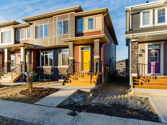 Stunning unique home located on a cul-de-sac in the sought after community of Bayside. With over 2200 square feet of living space, plus a partially finished basement, this home will suit your growing family. Nose Creek Elementary School is just two blocks away! Walk the canal pathways just outside your door! Enter onto the main floor filled with natural light. For those working at home there is a front office located just off the main landing. The living room features a gas fireplace and plenty of windows. The living area is open through to the dining area and kitchen. The kitchen features white cabinets, stone countertops, stainless steel appliances, and pantry, with access to the two car garage. Access to the back deck is conveniently located adjacent to the kitchen/dining room where there is a gas hook up for the BBQ. The pie-shaped lot offers several outdoor spaces and a low maintenance back yard. A two piece bathroom completes the main floor level. Upstairs opens to a bright airy bonus room with vaulted ceilings. The primary suite is an oasis with a spacious 5 piece ensuite bathroom including soaker tub, double sided fireplace, and walk-in closet. Two generously sized bedrooms, a four piece bathroom and laundry room complete this level. The partially finished basement features a two piece bathroom and is waiting for your inspiration to complete this unique home. An outstanding opportunity at an unbeatable location – book your viewing today!
