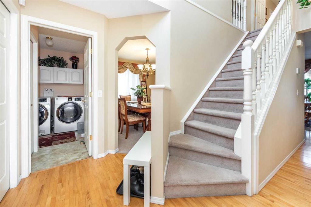 Welcome to this well-appointed family home located in one of Calgary’s desirable neighborhoods. The main level offers a functional layout featuring a spacious living area, formal dining room, and a practical kitchen with ample cabinetry and counter space. A comfortable family room with a fireplace adds to the home’s inviting atmosphere, along with a convenient main-floor laundry area. The upper level includes a large primary bedroom complete with an ensuite, along with two additional sizeable bedrooms and a full bathroom. The fully developed lower level offers added versatility with a generous recreation space, bathroom, and a bonus room suited for a home office or guest bedroom. Outside, the backyard provides a private setting with a patio, green space, and plenty of room for outdoor activities. An attached double garage and extended driveway offer additional parking and storage options. Conveniently situated near parks, schools, transit, and everyday amenities, this home presents a great opportunity to enjoy established community living.