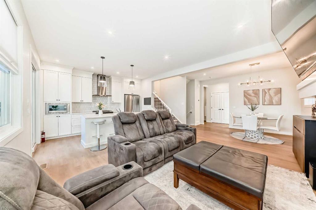 Step through the front door into a bright foyer that sets the tone for the home’s contemporary yet welcoming atmosphere. A mudroom offers easy access to the attached garage, while a stylish 2-piece bath is conveniently located for guests. Continue into the main living area, where natural light pours through large windows, illuminating the open-concept layout. The living room serves as the heart of the home, anchored by a sleek fireplace that creates a cozy focal point for gatherings and quiet evenings alike. Adjacent is a dining area ideal for family meals or entertaining, and a modern kitchen equipped with high-end stainless steel appliances, contemporary cabinetry, and a large island with seating. In one corner of the main floor, a built-in grow light provides the perfect spot for real plants to thrive, bringing a touch of nature and freshness indoors year-round. Step outside to your private backyard retreat, offering a balance of greenery and function with a spacious lawn, custom wooden decking, and a pergola frame ready for outdoor lighting or shade. You’ll also love the enclosed sunroom with a fiberglass patio enclosure, featuring floor-to-ceiling glass walls and a transparent roof that fills the space with light—ideal for morning coffee or evening relaxation in any season. Upstairs, the thoughtful design continues with a spacious primary bedroom complete with a 5-piece ensuite featuring dual sinks and a walk-in closet. Two additional bedrooms, each with their own walk-in closet, provide comfort and flexibility for family or guests. A 4-piece main bath and an upper-level laundry room add to the home’s everyday convenience. The nearly finished basement offers even more living space, including a beautifully finished family room, an additional bedroom with a walk-in closet, and a modern 4-piece bath. The remaining flex area awaits your finishing touch—perfect for a gym, office, or storage. Modern upgrades such as a WiFi smart light switch enhance convenience and energy efficiency. Located in the family-friendly community of Rangeview, this home is surrounded by parks, walking paths, and nearby schools. It’s also close to the hospital, offering added peace of mind for families and professionals alike. Residents enjoy a true sense of community, with local shops, playgrounds, and quick access to major roads connecting you effortlessly to all of Calgary’s amenities. Modern style meets comfort at 26 Lavender Drive SE. Book your showing today!
