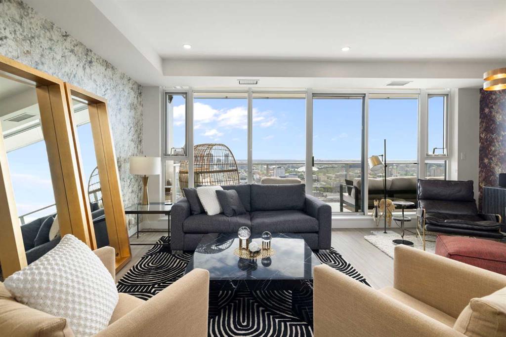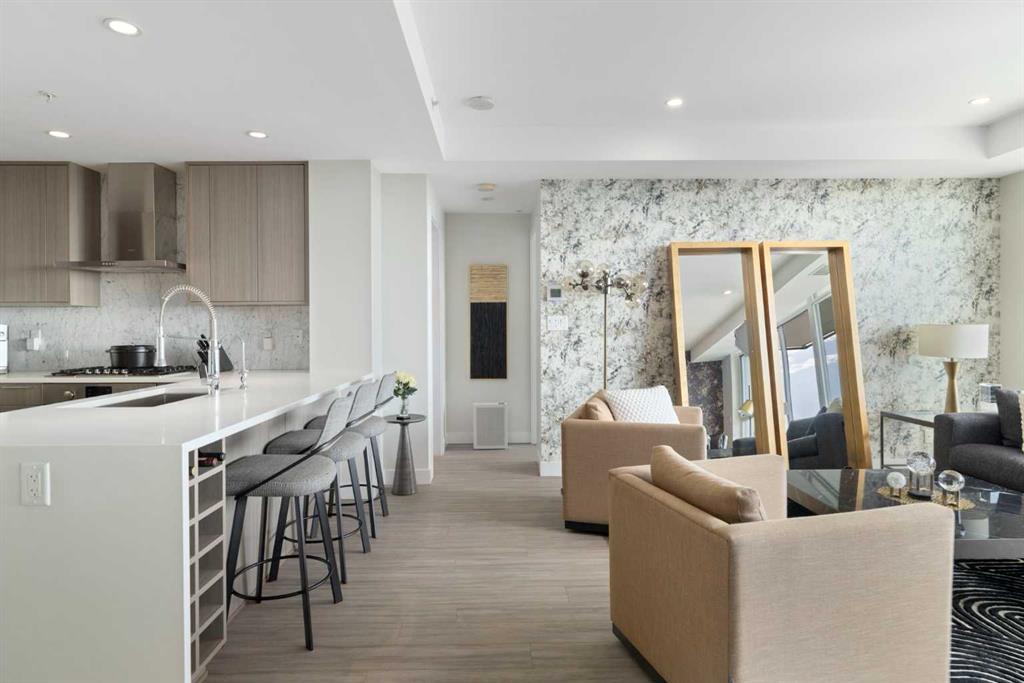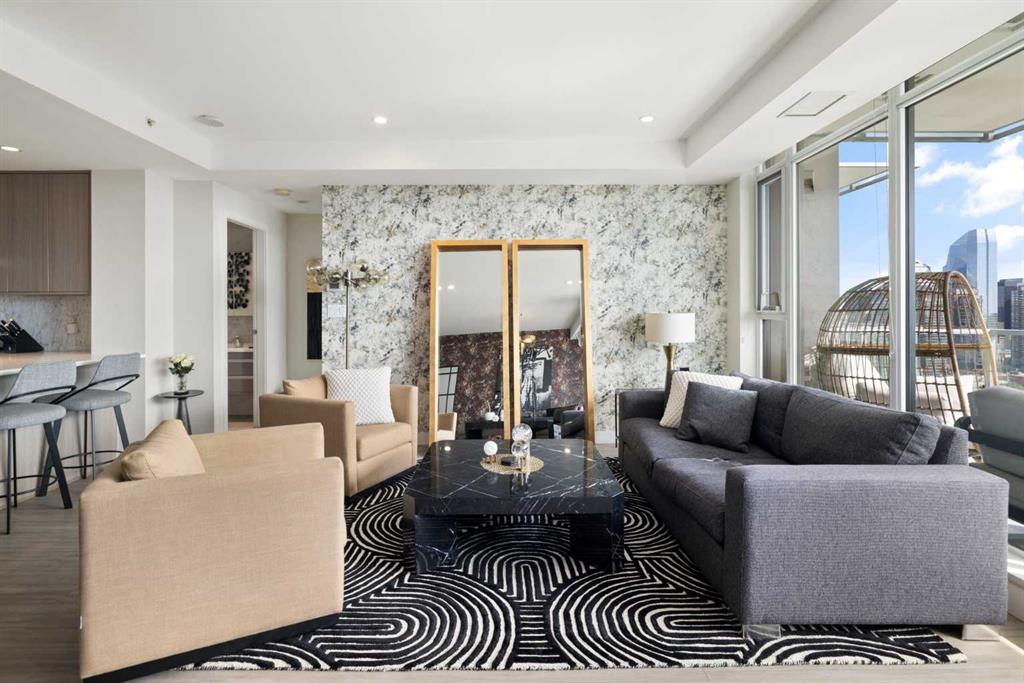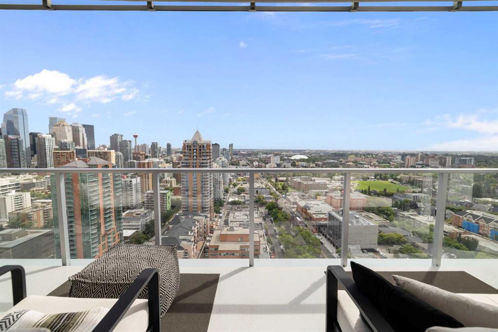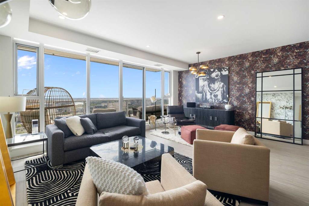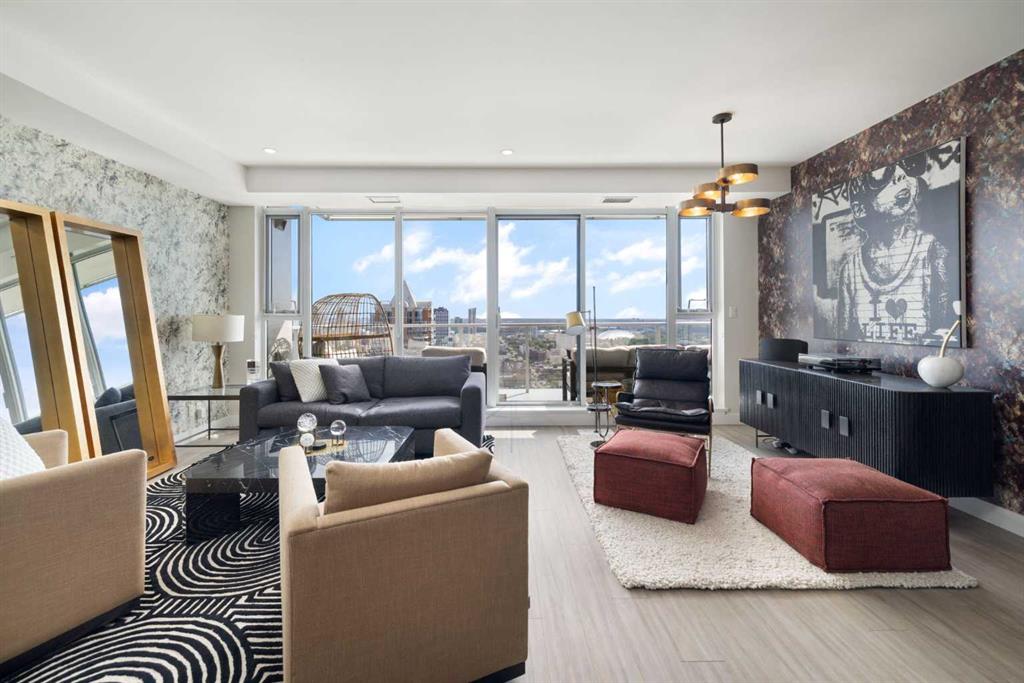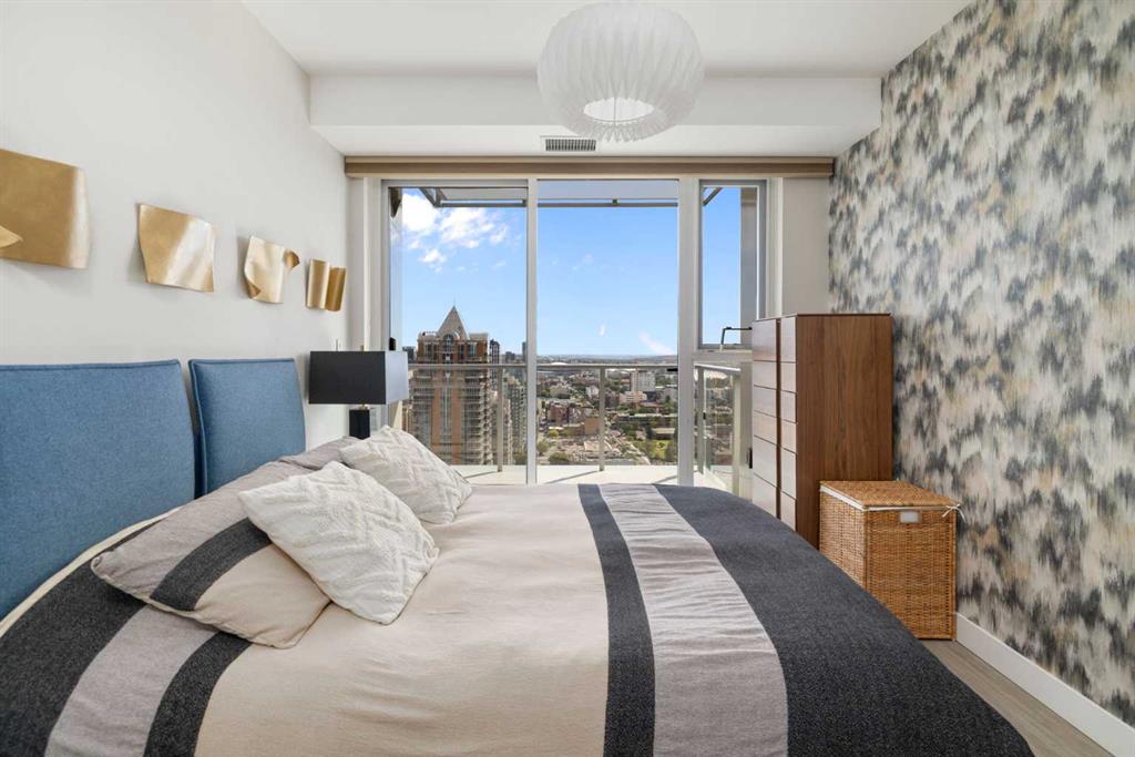 — CHECK OUT VIDEO TOUR — Live Royal! Unique and unparalleled, this Sky-Suite presents style and finishings that dreams are made of. 24-hour security/concierge and three high-speed elevators provide safe, seamless access day and night. As you enter you are greeted by a bright, open-concept design with floor-to-ceiling windows that showcase stunning city views and the warmth of the morning sun. The gourmet kitchen is a true highlight, featuring Bosch appliances, quartz countertops, full-height cabinets, under sink Reverse Osmosis water filter with additional remineralization filter for premium water, and a spacious breakfast bar perfect for entertaining. The adjacent dining and living areas are flooded with natural light and offer direct access to a large balcony, ideal for morning coffee or evening gatherings against the breathtaking backdrop. The spacious primary bedroom also boasts fantastic views from a second private patio, creating a serene retreat. Fully custom power blinds allow you to shut down the city for full relaxation. The stylish bathroom includes a deep soaker tub, double vanity, and heated flooring for extra comfort during those cool mornings. Additional features like in-suite laundry, underground parking, and a separate storage locker are included for added convenience. The building offers a wealth of amenities, including a 10,000 sq. ft. “Club Royal” with an elevated garden terrace, BBQs, steam room, sauna, gym, squash court, owner’s lounge, chef’s kitchen, and private dining area. With a walk score of just under 90, The Royal building’s location is perfect for anyone looking to enjoy the countless parks, amenities, and transit options to enjoy downtown Calgary’s vibrant and trendy lifestyle. Don’t wait, come be a part of the Royal family!