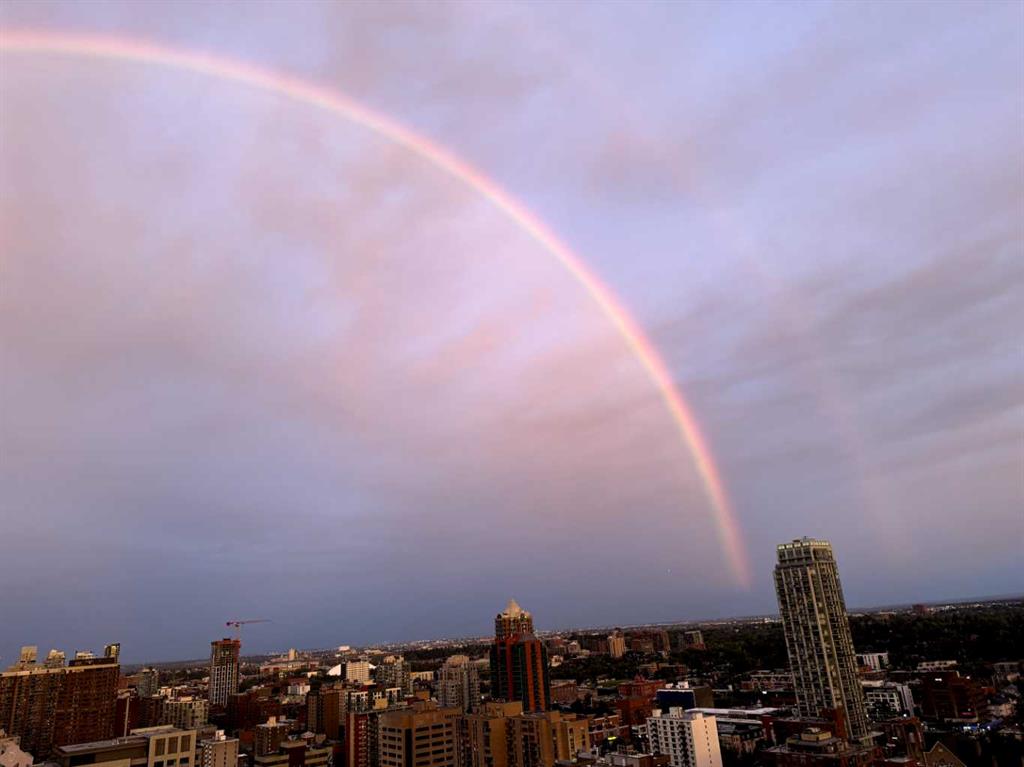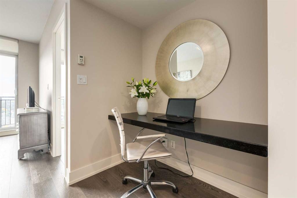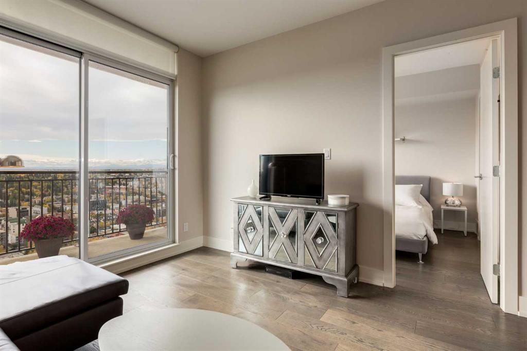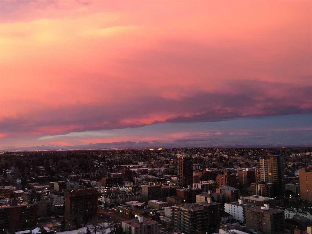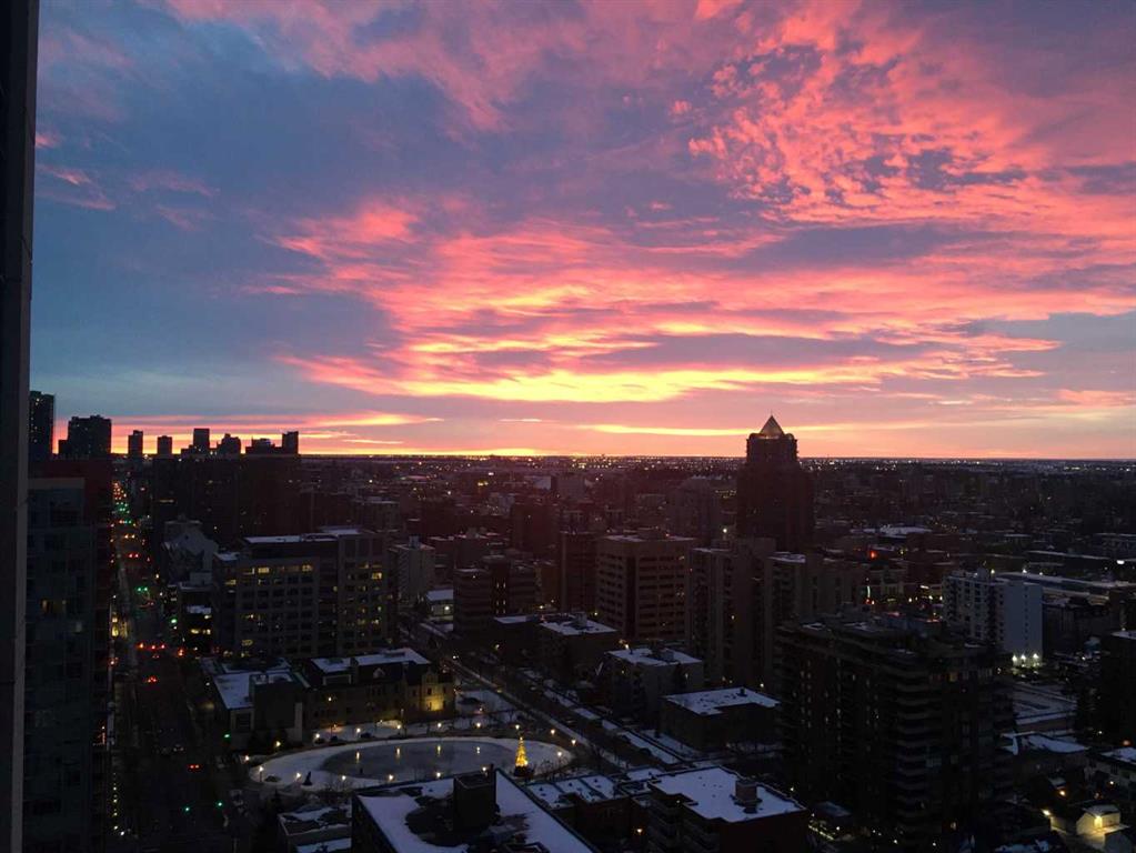 Take in the VIEWS from this 26th floor suite in LUNA in the heart of Calgary’s Beltline. Original owner is selling this contemporary and bright suite with south facing balcony. An efficient use of space, this one bedroom offers quality finishes in an amenity rich building. Interior features include wide plank hardwood flooring, updated LED lighting, soft close cabinetry, quartz countertops, full height glass tiling in kitchen, Fisher Paykal stainless refridgerator, gas stove top and convection oven, heated tile floors in bathroom, air conditioning, nine foot ceilings in living area and bedroom. Luna residents benefit from full-time concierge services, well equipped fitness room plus yoga studio, two steam rooms, resident lounge with pool table & fireplace, beautifully landscaped private courtyard, two guest suites (nightly fee), bicycle storage, and visitor parking. The property includes a titled underground parking stall and storage locker on the main floor. Embrace a 15 minute lifestyle for leisure and work. Bike lanes are at your doorstep and Safeway, COOP, Save On Foods, and 17th Avenue are all within less than a 10 minute walk. Start and finish every day with scenic sunrises and sunsets with east, south, and west views from the 26th floor at LUNA!