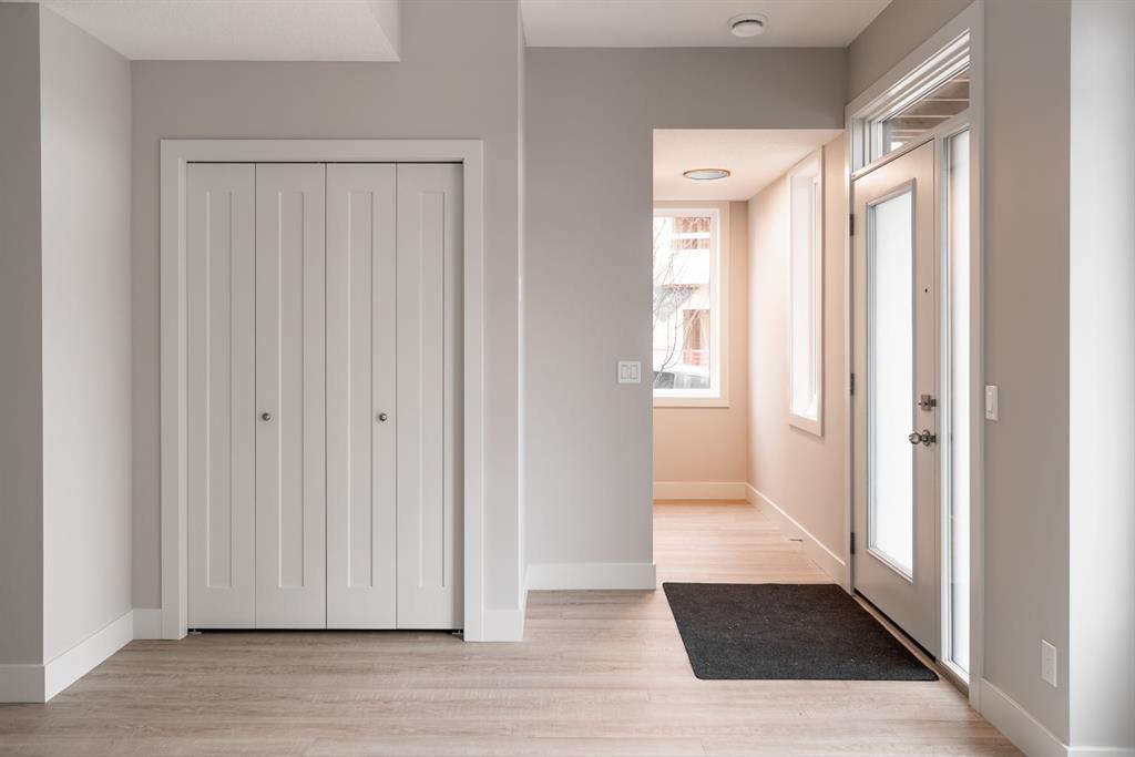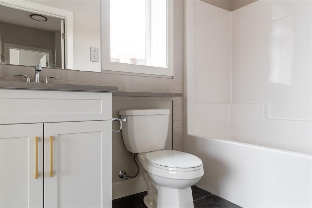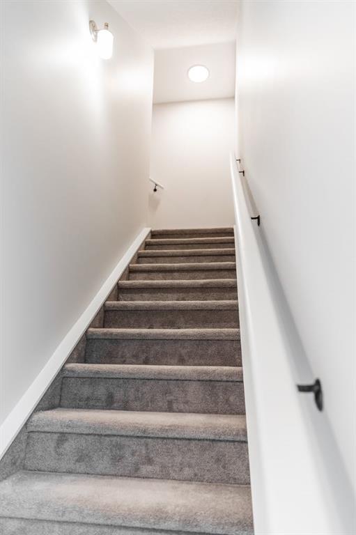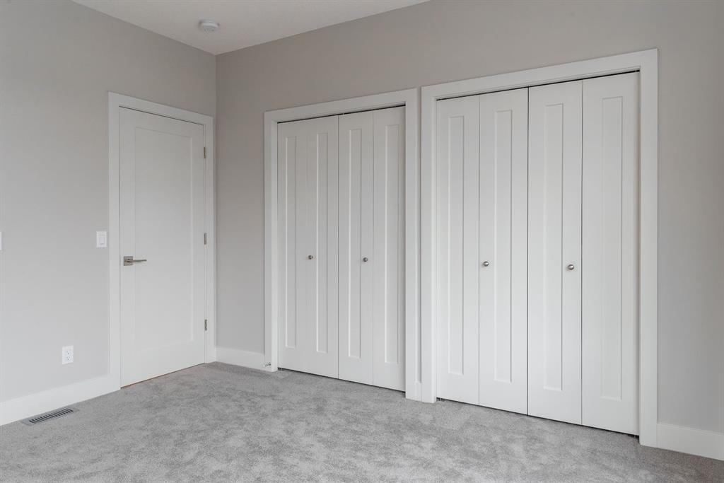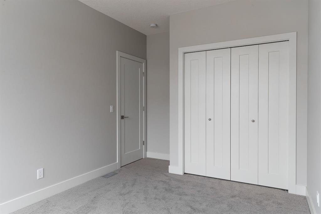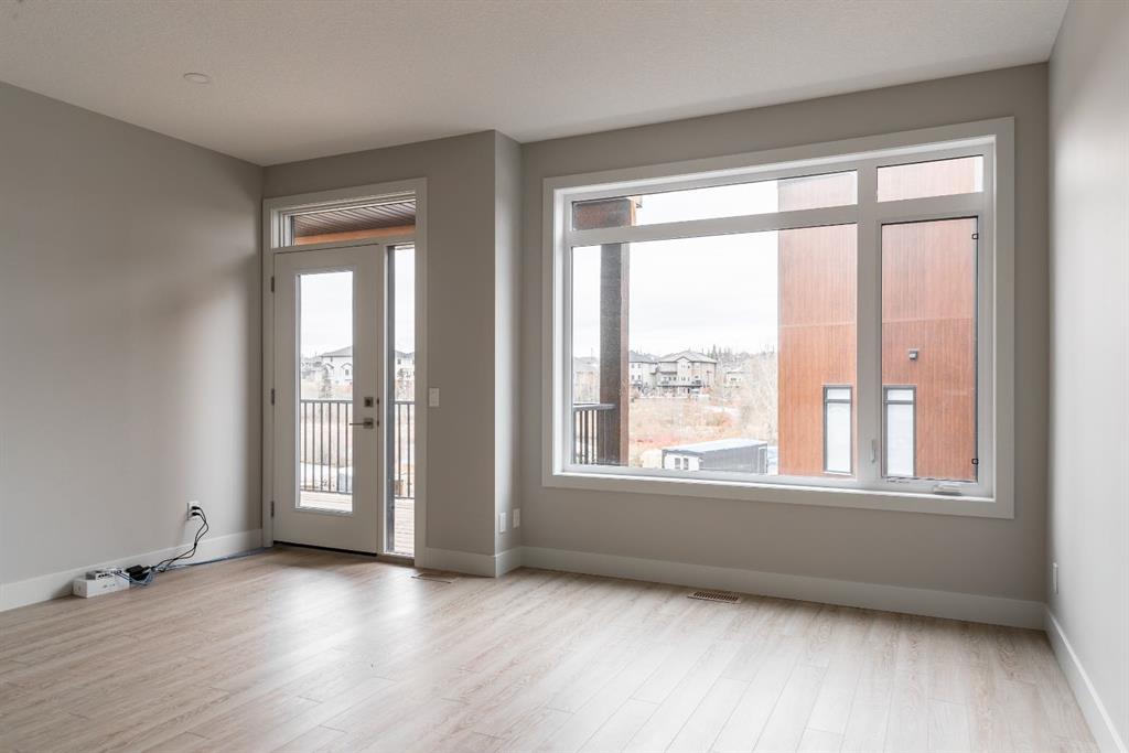 Ravines of Royal Oak by Janssen Homes offers unmatched quality & design, located on the most scenic & tranquil of sites in the mature NW community of Royal Oak. This 2BR, 1-full bath 1,233sf (1,233RMS) 24’-wide stacked townhouse with single attached garage boasts superior finishings. Open-concept-plan features a fresh, modern kitchen with full-height cabinets, soft close doors/drawers & full extension glides, quartz counters, undermount sink, plus 4 S/S appliances & convenient peninsula island opening onto both dining area with access to rear balcony & spacious living room. With over 900sf on the second living level there is ample space for a roomy master retreat, 4-pce bath with tile floor & quartz vanity, an additional bedroom which can be used as an office, & ultra-convenient laundry area. Convenient flex room on the main level along with a single attached garage with room to park an extra car on front driveway completes the package. Ravines of Royal Oak goes far beyond typical townhome offerings; special attention has been paid to utilizing high quality, maintenance free, materials to ensure long-term, worry-free living. Acrylic stucco with underlying ‘Rainscreen’ protection, stone, & Sagiwall vertical planks (ultra-premium European siding) ensure not only that the project will be one of the most beautiful in the city, but that it will stand the test of time with low maintenance costs. Other premium features include triple-pane, argon filled low-e, aluminum clad windows, premium grade cabinetry with quartz countertops throughout, 9′ wall height on all levels, premium Torlys LV Plank flooring, 80-gal hot water tank, a fully insulated & drywalled attached garage that includes a hose bib & smart WiFi door opener, among other features. Condo fees include building insurance, exterior building maintenance & long-term reserve/replacement fund, road & driveway maint., landscaping maint., driveway & sidewalk snow removal, landscaping irrigation, street & pathway lighting, garbage/recycling/organics service. Bordered by ponds, natural ravine park, walking paths & only minutes to LRT station, K-9 schools, YMCA & 4 major shopping centres. Note – photos from a similar model in the complex.