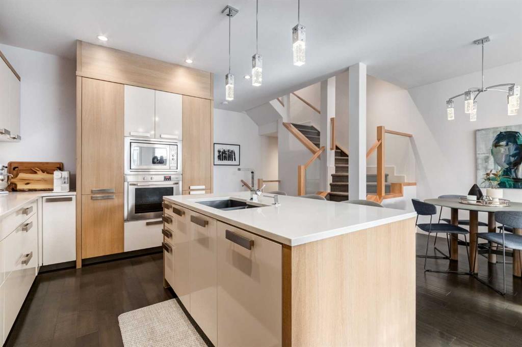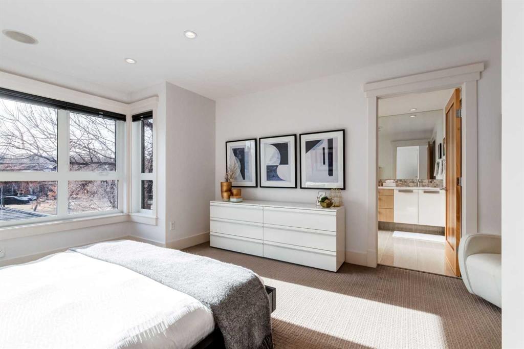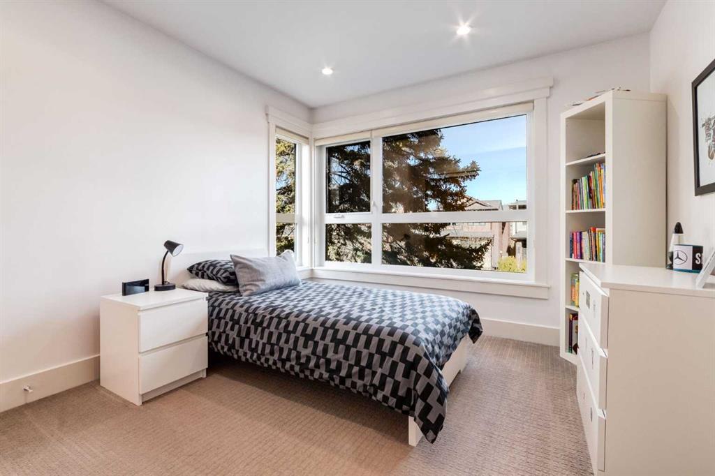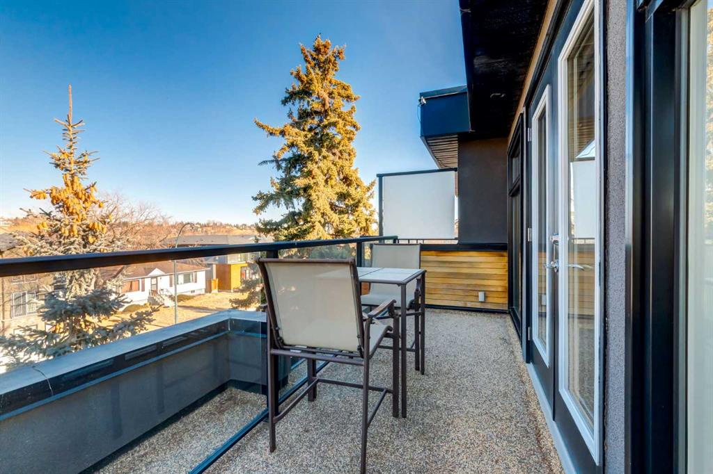 Modern living in the heart of West Hillhurst. Welcome to a home that blends refined design with effortless livability in one of Calgary’s most sought after inner-city neighborhoods. Perfectly positioned on a quiet street, this fully developed residence offers over 3,296 SF of thoughtfully curated space with 3+1 bedrooms and 5 bathrooms, designed for both everyday comfort and elevated entertaining. From the moment you step inside, the attention to detail is evident with rich hardwood and tile floors throughout the main floor, a Chef’s kitchen with designer dual tone cabinetry, quartz surfaces, high-end stainless steel appliances and center island with eating bar flowing beautifully to the living room with cozy fireplace and access to the sunny South facing backyard. A formal dining room and powder room complete this space. The upper levels provide a luxurious primary suite with walk-in closet and a spa like 5 piece ensuite and 2 additional spacious bedrooms which share a 4 piece bathroom. The upstairs also features a conveniently located laundry room and a sun filled loft retreat with a second fireplace, 2 piece bathroom and a private balcony. The fully finished basement adds versatility with a large family room, 4th bedroom and a 4 piece bathroom making this an ideal space for guests or a growing family. Outside, the property truly shines where summer hosting becomes a highlight in the outdoor kitchen amongst the low maintenance backyard offering a private and functional escape without the upkeep. A double detached garage, central AC, updated furnace (1 year ago) completes the total package. Just steps from parks, Bow River pathways, schools and an array of amenities, this location delivers the ultimate inner-city lifestyle. Quiet residential charm with everything you need just minutes away.