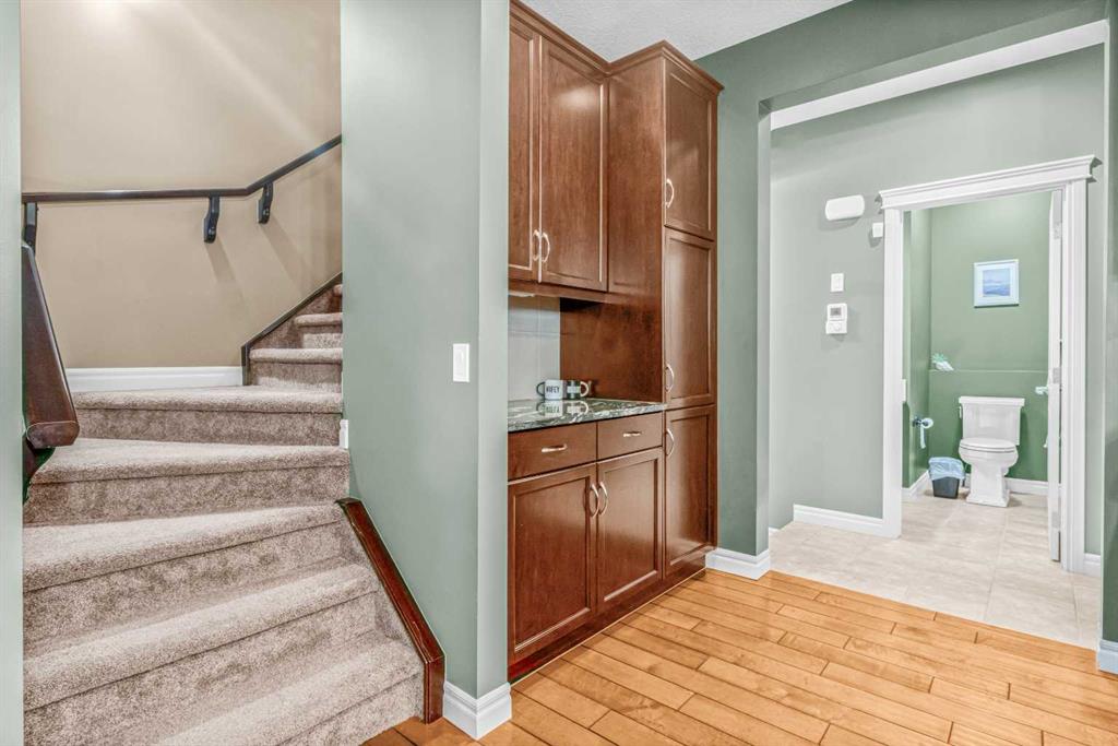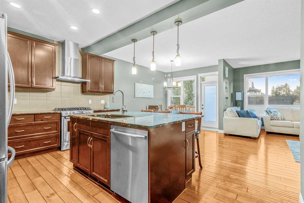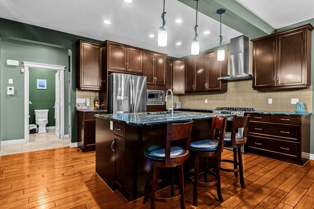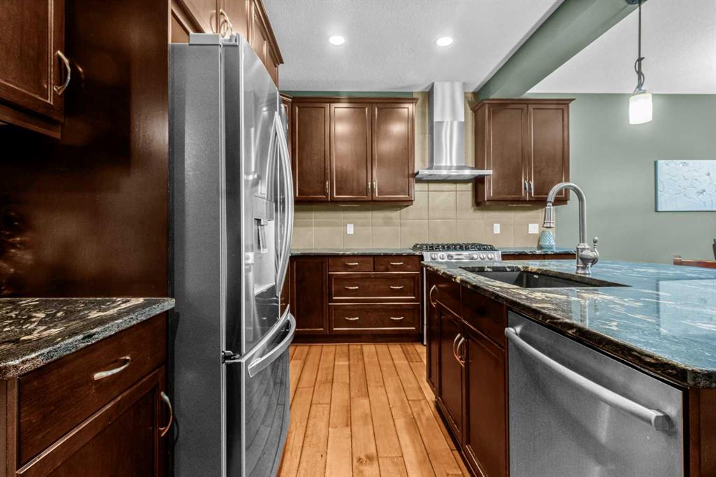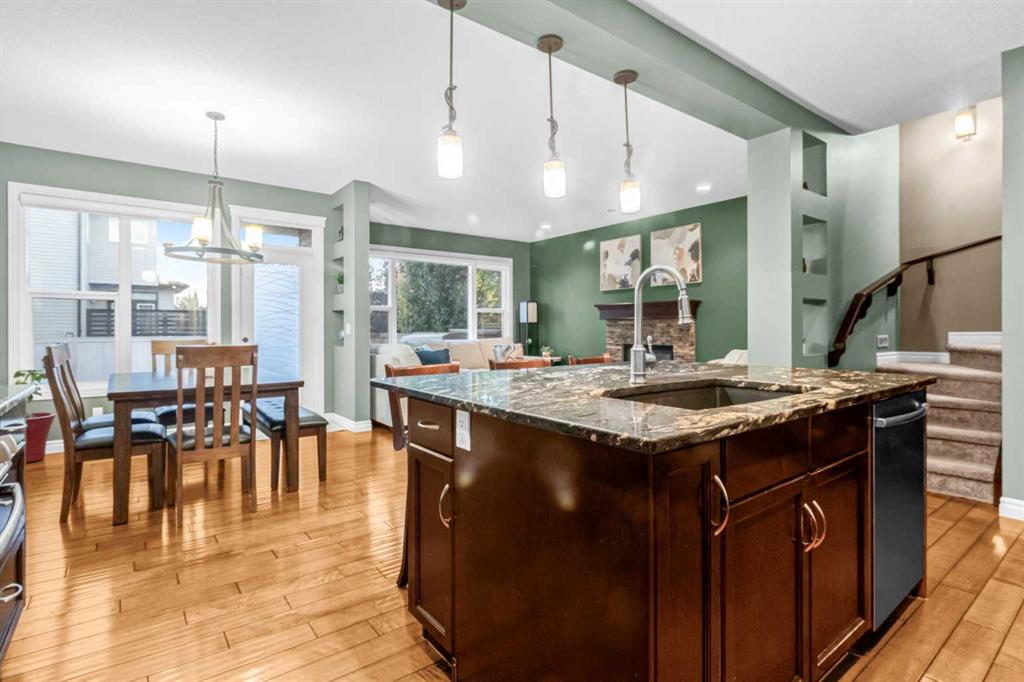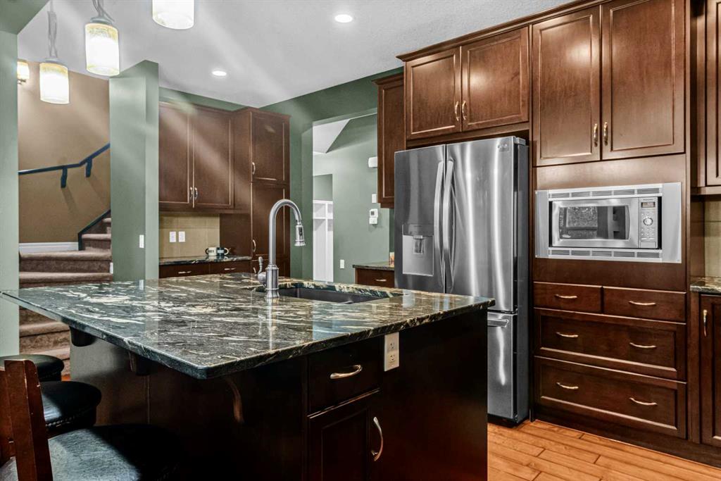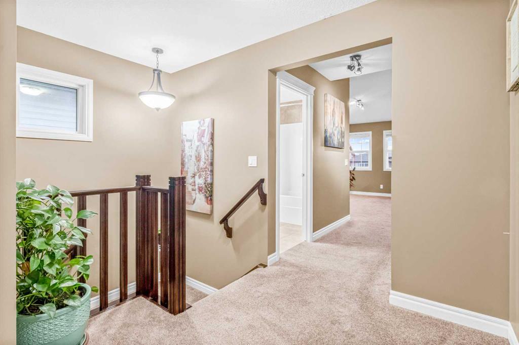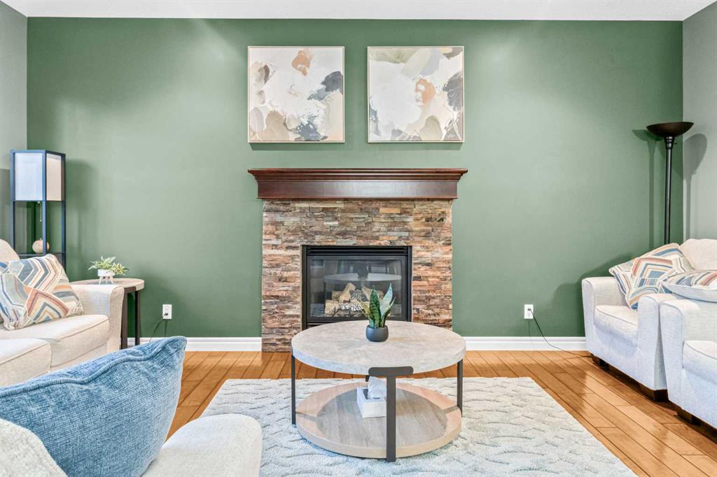 A UNIQUE GEM! Welcome to luxury living in the heart of Hillcrest, one of Airdrie’s most sought-after communities. As you step into this stunning 3-bedroom home, you are greeted by a grand foyer that opens onto a breathtaking open-concept main floor. The kitchen is a chef’s dream! Designed to impress with elegant cabinetry, granite countertops, designer lighting, and premium appliances, including a built-in microwave and gas stove, all accented by a huge island with an eating bar. The ultimate culinary space for family bonding or stylish hosting. It effortlessly transitions into an open-concept layout that extends to the generous dining and living spaces, perfect for entertaining. Throughout the main floor, engineered hardwood flooring enhances the sense of flow and style. The dining room and living room feature huge windows, allowing for loads of natural light and a 9-foot ceiling throughout the main floor. The rear living room features a stacked stone-finished gas fireplace with a classic mantle, while the adjoining dining area boasts a patio door that opens to the sunny, south-facing backyard. Enjoy the low-maintenance backyard oasis featuring a custom concrete patio and lush artificial grass, both in front and back of the home – perfect for relaxing or entertaining. A smart walk-around layout connects seamlessly to the mudroom, convenient half bath, and attached garage. Upstairs, you will find a spacious bonus room with a vaulted ceiling and a wet bar, ideal for a media lounge or children’s retreat. Three bedrooms, with the primary bedroom having a walk-in closet and a lavish spa-like five-piece ensuite bathroom. The laundry is conveniently located on the upper level, just beside the bedrooms. The unfinished basement comes with standard windows, complemented by roughed-in plumbing, and presents endless opportunities for your personalized touches. The home also offers additional upgrades, including central air conditioning and a water softener. This smoke-free, pet-free move-in-ready home is situated just steps away from great schools, scenic walking pathways, shopping centers, restaurants, and playgrounds, offering the perfect balance of community, comfort, and accessibility. With quick access to Deerfoot Trail, CrossIron Mills, Amazon shipping depot, and The Airport.  You’ll be well-connected to go anywhere you want to explore. Schedule your viewing today!