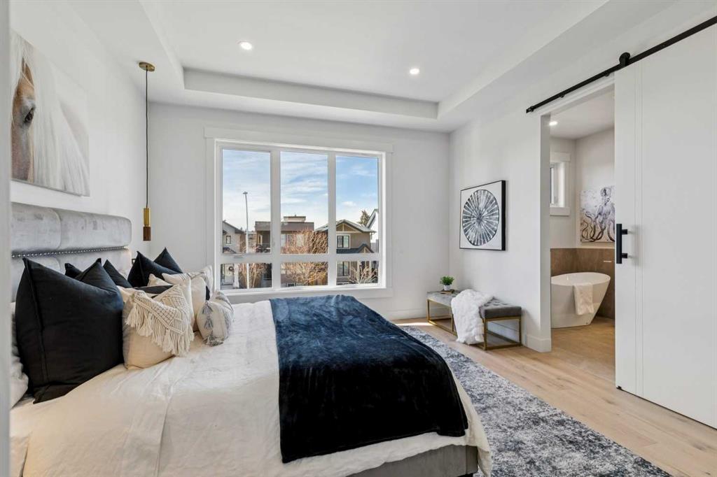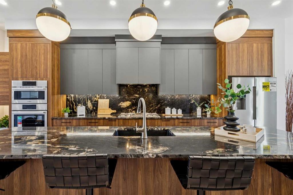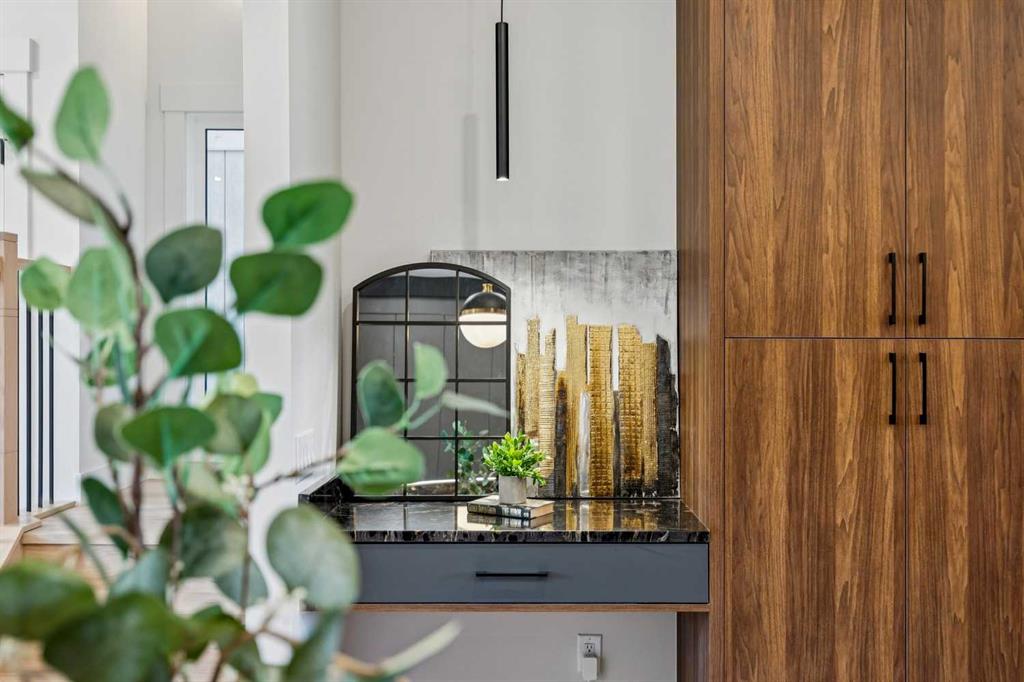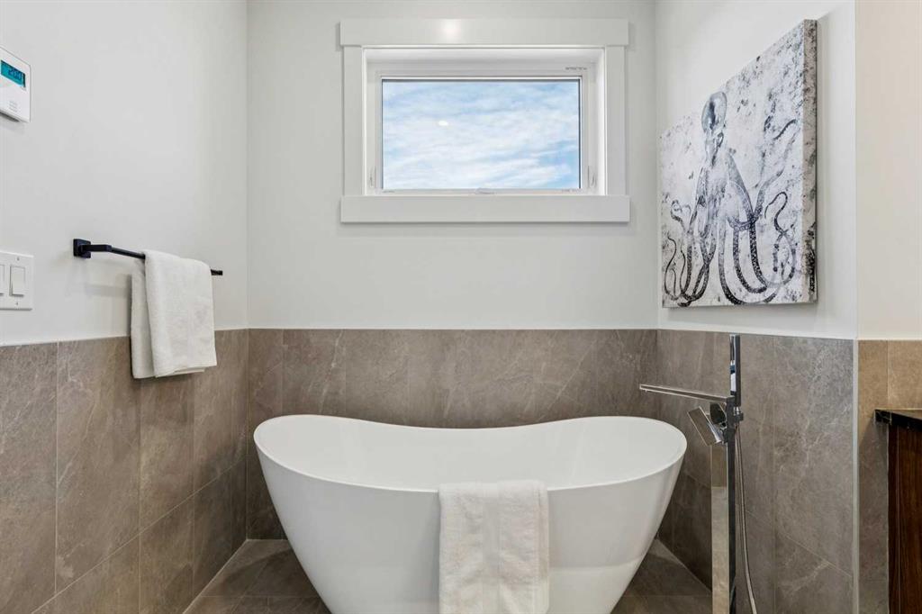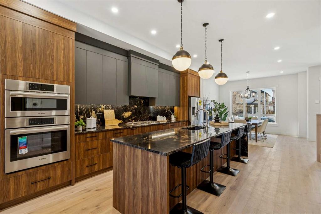 Discover this stunning home on an extra-large 25’ x 150’ lot — a rare 30’ longer than the typical 120’ lots in the coveted Killarney neighbourhood. The stylish exterior opens to a main floor with soaring 10’ ceilings, engineered hardwood throughout the main, upper hallway and master, and a gourmet kitchen featuring custom dark gray and walnut-grain cabinetry, titanium black granite, and high-end stainless Bosch appliances with Blanco sink. Main-floor amenities include a versatile den (perfect as a pantry), powder room with 2’ x 4’ accent tile, quartz countertop and floating vessel vanity, mud room with abundant closet space and tiled floors, and a paved back alley. Upper living offers 9’ ceilings, a large loft, spacious second and third bedrooms, a master suite with large windows, oversized walk-in closet with built-ins, luxurious ensuite with double vanity, freestanding tub and double-color tiled shower, plus an upper laundry with Samsung washer and dryer. The lower level is a fully independent legal suite with separate entrance — ideal for rental income or extended family. It features two large bedrooms (one with walk-in closet) and oversized egress windows, a full gourmet kitchen with stainless appliances and quartz counters, a four-piece stylish bathroom with tiled surround and floor, full laundry set, large living area, luxury vinyl plank flooring, and 9’ basement ceilings. Additional home features include two furnaces, RING doorbell, paved back alley access, and the exceptional extra-deep lot that sets this property apart.
