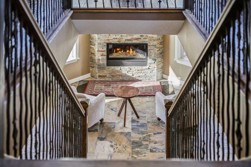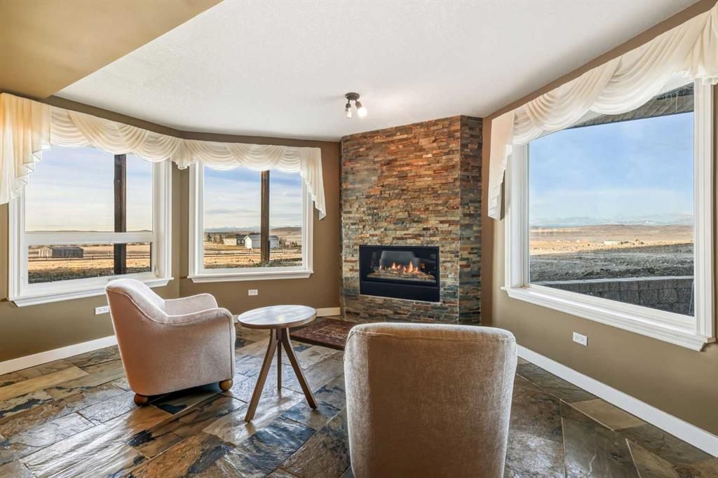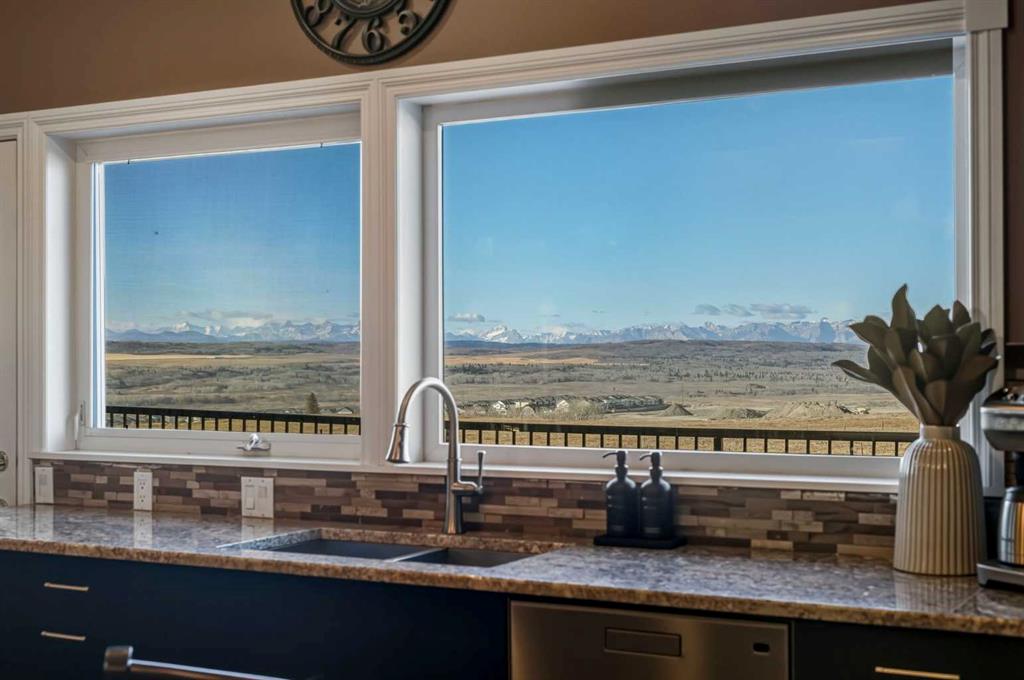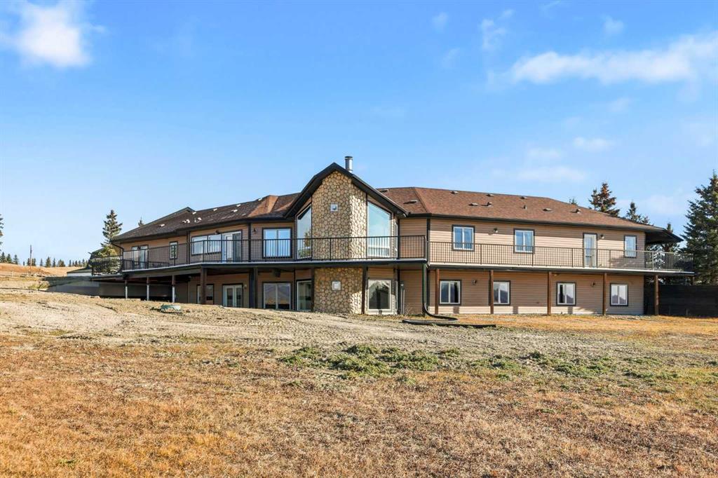 This stunning 4.41-acre property presents an exceptional opportunity to own a picturesque parcel of land with sweeping mountain views and a beautifully designed walkout bungalow. Nestled at the end of a serene, tree-lined drive, the home exudes timeless country charm with its sprawling layout, expansive wrap-around deck, and triple car garage — perfectly combining peaceful rural living with the convenience of being just minutes from Cochrane. Step inside the large front foyer, where vaulted ceilings immediately impress. The living room is a showpiece, centered around a dramatic floor-to-ceiling stone fireplace, with windows perfectly framing the breathtaking Rocky Mountain views. The spacious dining room is ideal for entertaining family and friends, offering ample space for large gatherings while enjoying the open-concept flow and natural light throughout. The chef-inspired kitchen is a standout, featuring a Wolf gas stove, Sub-Zero fridge, dual dishwashers, custom range hood, pot filler, and expansive granite countertops — perfect for both cooking and entertaining. A convenient office just off the kitchen provides a quiet workspace or flexible area. The primary suite is a tranquil retreat with spacious walk-in closets complete with organizers and private access to the west-facing deck. The ensuite bathroom is luxurious and spa-like, with double sinks, granite countertops, a large soaker tub, and a favorite feature of the current owners — an incredible steam shower. Two additional bedrooms and a full bathroom complete this wing of the home. The mudroom is highly functional, offering a half bath, laundry room with sink, and plenty of cabinetry and storage space. The attached triple garage is set up for both workshop and parking needs and is roughed in for in-floor heating and a future sink. Downstairs, the walkout basement continues to impress with a gas fireplace that anchors the space and creates a welcoming atmosphere. The expansive recreation area offers endless options — from a home gym to games or family entertaining space — all finished with durable slate flooring. The family room is perfect for movie nights or cozy evenings in. Two additional bedrooms and a full bathroom complete the lower level. Step outside to the covered patio with beautifully finished exposed aggregate concrete off the lower walkout — a generous outdoor space with room for a hot tub, sauna, or your dream outdoor living setup, all while enjoying awe-inspiring views! This home has seen thoughtful upgrades, including a new roof (2022), full replacement of poly-B plumbing, a water filtration system, a new electrical panel, a new concrete garage floor with rough-in for in-floor heating, a utility sink and a new concrete driveway apron. This exceptional property, complete with a barn, room for animals, and stunning mountain vistas, balances timeless country allure with comfort, functionality, and the perfect setting for family life. Schedule your private tour today!
