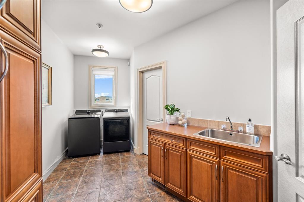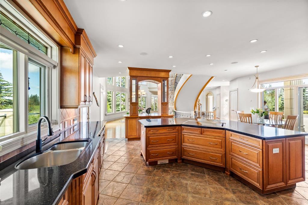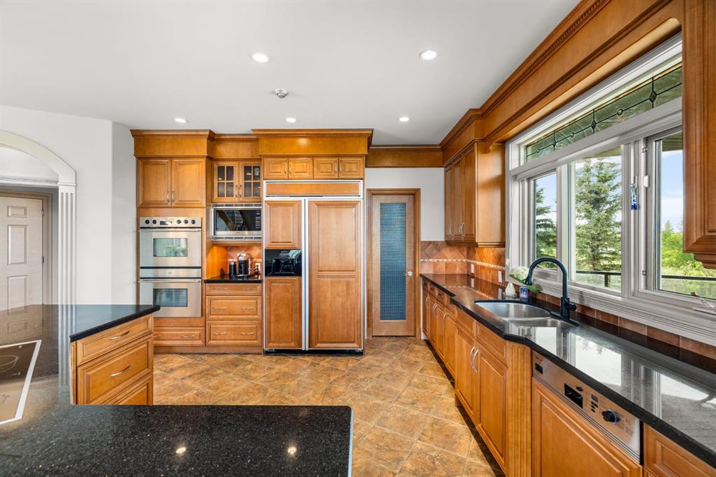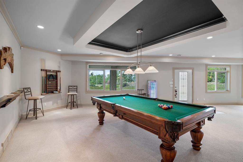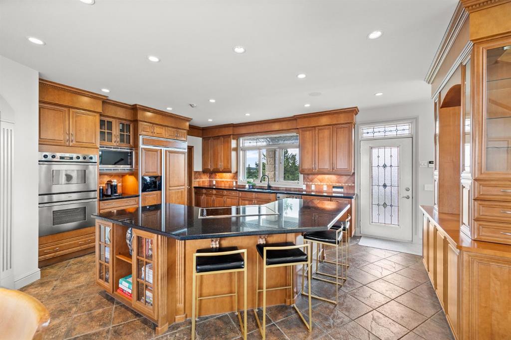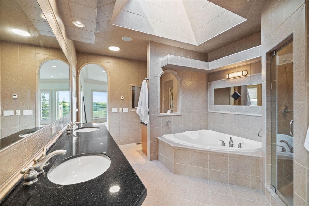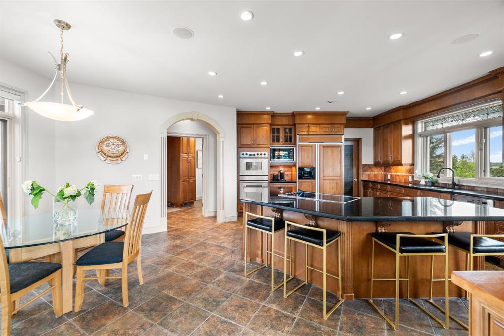 Welcome to this extraordinary 4 acre estate, where luxury, functionality, and breathtaking mountain views converge in perfect harmony! The garage is a standout feature of this abode, offering space for up to nine vehicles! With a fully epoxied finish and in-floor heating, ideal for the automotive enthusiast or easily transformed into a massive shop complete with its own bathroom. The home has been recently refreshed with brand new interior and exterior paint and complemented by a newly paved driveway, this meticulously designed home offers an unparalleled living experience. Stepping inside you are greeted with a spectacular double-sided, floor to ceiling stone fireplace with dual staircases emerging from its base leading to the upper level of the home. From here you are met with the kitchen, a chef’s dream, complete with a large granite island, ceiling-height cabinetry, stainless steel appliances, and a spacious walk-in pantry. It seamlessly flows into the eating nook and living room, creating a welcoming hub for daily life. The adjacent living room offers vaulted ceilings with expansive windows showcasing panoramic views of the mountains and rolling hills, with direct access to the spacious back deck. An exceptional theatre room with custom built-ins, two powder rooms and main floor laundry, with a brand new washer and dryer, complete this fantastic main floor. Upstairs you are met with a cozy window seat, a built-in reading nook and desk space, perfect for leisurely reading or a study area. The primary retreat is truly exceptional, featuring its own private deck to soak in the endless mountain vistas, a luxurious 5-piece ensuite with a jetted soaking tub beneath a skylight, dual vanities, a private steam shower, and a walk-in closet with custom built-ins. A private office or potential fitness area is also accessible from the primary bedroom. Completing this upper level are two additional bedrooms joined by a stylish Jack and Jill 5-piece bathroom. Descending to the fully finished walk out basement, this space is designed