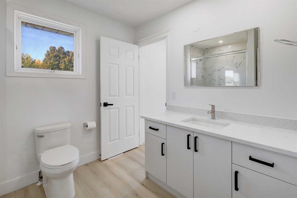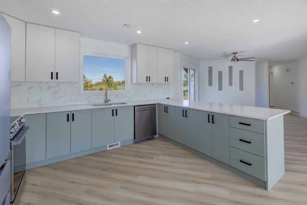 Welcome to this beautifully renovated family home perched on 5 acres in a prime Bearspaw location—offering incredible value, long-term potential, and stunning mountain views. Whether you’re a growing family seeking room to roam, a multigenerational household needing flexibility, or an investor eyeing future development, this property is full of opportunity. The home now boasts a complete top-to-bottom renovation, blending modern finishes with a functional layout. Enjoy over 3,700 square feet of total living space with 6 generously sized bedrooms—3 on the main floor and 3 more in the fully finished walkout basement. The brand-new kitchen features contemporary cabinetry, quartz counters, and stainless steel appliances, while all bathrooms have been fully redone with fresh, modern design. A formal dining room and a bright west-facing deck make entertaining effortless. High-end upgrades include scratch- and waterproof luxury vinyl plank flooring, freshly painted interiors, brand-new light fixtures with LED pot lights throughout, and upgraded 5.5-inch baseboards on both levels. Many new windows have been installed at the front of the home, flooding the living spaces with natural light, while the stucco exterior has been freshly painted for a crisp, updated look. The triple attached garage and driveway were recently repaired and resealed for years of durability. Even the plumbing has been fully replaced to meet current code, giving peace of mind for the future.