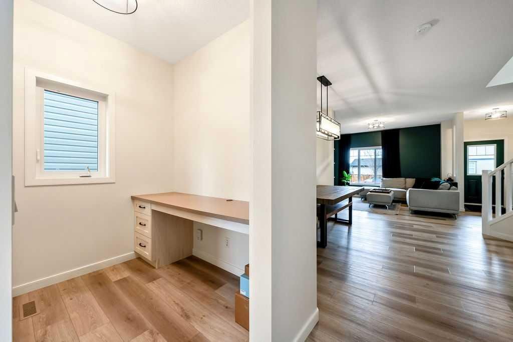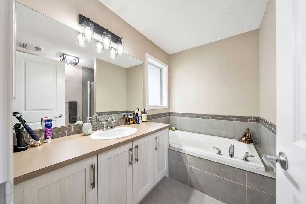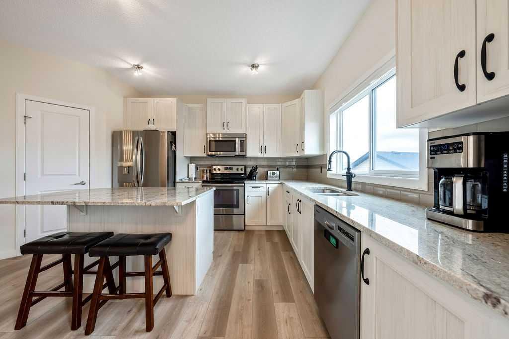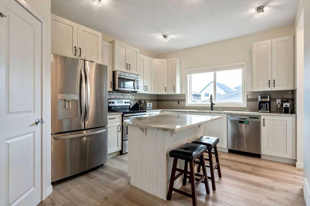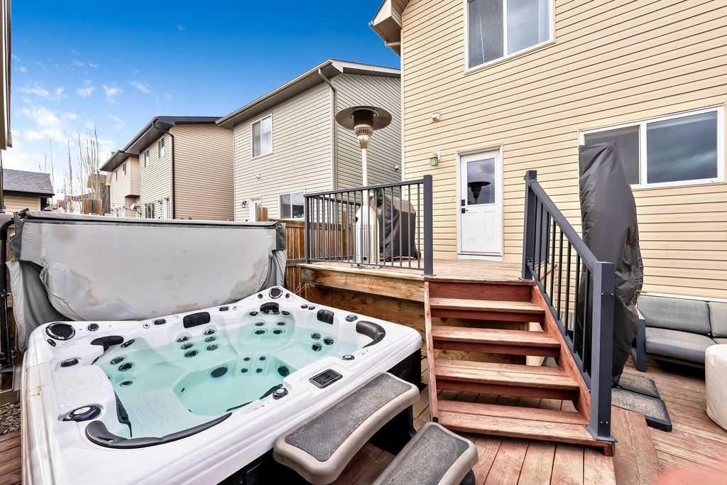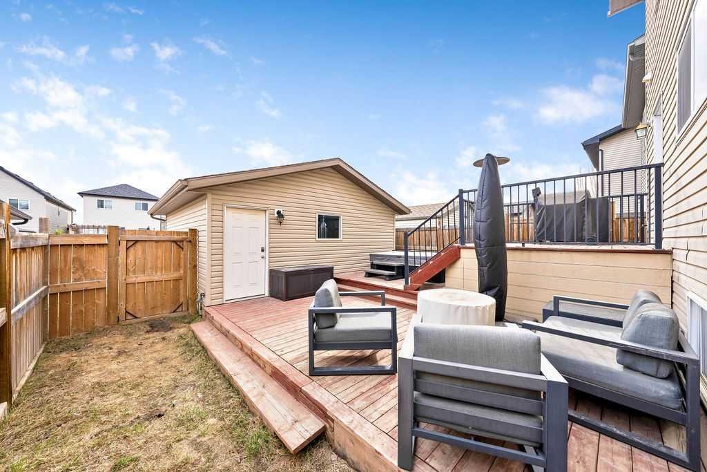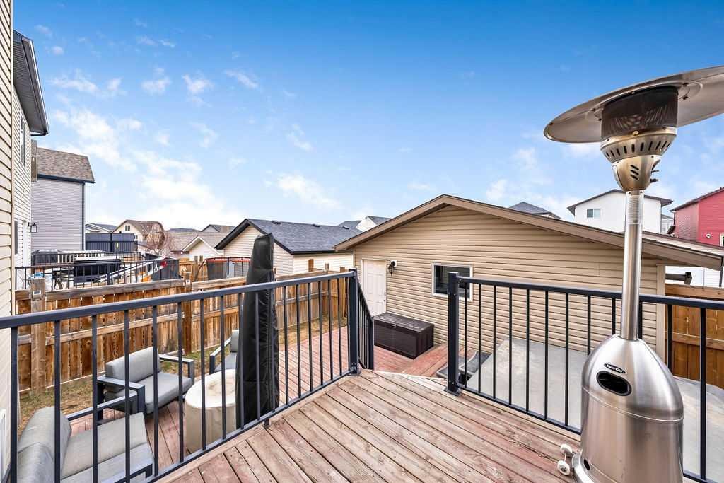 Welcome to this thoughtfully upgraded two-storey in Reunion, where the layout just makes sense and the spaces actually support how you live day to day. The main floor feels open and elevated with 9’ ceilings and durable flooring, anchored by a modern kitchen with quartz countertops, stainless steel appliances, a corner pantry, and a dining area that easily handles both quick mornings and full gatherings. The pocket office with a window is one of those features you don’t realize you need until you have it, tucked away enough for focus while still connected to the main living space. The living room centers around a clean, modern fireplace with custom built-ins, creating a space that feels both functional and pulled together. Upstairs offers three bedrooms including a spacious primary retreat with a walk-in closet and a 4-piece ensuite with a separate shower, along with the convenience of upper laundry exactly where it belongs. The finished basement adds flexibility for a second living area, gym, or play space, giving you room to adapt as life changes. Outside, the tiered deck and hot tub create a backyard setup designed for actual use, not constant upkeep, while the heated and insulated double detached garage is ready for Airdrie winters, projects, or extra storage. This is a home that balances clean design with practical upgrades, in a community known for parks, pathways, and an easy, family-friendly feel. You may see a virtual tour of this home by clicking the 3D tour icon.