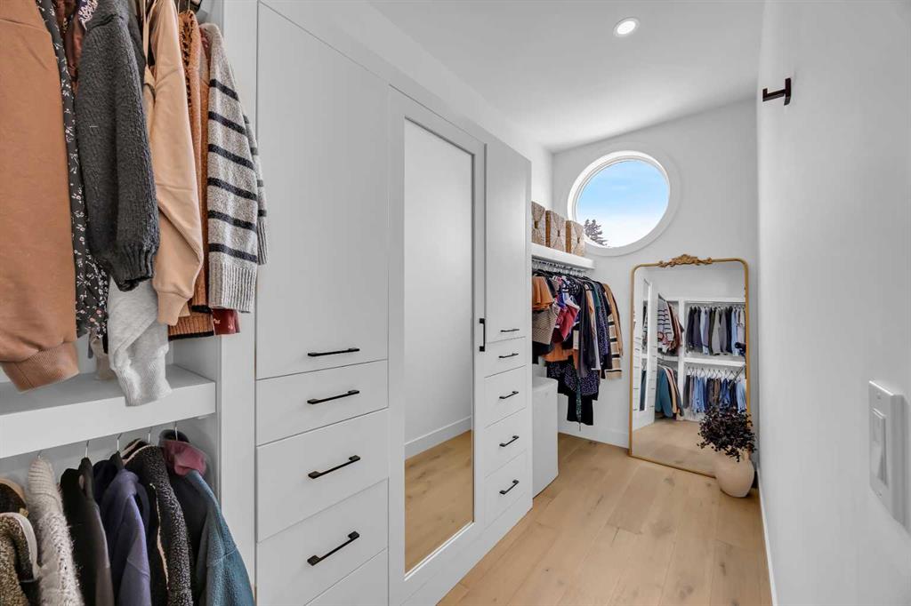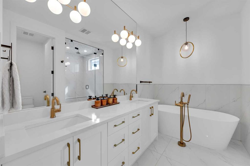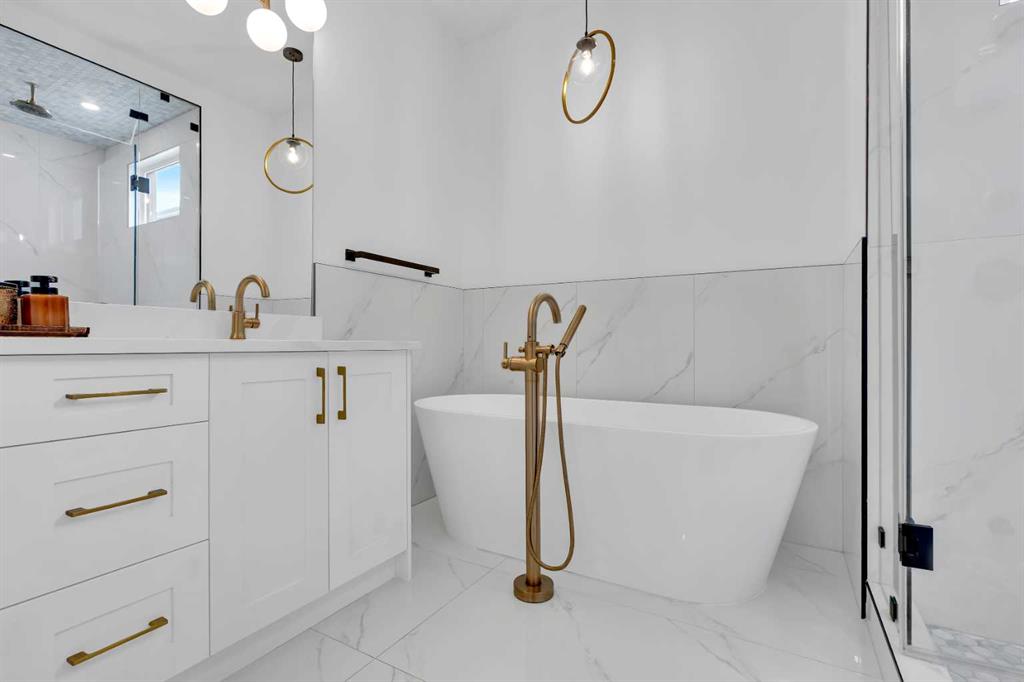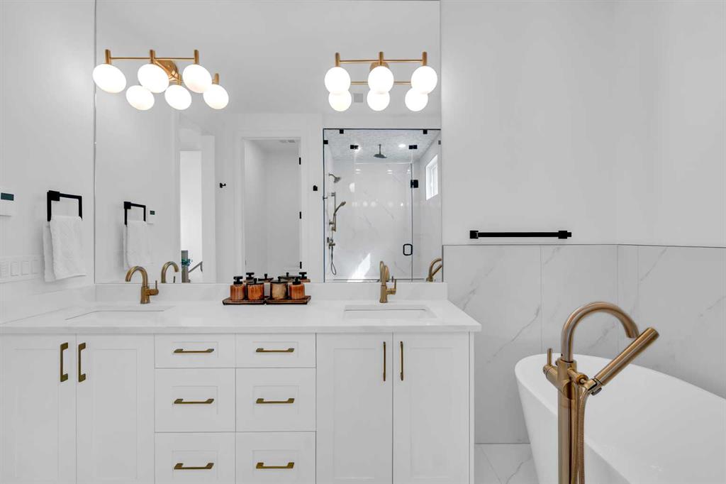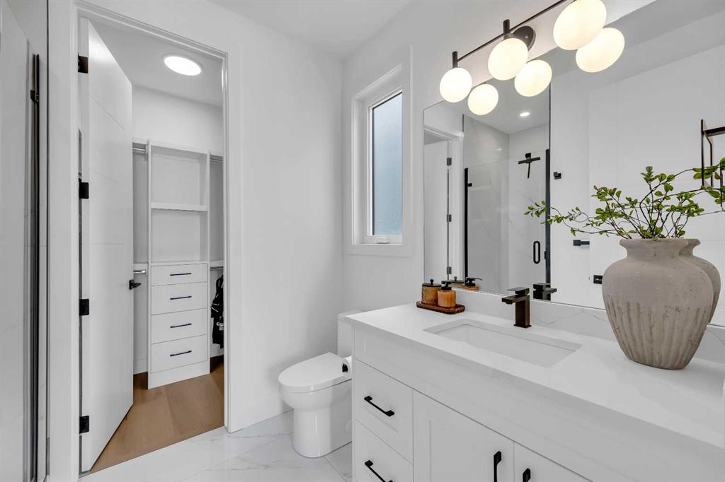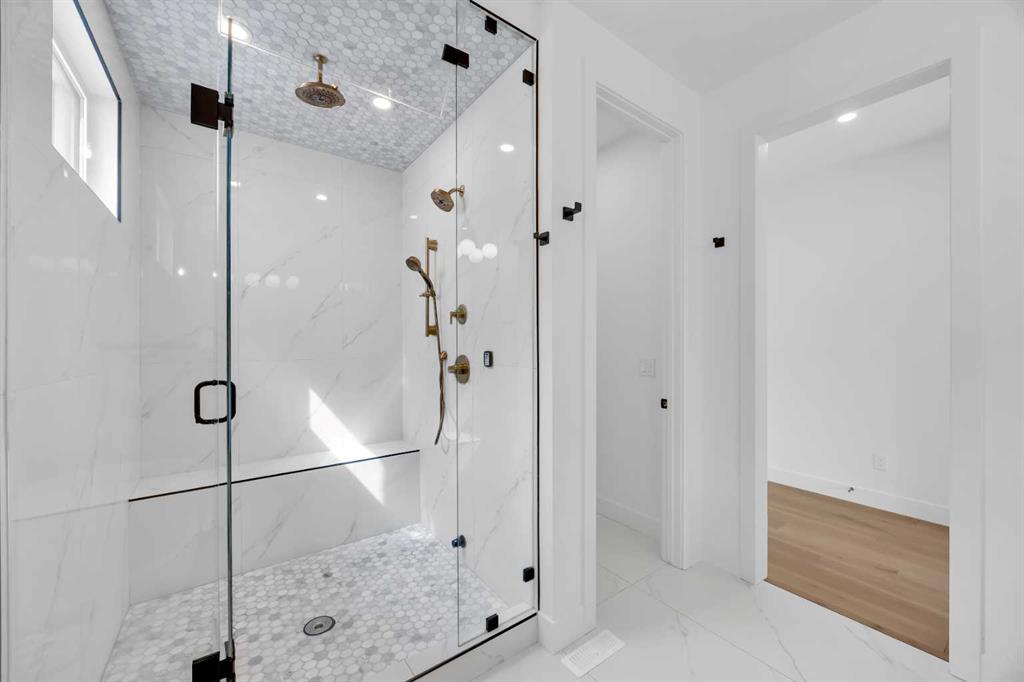 Upstairs, you’ll find three spacious bedrooms, each offering its own private ensuite and walk-in closet—a rare and highly desirable feature. The primary suite is a true retreat, featuring vaulted ceilings and a luxurious 5-piece ensuite with dual sinks, a soaker tub, and a glass-enclosed steam shower with heated floors for ultimate comfort.