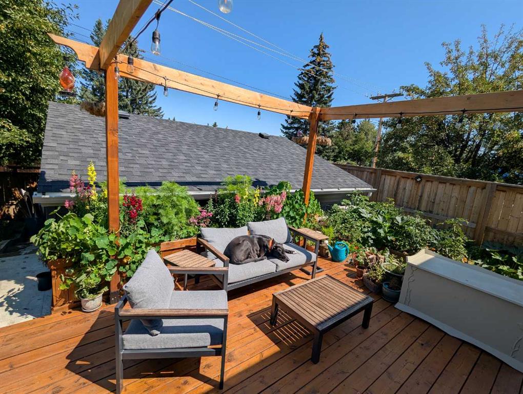 *OPEN HOUSE SUNDAY NOV 9 12pm-2:30pm* This property is a MUST SEE! Tucked away on a large traditional lot, this beautiful bungalow offers timeless character with numerous updates throughout. Step inside to discover a bright main floor with a traditional layout featuring three spacious bedrooms, including a primary suite with its own 2-piece ensuite. A cozy brick-facing wood-burning fireplace is a standout feature, enjoyed from both the living and dining rooms. The expansive kitchen impresses with stainless steel appliances, ample counter space, a massive window overlooking the backyard, a chalkboard wall, and a full pantry wall that doubles as a stylish coffee bar or entertaining station. Step through sliding patio doors to your private backyard oasis — a sunny retreat complete with a deck and pergola lit by Edison bulbs, a BBQ gas hookup, raised garden beds, an irrigation system, a rain barrel, and a storage shed. The oversized garage (21’4” x 21’7”) is a dream come true for hobbyists, mechanics, or makers — fully equipped with electric heat and air conditioning, built-in worktables, bin storage, a ceiling fan, an EV plug, and its own 100-amp panel. The ultimate workspace! The fully finished lower level offers endless possibilities — a spacious rec room and games area with a wet bar, a second gas fireplace, a 4-piece bath, a den/office or fourth bedroom, a laundry room, a dry sauna, and plenty of storage. Recent upgrades include newer electrical, furnace, hot water tank, roof, lighting, windows, laminate flooring, A/C, paint and baseboards downstairs, Cat 5 wiring in every room, wood panel accents and linen storage in the hallway, and a refreshed deck and fence. This home is truly move-in ready — yet still brimming with potential for your personal touch. Add in a welcoming community with programs and events through the Cedarbrae Community Association, and you’ve found the perfect home that combines character, comfort, and convenience in one irresistible package. You’ll love being minutes from everything — multiple schools, churches, parks, Southcentre Mall, Rockyview Hospital, and the greenspaces and pathways connecting South Glenmore Park, Fish Creek Park, and the Braeside off-leash dog park. With quick access to Stoney Trail, Glenmore, Macleod, and 22X, the entire city is at your doorstep. Stylish, functional, and filled with warmth — this is the perfect place to call home.