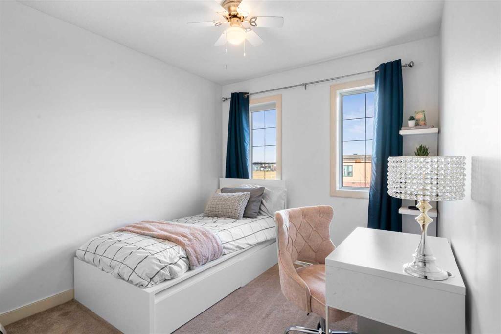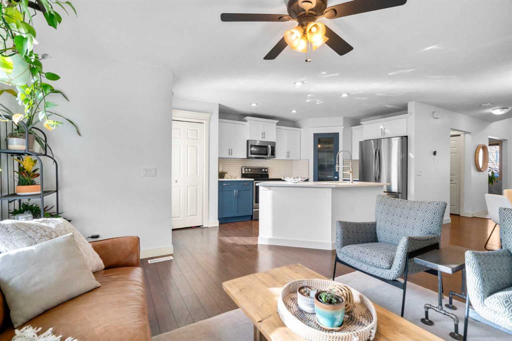 Welcome to 263 Evanston Way NW, ideally located across from a school and green space in one of Evanston’s most family-friendly pockets. This well-maintained home offers over 2,200 sq ft of developed living space across three finished levels, with thoughtful upgrades throughout. The covered front porch leads into a bright foyer, with a private front OFFICE ideal for working from home. Main-floor laundry and a convenient powder room add everyday functionality. The open-concept main living area features a recently updated kitchen with QUARTZ countertops, two-toned cabinetry (white uppers with blue lowers and island), STAINLESS STEEL APPLIANCES, and a generous pantry. The kitchen flows seamlessly into the dining area and rear living room, anchored by a GAS FIREPLACE and large windows overlooking the beautifully landscaped backyard. Outside, enjoy a two-tiered deck with pergola, perfect for entertaining or relaxing, plus the added benefit of a heated detached garage for year-round use. Upstairs, the spacious primary bedroom includes a walk-in closet and a well-appointed ensuite with soaker tub and separate shower. Two additional bedrooms with brand new triple-pane windows, a full bathroom, and an open-to-below landing complete the upper level. The FULLY DEVELOPED BASEMENT offers a large rec room with WET BAR, a fourth bedroom, and a full bathroom – ideal for guests, teens, or extended family. This level also includes an organized utility space, ample storage, and a BRAND NEW HOT WATER TANK. Recent updates include new siding, brand new level 4 hail resistant roof shingles, updated kitchen finishes, and CENTRAL AIR CONDITIONING, offering move-in-ready peace of mind. Located in the heart of Evanston, this home provides easy access to schools, parks, pathways, shopping, and major commuter routes. A well-rounded property offering plenty of space, functionality, and a strong community setting. Book your private showing today!