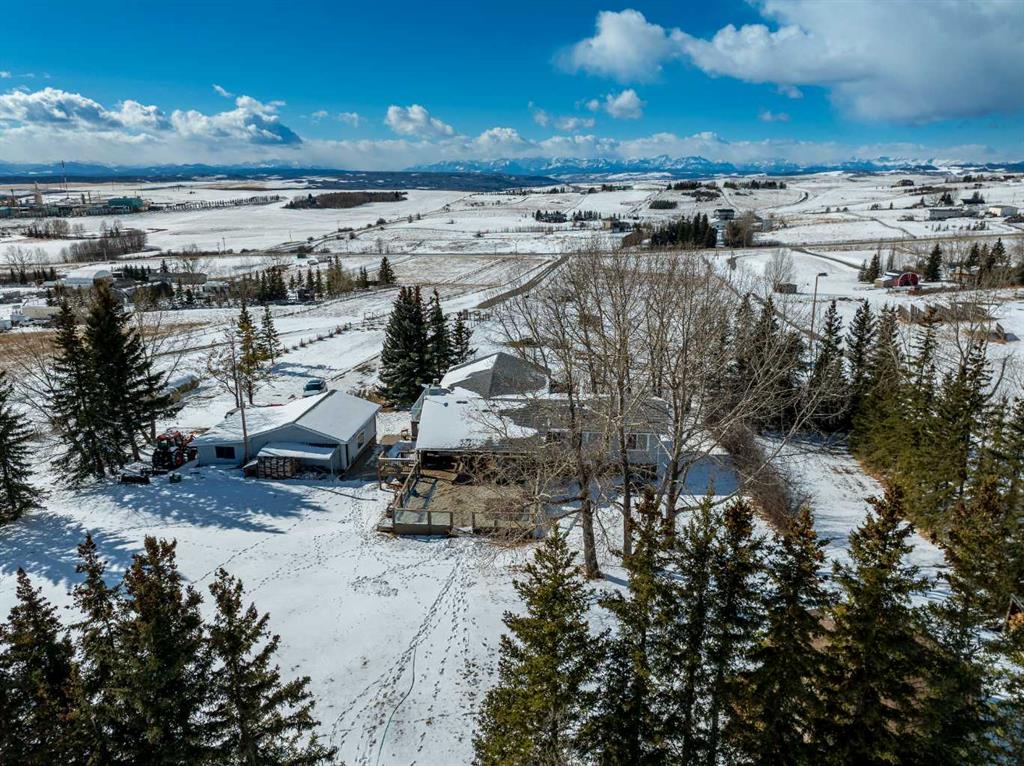 Welcome to an exceptional acreage opportunity offering space, privacy & breathtaking scenery.This beautifully renovated walkout bungalow sits on 8.06 picturesque acres & captures stunning, unobstructed mountain views right from every level of the home. Whether you’re looking for a peaceful country retreat, space for animals, or room for your family to grow, this property offers the perfect blend of comfort, functionality & rural charm. Inside, the home features 6 spacious bedrooms & a thoughtfully updated interior designed for modern living while embracing the warmth of country life. The kitchen speaks for itself with a massive island, quartz counters, tons of cabinetry, pantry & a coffee station area, This kitchen effortlessly blends highend modern utility with the rugged, organic textures of a mountain retreat. The open-concept design is defined by its crisp white cabinetry, dark stone surfaces, and a striking floor-to-ceiling fieldstone feature wall. All the bathrooms have been updated & in convenient locations. Large windows fill the home with natural light &perfectly frame the sweeping mountain views, creating a bright & inviting atmosphere throughout the main living areas. 3 cozy fireplaces bring ambience to every level of this home. 2 wood burning fireplaces and one natural gas fireplace. The layout offers both comfortable everyday living & plenty of space for entertaining family and friends. There are 3 decks to enjoy the outdoor life and views. The walk-out basement provides additional versatile living space with direct access to the outdoors, making it ideal for gatherings, extended family living, a recreation area, media room & a private retreat for guests. With multiple living spaces and generous bedroom sizes, the home offers flexibility to suit a variety of lifestyles. Step outside and experience the true beauty of acreage living. The 8.06-acre parcel offers wide open space, privacy & endless potential for outdoor enjoyment. The property has been home to cows, donkeys & chickens, making it well suited for hobby farming or those who appreciate the charm & rewards of rural life. There’s a 20x50ft garden area, gazebo and additional outbuildings. Imagine starting your mornings with coffee while watching the sunrise over the mountains & ending your evenings under expansive prairie skies. With incredible views, room for animals & a beautifully updated home already in place, this property offers a rare opportunity to enjoy the best of country living while still being within reach of nearby amenities. Acreage properties like this are increasingly hard to find offering the perfect combination of land, views & a move-in-ready home. Whether you’re dreaming of a hobby farm, a private family retreat, or simply more space to live and breathe, this remarkable property delivers a lifestyle that is truly special. Roof 15 years old, septic field/tank 2022, furnace 2023, H2O tank 2025
