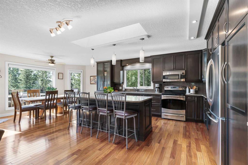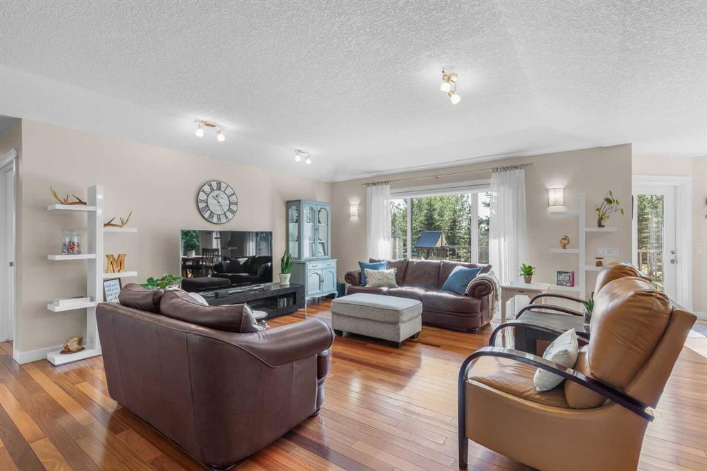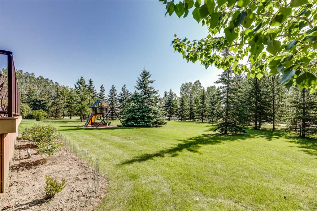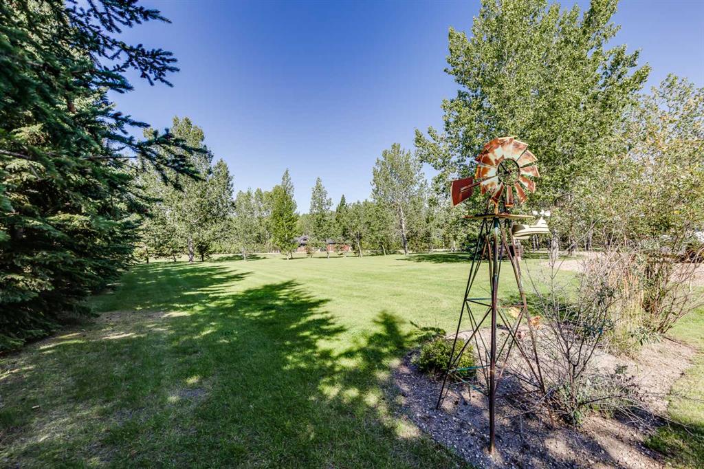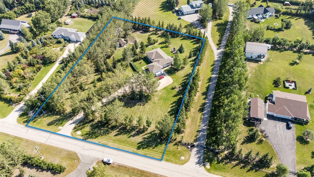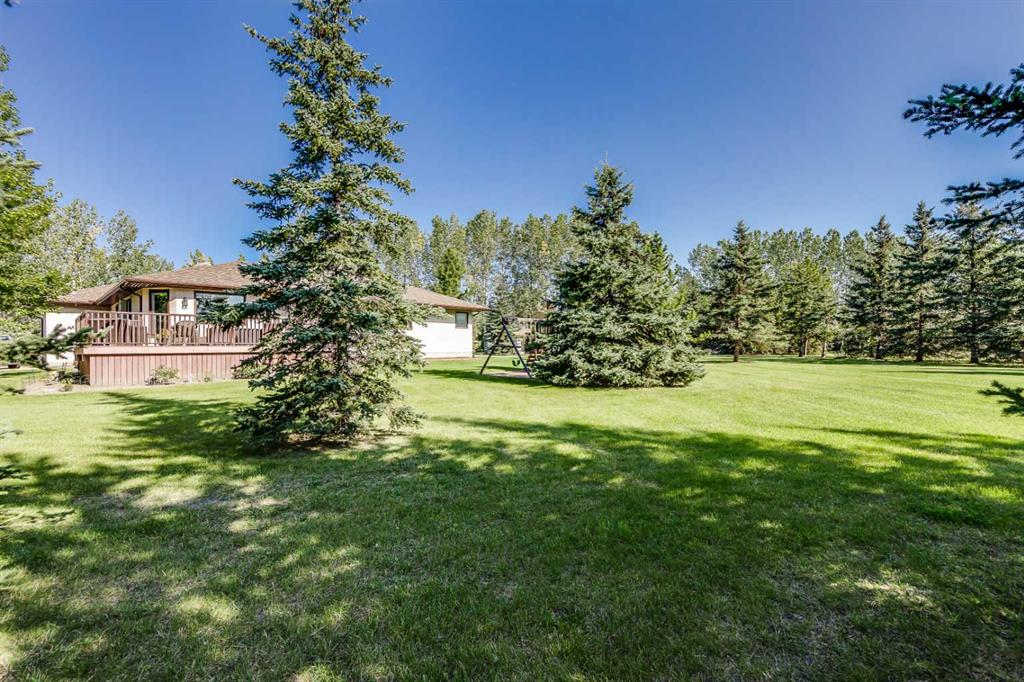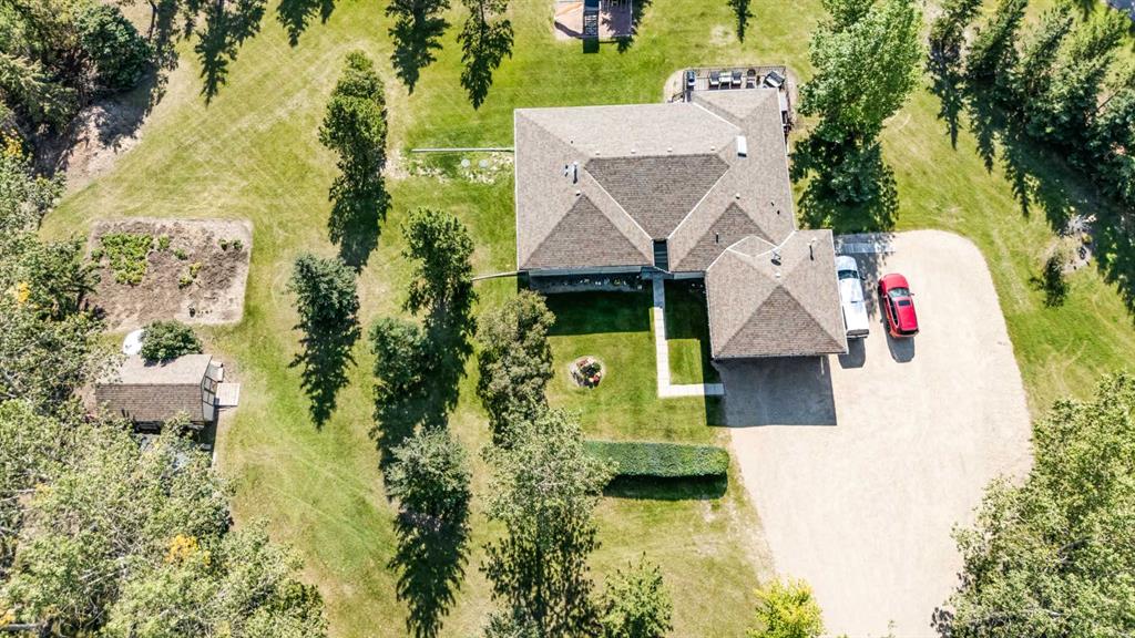 OPEN HOUSE: Sun., Feb 15: 1-3pm! Set among rolling hills just southeast of Airdrie, this exceptional 5 bed, 4 bath contemporary bungalow rests on a meticulously landscaped acreage designed for privacy and tranquility. Over 400 mature trees, thoughtfully planted more than two decades ago, now surround the home in a natural, park-like sanctuary. Renovated with intention and quality, the residence blends modern design with timeless appeal. Notable updates include: triple-pane windows, Brazilian teak hardwood flooring a chef-inspired kitchen with custom cabinetry, quartz countertops and premium stainless steel appliances. The main-floor primary suite offers a spa-like escape with double sinks, a freestanding soaker tub and a separate glass shower. The fully developed basement boasts a spacious recreational space, 2 large bedrooms, full bath and loads of storage. Completing the property are an attached, heated double garage, a high-producing, water well and a recently updated septic tank and field and no Poly-B, ensuring independence, efficiency, and peace of mind. All systems have been regularly maintained and well cared for. Acreage properties of this caliber are rarely available.