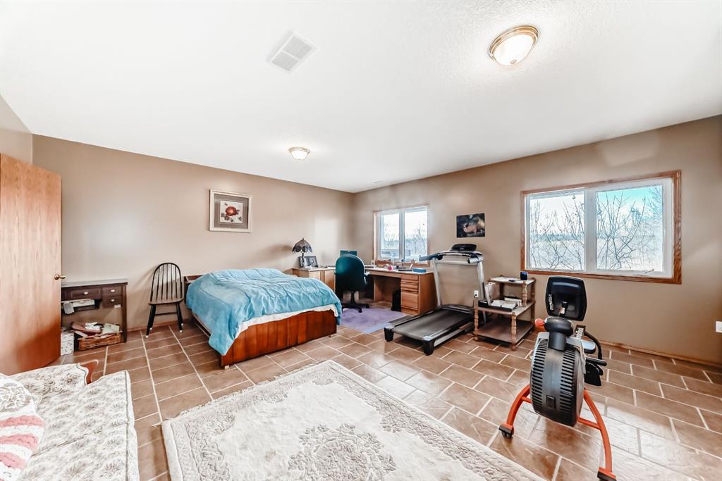 Downstairs, the fully finished walkout level provides even more space to live and grow — complete with infloor heating, tile flooring, and big windows framing those same incredible views. You’ll find a huge rec/family room, 4th bedroom with walk-in closet, a 4-piece bathroom, and an impressive 5th bedroom with double closets. There’s also a patio with room for a hot tub.
