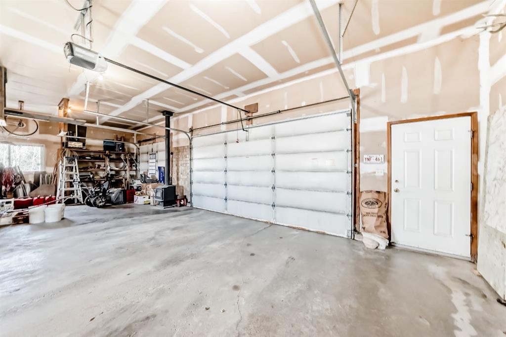 For the hobbyist or acreage enthusiast, the attached triple garage is a standout: insulated, drywalled, high ceilings, 220V power, overhead storage, hot & cold water, 8 ft doors, and even a wood-burning stove for winter comfort. Outside, the land is set up beautifully with three shelters currently used for wood, a shed for the lawn tractor, and raised garden beds.