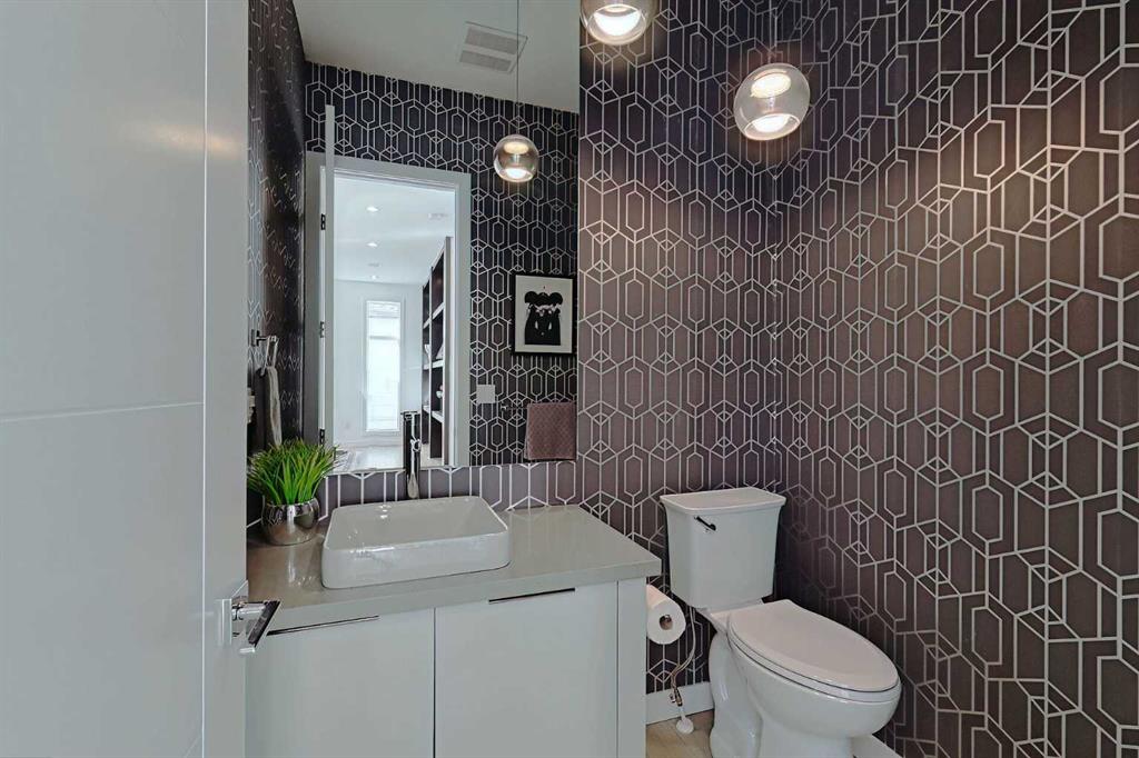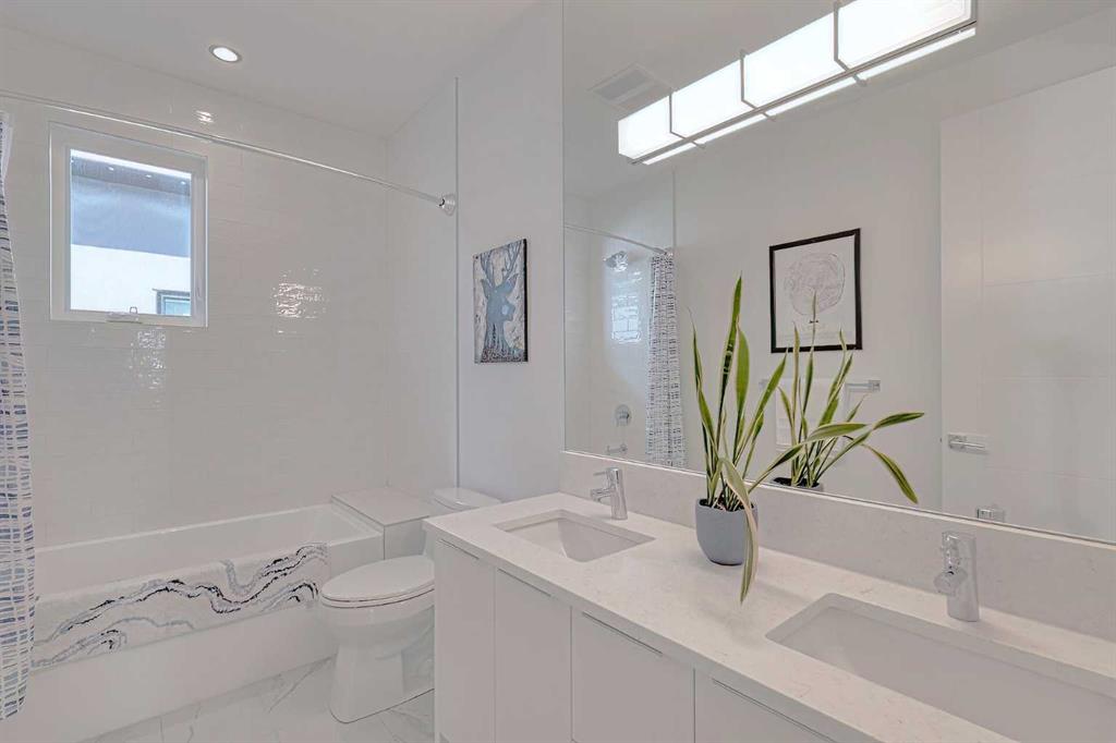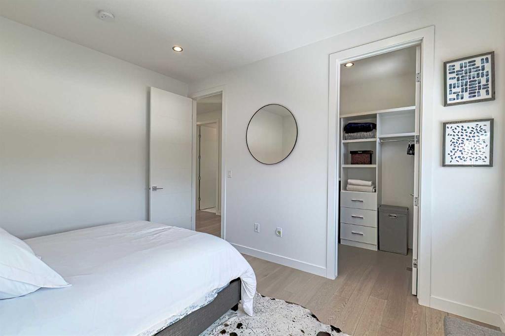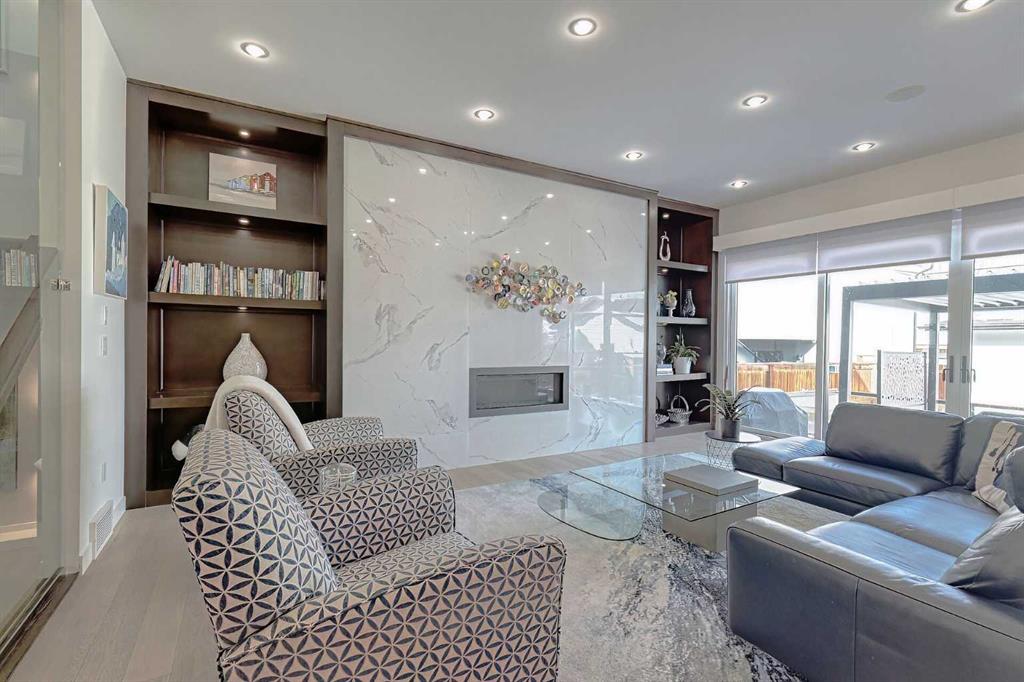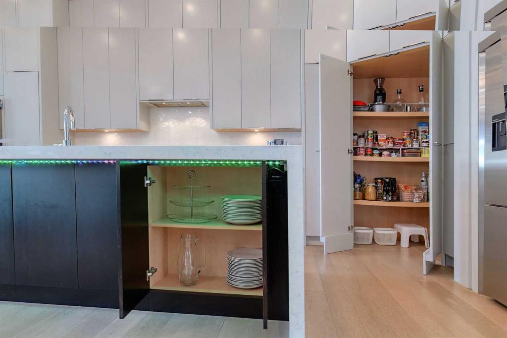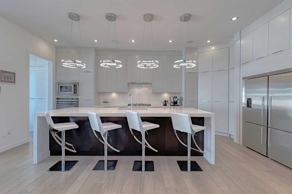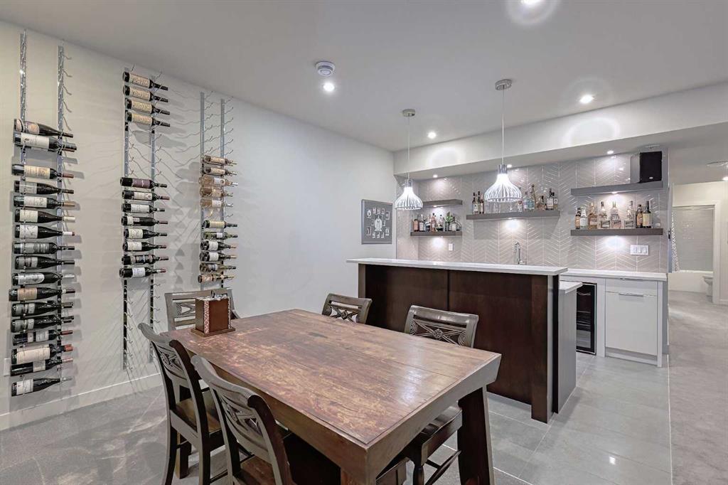 IT’S A LIFESTYLE !! Picture a life where you wake up in a quiet, tree lined SW inner-city neighbourhood, grab a coffee, drive out of your RARE TRIPLE CAR GARAGE and be downtown in minutes. Live the dream in your luxurious modern home and enjoy fun-filled evenings with family and friends in a showpiece GOURMET KITCHEN designed for real cooks. The kitchen features DELUXE FISHER PAYKEL APPLIANCES including gas cooktop, wall oven and a quiet MIELE DISHWASHER. Note the hidden corner pantry, extra rolling storage and spice racks, and even more storage in the covert cabinets at the front of the island, lit by multi-coloured LED lighting. Imagine laughter echoing through soaring 10’ CEILINGS, and natural sunlight pouring into the OVERSIZED WINDOWS. The upper level with THREE SPACIOUS BEDROOMS includes a relaxing primary bedroom retreat sensibly designed with his and hers walk-in closets. After a tough work week envision finally resting in your king sized bed with tufted blue velvet wall and designer pendant lights or unwinding in the SPA-INSPIRED ENSUITE that feels like a boutique hotel… comes with a freestanding soaker tub, European tiled shower and dual sinks. Also on this floor is a spacious laundry room, and I nearly forgot to mention that the second bedroom has its own walk in closet! So many CUSTOM UPGRADES – lighting, plumbing, built in speakers, an entire home automation system with motion sensors and for ease of life, all the louvres and roller blinds are automated with their own remotes (Lucenti automated roller blinds in the great room), a mudroom with built in storage, hot tub rough in, etc. This Killarney gem is beautifully built with 10’ ceilings that create an airy, open feel, has wide-plank hardwood flooring, custom cabinetry, a massive island for your creative baking pleasure, a great room that brings people together and features a tile surround showcase fireplace. AND the large dining room with stunning floor to ceiling built-in shelving is a show stopper. A large FOURTH BEDROOM and THREE PIECE BATHROOM complete the FULLY DEVELOPED BASEMENT. Imagine movie nights in your own private media lounge where you might also host guests with a wine or whiskey tasting at your fancy wet bar, a lower level made for memories. Check out the garage with new, cutting edge steel cabinets and polyaspartic flooring (tough as nails, but breaths better than epoxy). A fabulous, private back yard with Artificial turf gives you a near entirely MAINTENANCE FREE FRONT and BACK YARD with ALUMINUM PRIVACY SCREEN and lots of space for your patio furniture and outdoor fire pit. There are plenty of entertaining areas inside and outside this opulent home. Minutes to downtown, transit, parks, amenities and the Shaganappi Golf Course; golf in summer or cross country ski and snow shoe in winter. The Killarney Aquatic Recreation Centre is also just blocks away. This magnificent detached home blends contemporary design with everyday comfort – where modern luxury meets everyday ease.