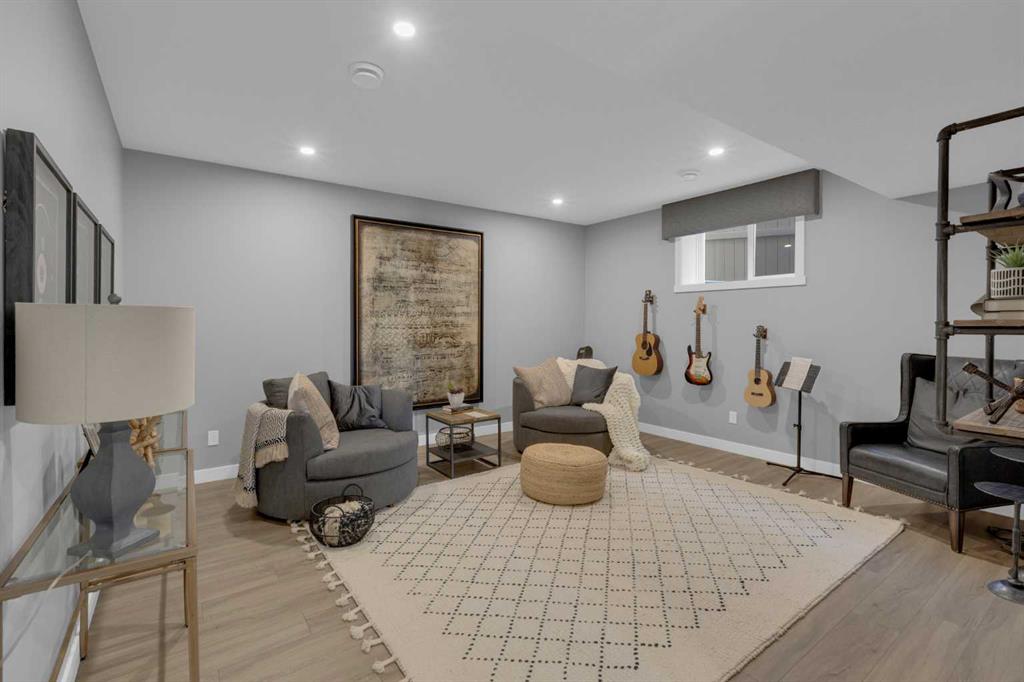 The thoughtfully designed main floor offers two bedrooms, including a serene primary retreat with a walk-in closet and spa-inspired ensuite. A second bedroom with its own ensuite provides ideal flexibility for guests. A formal dining room, spacious living area, and dedicated office complete the main level — perfect for working from home or creating a quiet flex space.