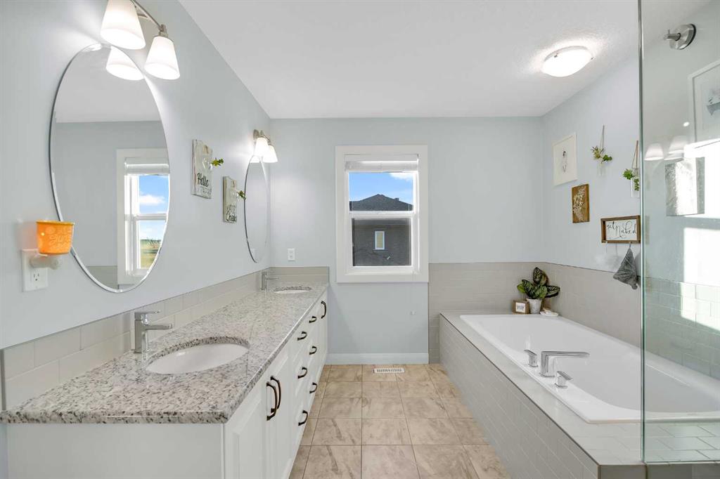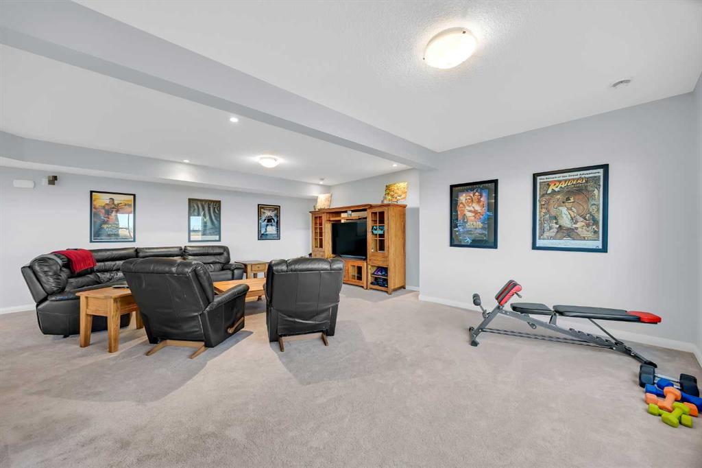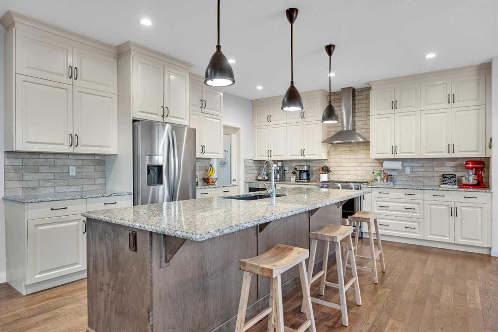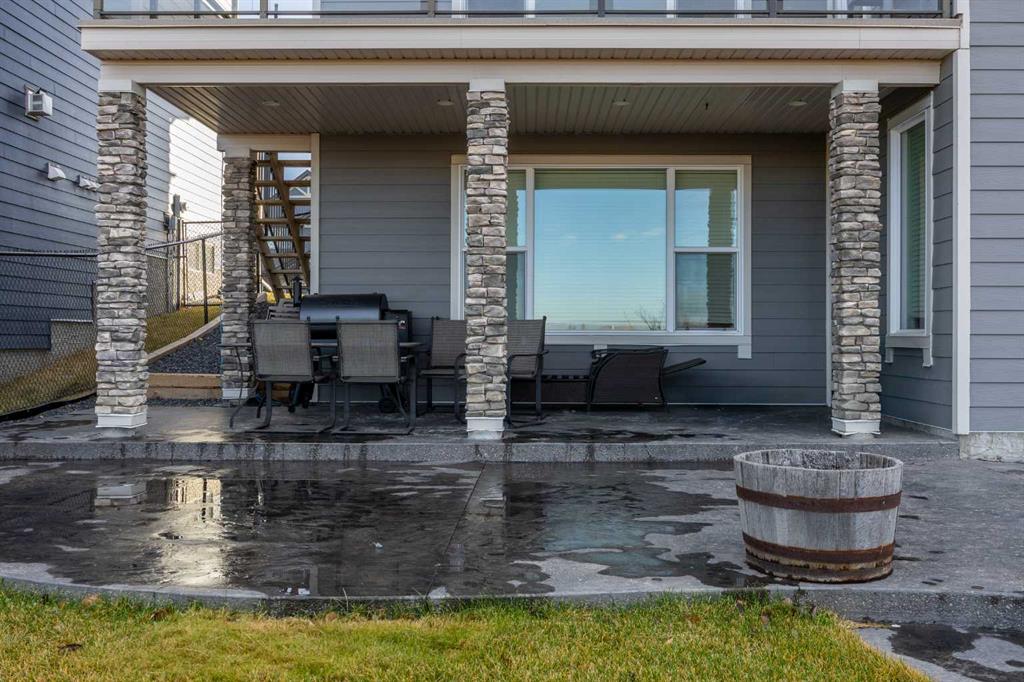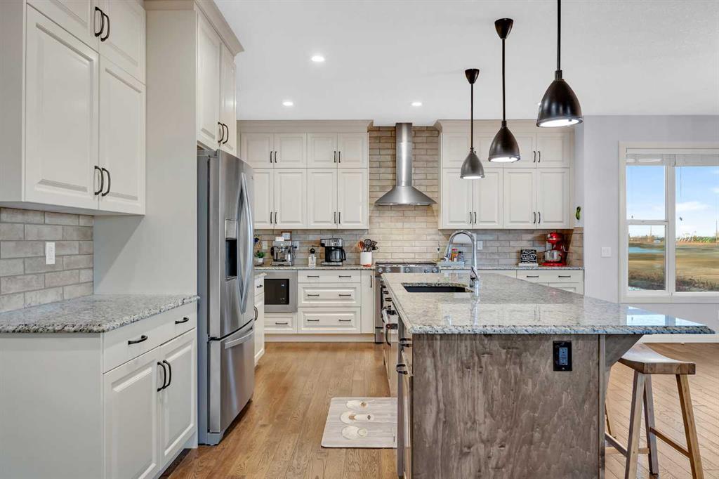 Stunning home offering over 3,900 sq. ft. of beautifully designed living space, backing onto the golf course with no neighbours behind and breathtaking sunrise and sunset views. This property combines luxury, functionality, and impressive craftsmanship throughout. The oversized 3-car garage is insulated and equipped with 220V electrical, perfect for hobbyists, EV charging, or workshop use. Exterior features include Hardie Board siding, permanent Govee lighting, and a large stamped-concrete patio. The east side offers RV parking, plus a double swinging gate for convenient backyard access for vehicles or equipment, with gate access available on both sides of the home. Inside, the bright and open layout features 9′ ceilings, a 5-burner gas stove, and a kitchen designed for both cooking and entertaining—complete with granite countertops, floor-to-ceiling cabinetry, soft-close drawers and cupboards, and a pull-out spice rack. The mudroom is equipped with custom-built lockers, while the living room showcases a grand custom maple fireplace and built-in bookshelves. The upper bathrooms include granite countertops in the ensuite and quartz counters in the remaining bathrooms. Additional highlights include dual furnaces, and a brand-new hot water tank (2025). The fully finished walkout basement offers 9′ ceilings, abundant natural light, and direct access to the backyard and patio. The home is also wired for indoor and outdoor speakers, enhancing both everyday living and entertaining. This exceptional property seamlessly blends comfort, luxury, and practical amenities—truly a rare find with outstanding views and privacy.