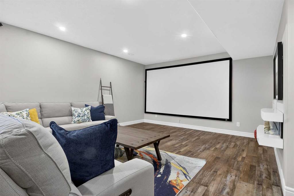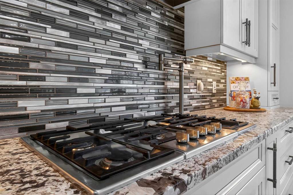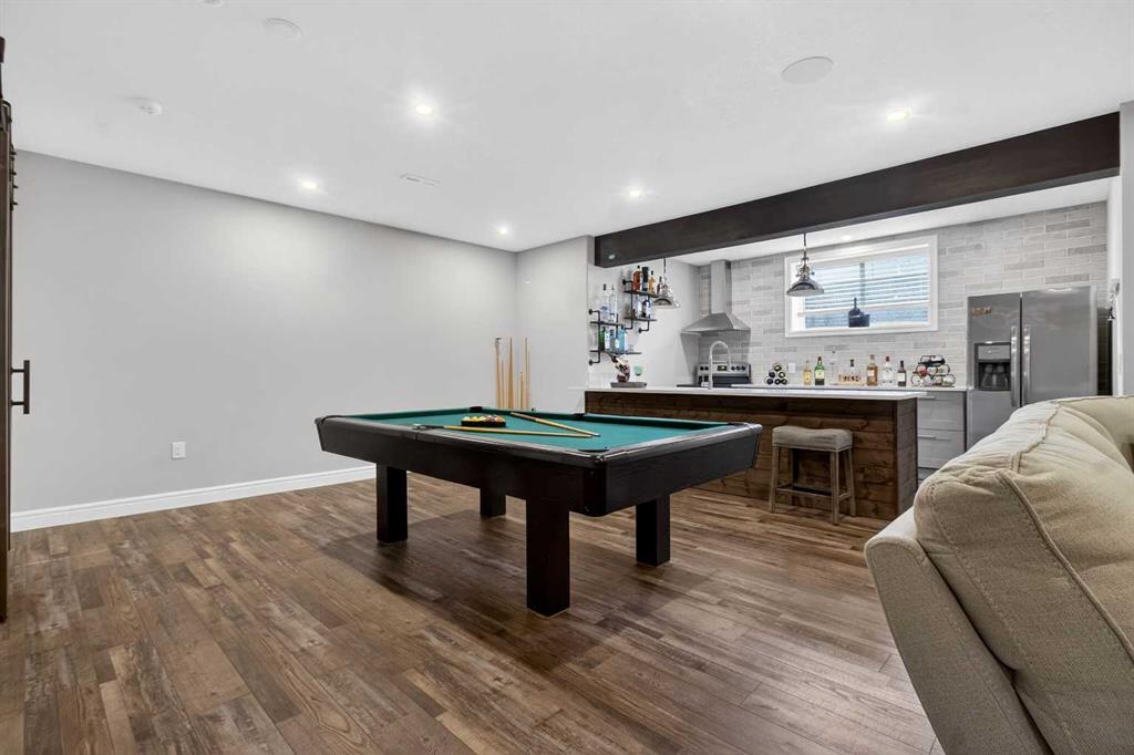 The fully finished basement is designed for entertaining with impressive nine-foot ceilings and a spacious recreation and family area. A stylish wet bar with island, fridge, stove, and dishwasher creates the perfect setting for hosting. The lower level also includes a fifth bedroom and a modern three-piece bathroom with a custom walk-in shower.