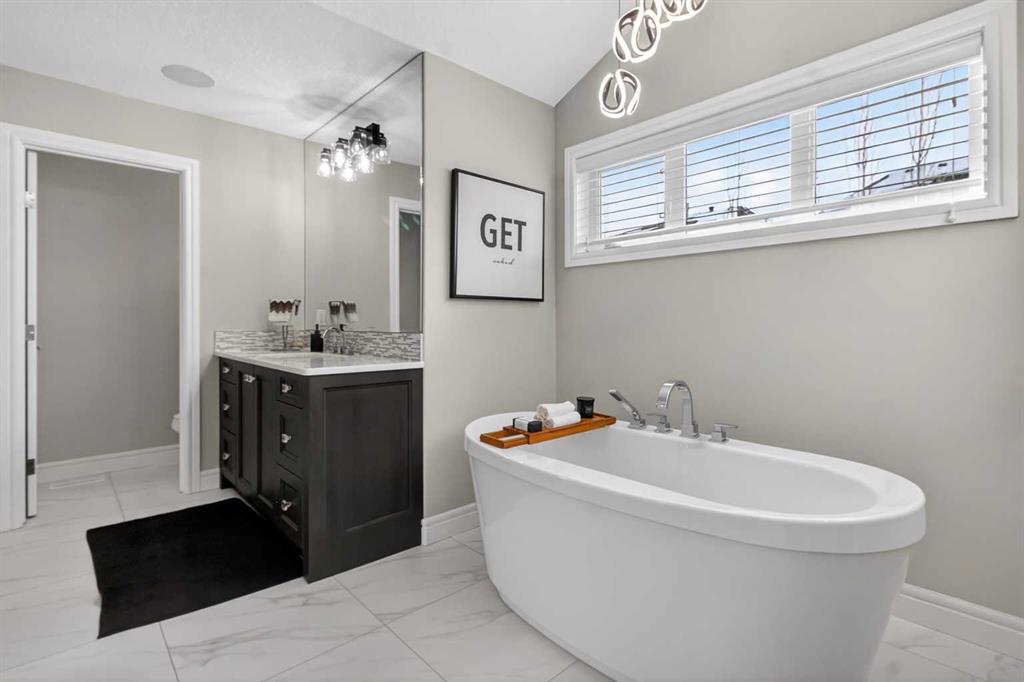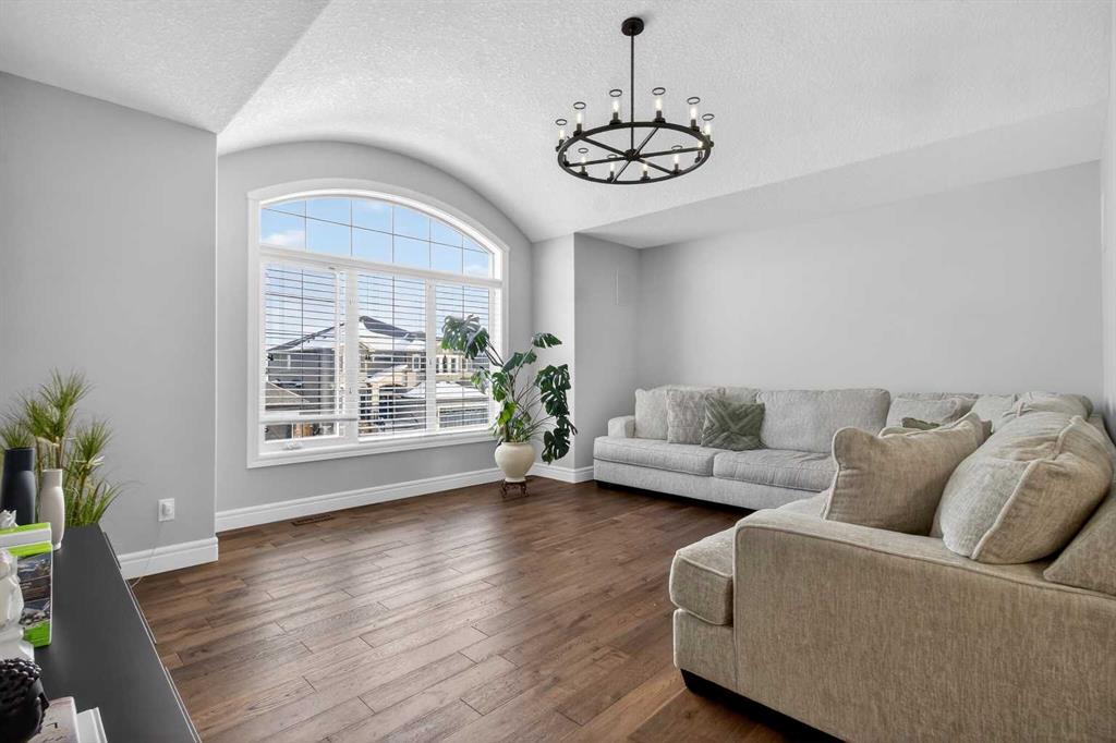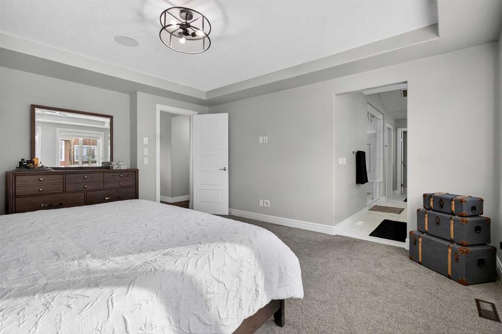Upstairs you will find four generously sized bedrooms, each with custom walk-in closets, along with a bright bonus room featuring vaulted ceilings that offers additional living space. The luxurious primary suite serves as a private sanctuary with elegant tray ceilings and a spa-inspired five-piece ensuite complete with dual vanities, a freestanding soaker tub, custom tile shower with bench seating, and a large walk-in closet with built-in organizers. A full four-piece bathroom and a conveniently located upper-level laundry room complete the floor.
