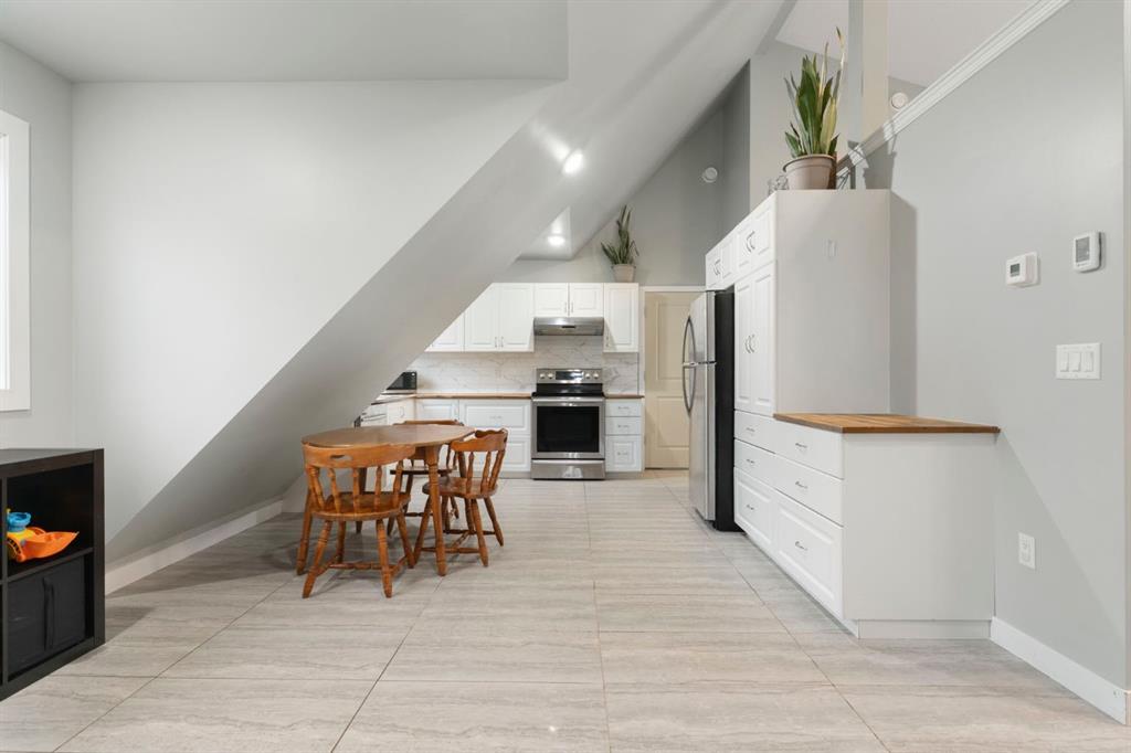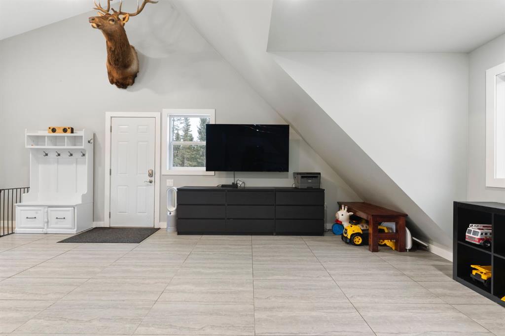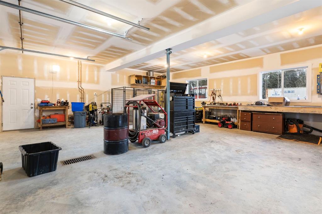 On the lower level, the oversized garage space provides substantial room for vehicles, equipment, recreational toys, or workshop use, offering outstanding flexibility for hobbyists, trades, and outdoor enthusiasts alike.