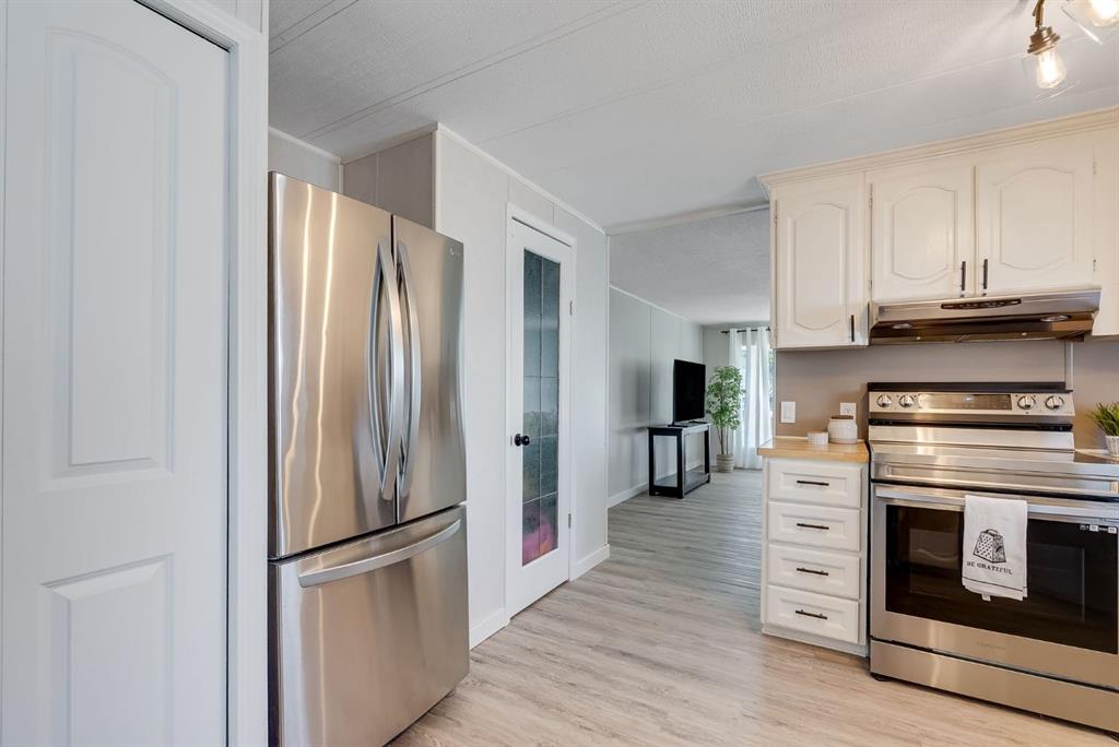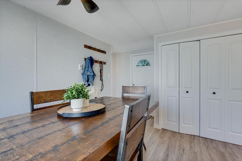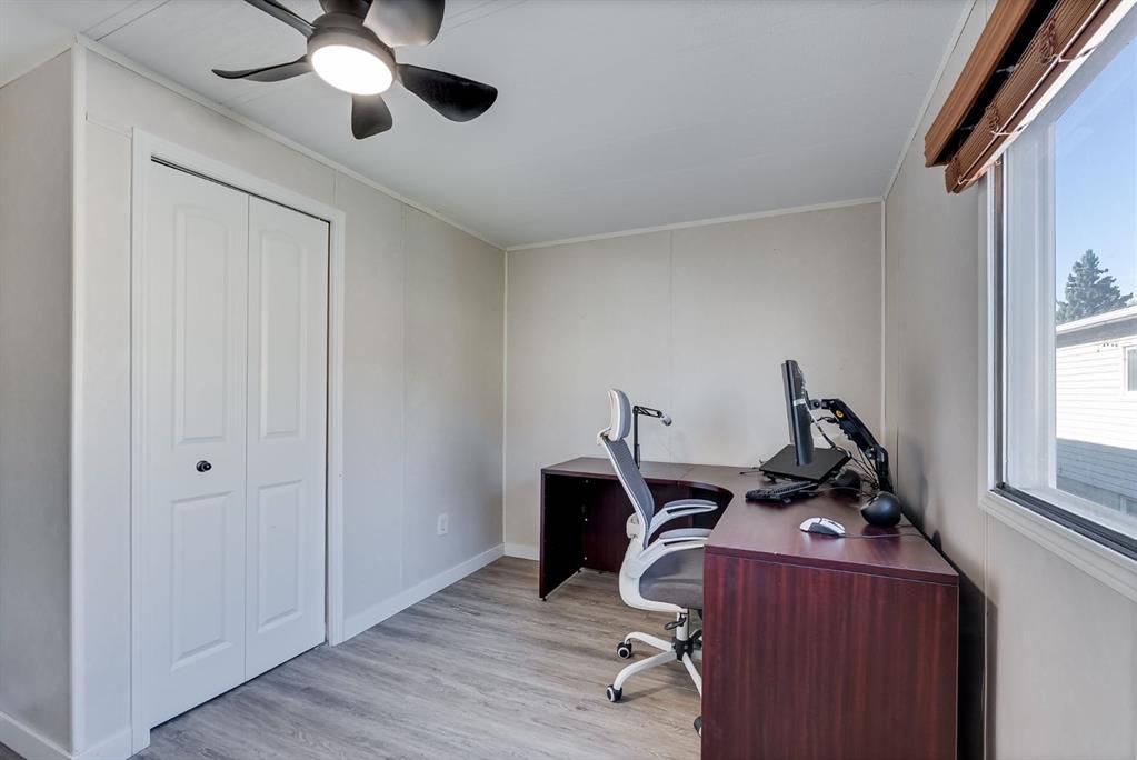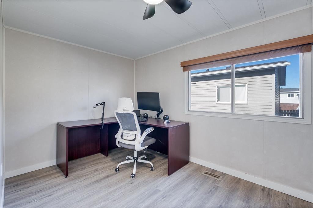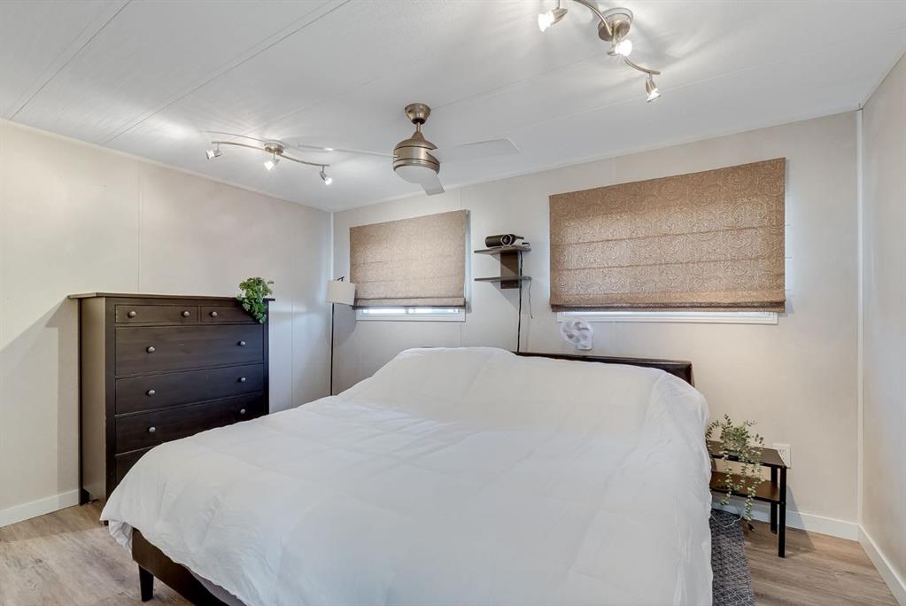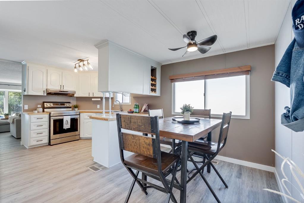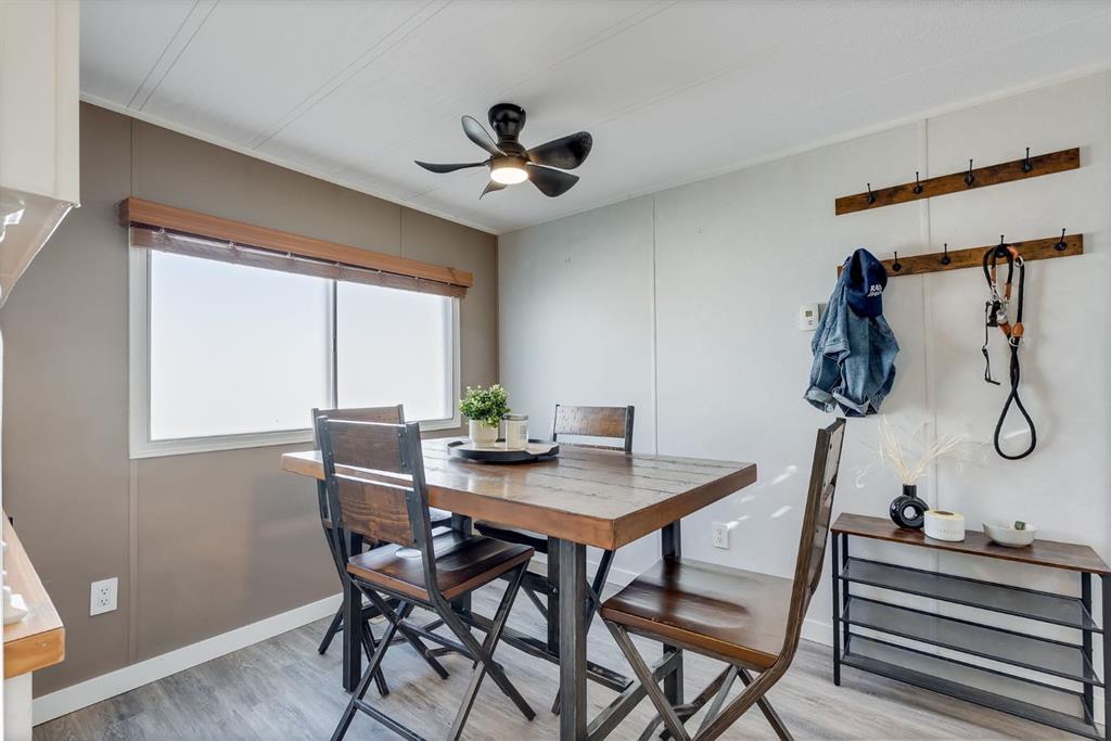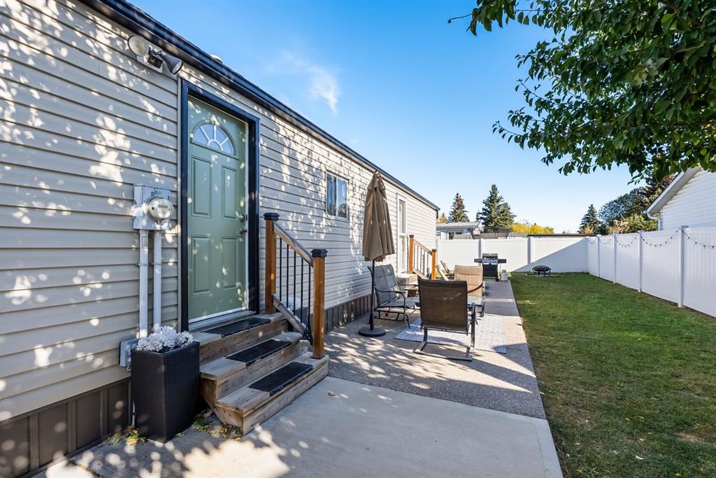 Move-in ready with land ownership! STEPS away from Airdrie’s GENESIS CENTRE, BERT CHURCH THEATRE, Shopping, Dining, and a quick dash out to the main arteries of Airdrie. This updated 976 sq ft mobile home offers a bright, open layout with kitchen, dining, and living areas that flow seamlessly together. Features include stainless steel appliances, durable flooring, 2 bedrooms, and a full 4-piece bath. Enjoy a private fenced yard with patio and storage shed that is perfect for pets, gardening, or relaxing outdoors. With recent updates and land included, this home delivers comfort, value, and peace of mind. Don’t miss out on your opportunity to own your own home, land, with all the comforts needed for a first time buyer or young family. Call your favorite realtor today to book a showing.