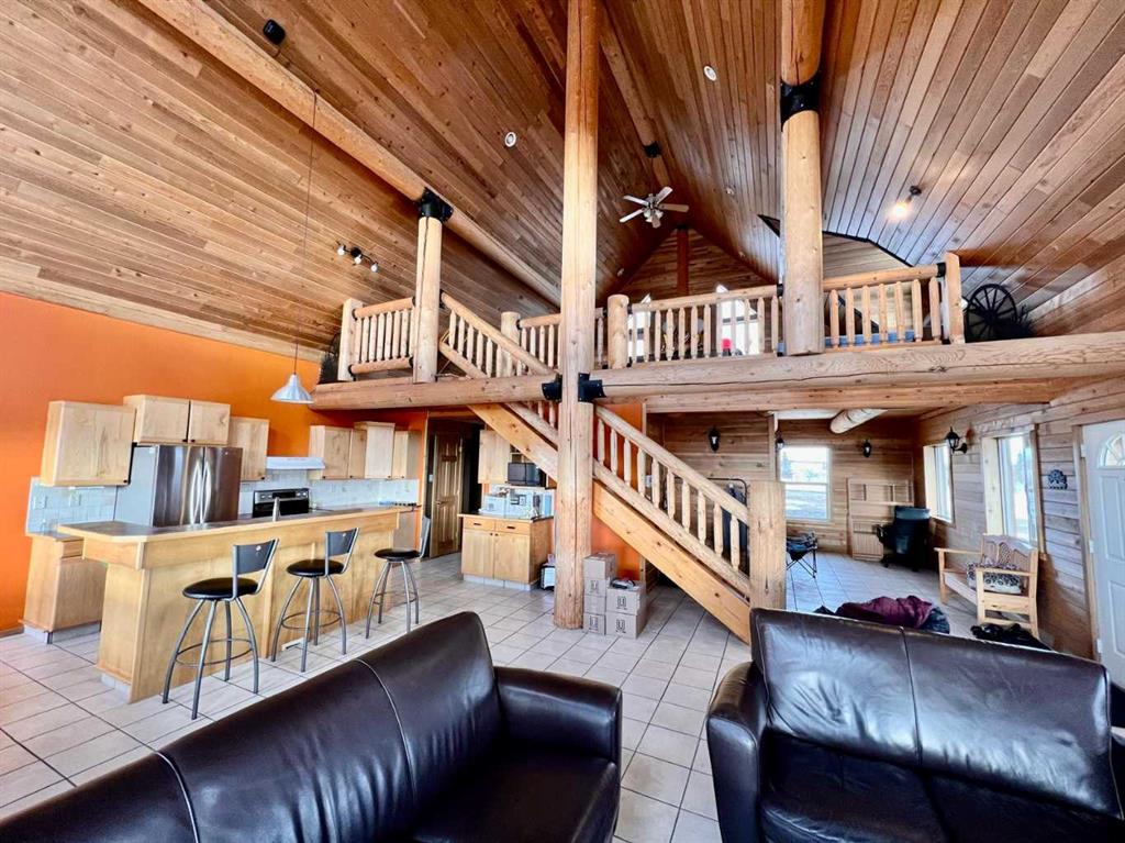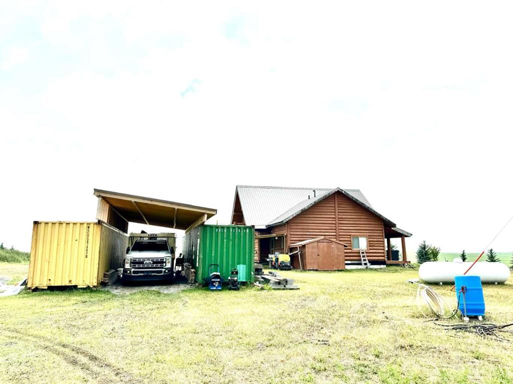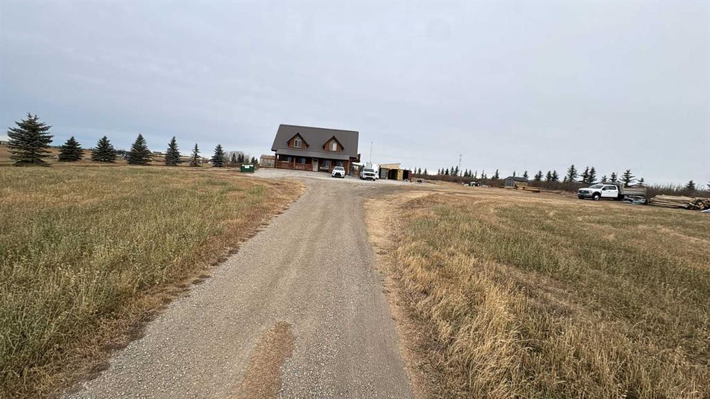 Discover an exceptional opportunity at the corner of Symons Valley Road and Big Hill Springs Road — 53 acres of prime land featuring incredible highway frontage and panoramic views of the Rocky Mountains. This property includes 49.13 acres on the west side of Symons Valley Road and 4.16 acres on the east side, providing flexibility for future development or investment. The modern log home, built in 2005, offers an open-concept design with vaulted ceilings and expansive west-facing windows that perfectly frame the breathtaking mountain sunsets. Inside, you’ll find two bedrooms, two bathrooms, and a spacious loft, all complemented by in-floor heating replaced in 2024 for year-round comfort. A new hot water tank installed in 2023 ensures added reliability. Outside, two 40-foot sea containers with a two-car parking shed built between them provide secure storage and covered parking. Ideal for investors or developers, this property offers potential for a 4-acre parcel subdivision, RV storage, or future commercial re-zoning (subject to MD of Rocky View approval). Combining luxury, location, and limitless potential, this remarkable property is truly one-of-a-kind.