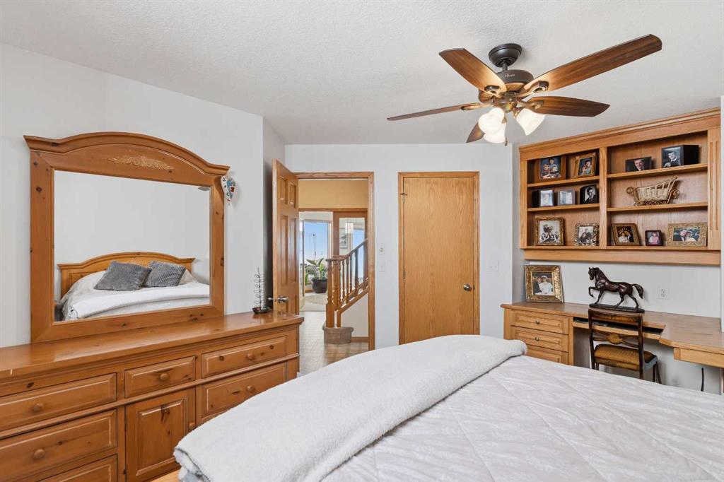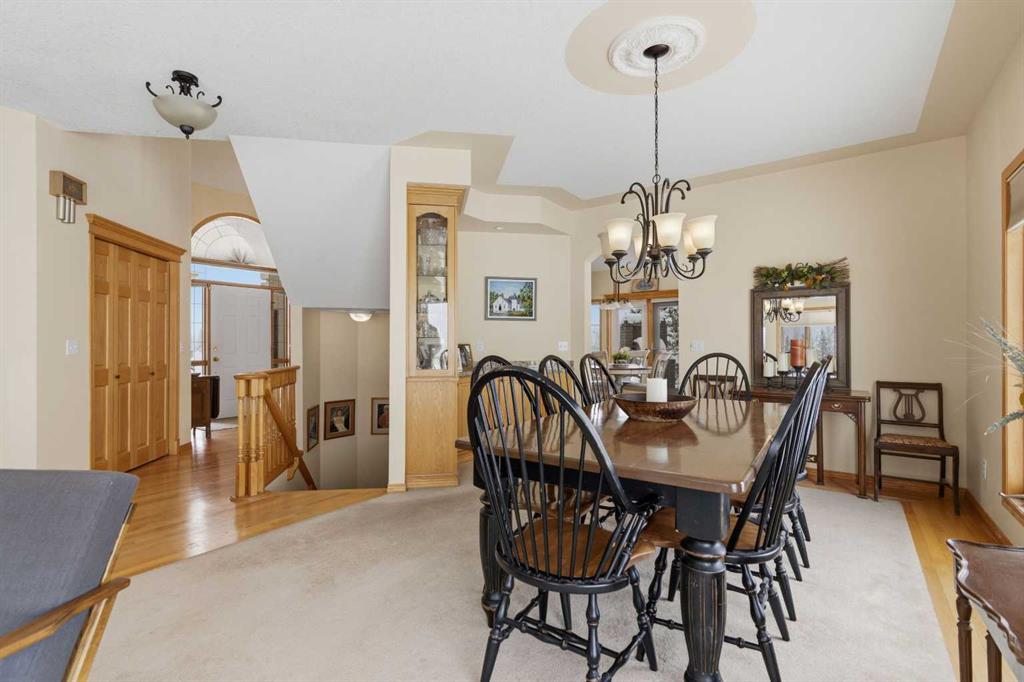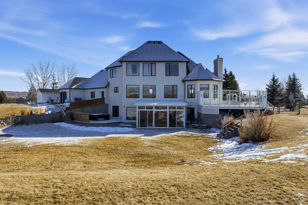 Set against the breathtaking backdrop of the Rocky Mountains, this exceptional Country Lane Estates residence offers a rare blend of privacy, space, and refined rural living just minutes from Calgary. Positioned on 2 pristine acres, the home captures the essence of Springbank—wide open skies, uninterrupted mountain vistas, and a sense of calm that’s increasingly hard to find. With over 4,000 sq. ft. of thoughtfully designed living space, the property balances family functionality with elevated comfort, featuring generous gathering areas, quiet workspaces, and seamless indoor-outdoor flow. This well-built home features oak hardwood flooring and doors, four bedrooms with easy potential for a fifth, three full bathrooms, and an oversized heated triple garage. Recent upgrades—including a new roof in 2022 and fresh exterior paint in 2023—provide added peace of mind. The main floor offers a flexible office or dining space, a bright kitchen and living areas oriented to capture the mountain views, plus a full bath, bedroom, and well-planned mudroom/laundry. Upstairs, the primary suite includes a walk-in closet, a luxurious ensuite and is completed with a second bedroom. The walkout lower level is ideal for teens or guests, with two bedrooms, a full bath, a spacious recreation area with wet bar, and direct access to a 3-season room and private hot tub. Every feature has been thoughtfully integrated to support a seamless, elevated lifestyle in one of Springbank’s most desirable communities. With close proximity to great schools, both public and private, what more could you want in your new home.