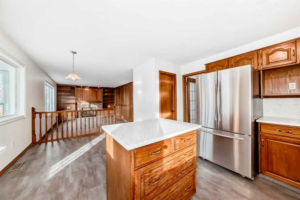 Step inside to soaring vaulted ceilings in the formal living room and a grand front entry with a brand-new chandelier. The bright kitchen is a chef’s delight with quartz countertops, a movable central island, stainless steel appliances, and new LED track lighting. A cozy family room with a fireplace and custom built-in bookshelves offers a perfect space to unwind. Main floor also come with a laundry room with lots of storage and a two-piece washroom.