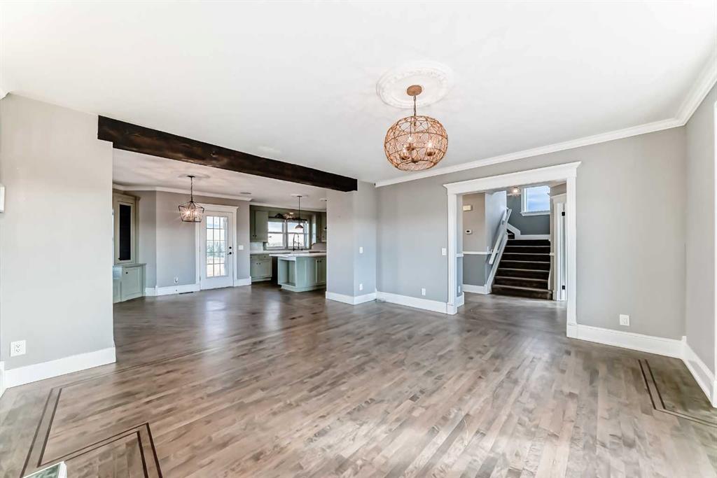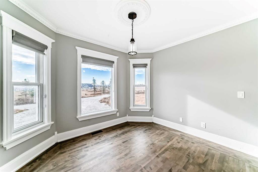Five mins to the Calgary city limits sets this property apart from the rest of the acreages. Perfect balance of peaceful country living with the convenience of the city nearby. Situated on 2.89 acres of fully fenced and landscaped land, this beautiful property offers privacy, space, and accessibility. Only ten minutes to the C-train and all the amenities of 168th Avenue, you’ll love how easily you can transition between rural tranquility and urban convenience. The two-story home, originally relocated to this site, is set on a newer concrete foundation and offers over 3,000 square feet of developed living space. The main level features rich hardwood flooring throughout the main level, excluding the laundry and back entry. A spacious living room with a feature gas fireplace opens to the dining area and a completely renovated kitchen. The kitchen is a chef’s dream with quartz countertops, stainless steel appliances including a gas stove, a newer fridge and dishwasher, ample cabinetry, and a large island with an eating bar. Also on the main level is a generous laundry area with extra pantry storage, a two-piece bathroom, and a large office conveniently located just off the front entry. Upstairs you’ll find three spacious bedrooms, including the master bedroom with a walk-in closet and a five-piece ensuite. Another four-piece bathroom completes the upper level. The fully developed basement has just had 40k of upgrades including flooring, doors and baseboards. The basement adds even more living space with two additional bedrooms, a recreation room, and another four-piece bathroom. Recent upgrades include a newer furnace and a six-year-old hot water tank. Outdoor living is a highlight, with a large wrap-around deck that provides a westward view of the mountains on clear days. A triple car garage (tandem on one side, single on the other) completes the package. High ceilings in the garage for those of you car lovers. This is a rare opportunity to enjoy country charm with unbeatable proximity to the city.