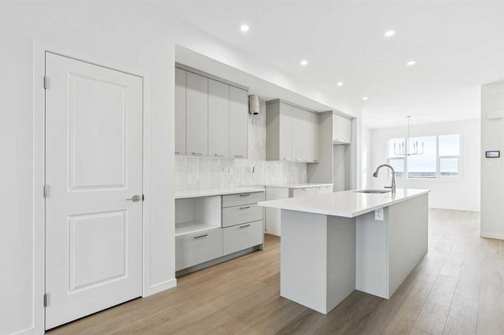 Welcome to Glacier Ridge, the new North West’s premier community. This home is on a WALKOUT LOT with a full width deck spanning views of the foothills and beautiful farmland that neighbor Glacier Ridge. Boasting a 9′ basement already roughed in for future potential development. Cedarglen’s Frank model has optimized the open floor plan, with a main floor designed to keep the central upgraded kitchen as the beating heart of the home, and the Great Room nestled up front with spacious real estate, and a nook at the rear for more restful dining and conversation. The upper floor expertly crafts a three-bedroom space that allots privacy to the primary with a central bonus room complete with natural light. The house’s interior selections have been curated by Cedarglen’s Design Team, turning this new home into a Showhome.