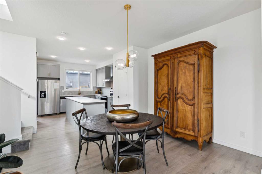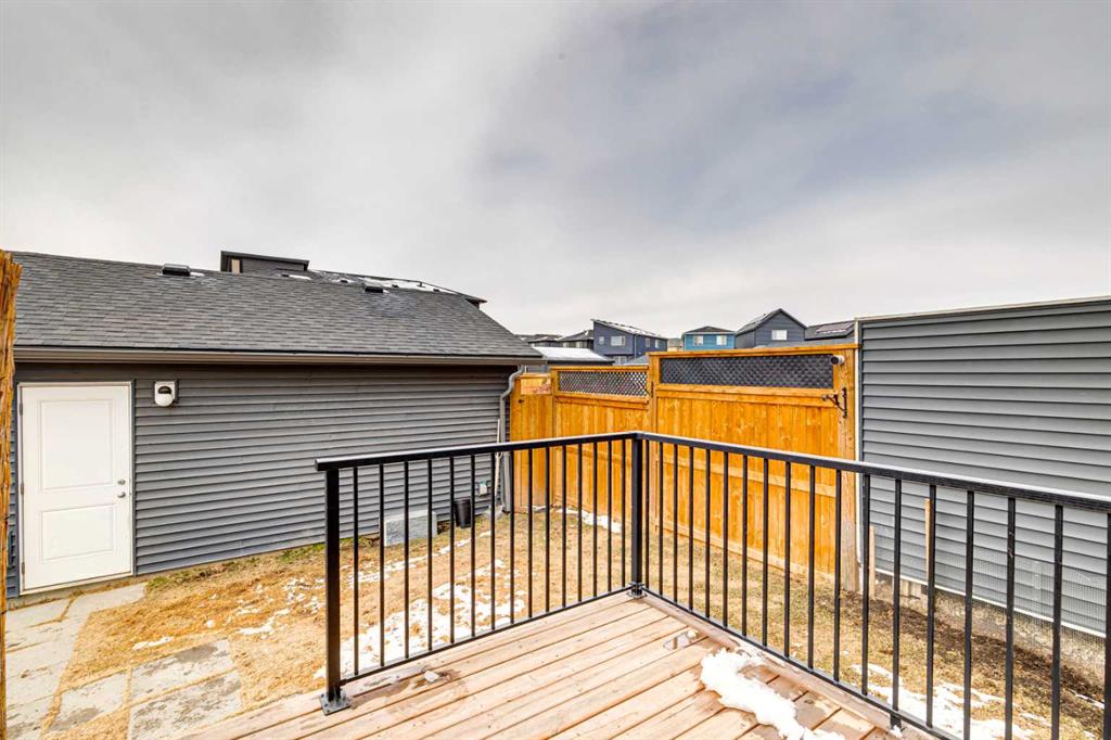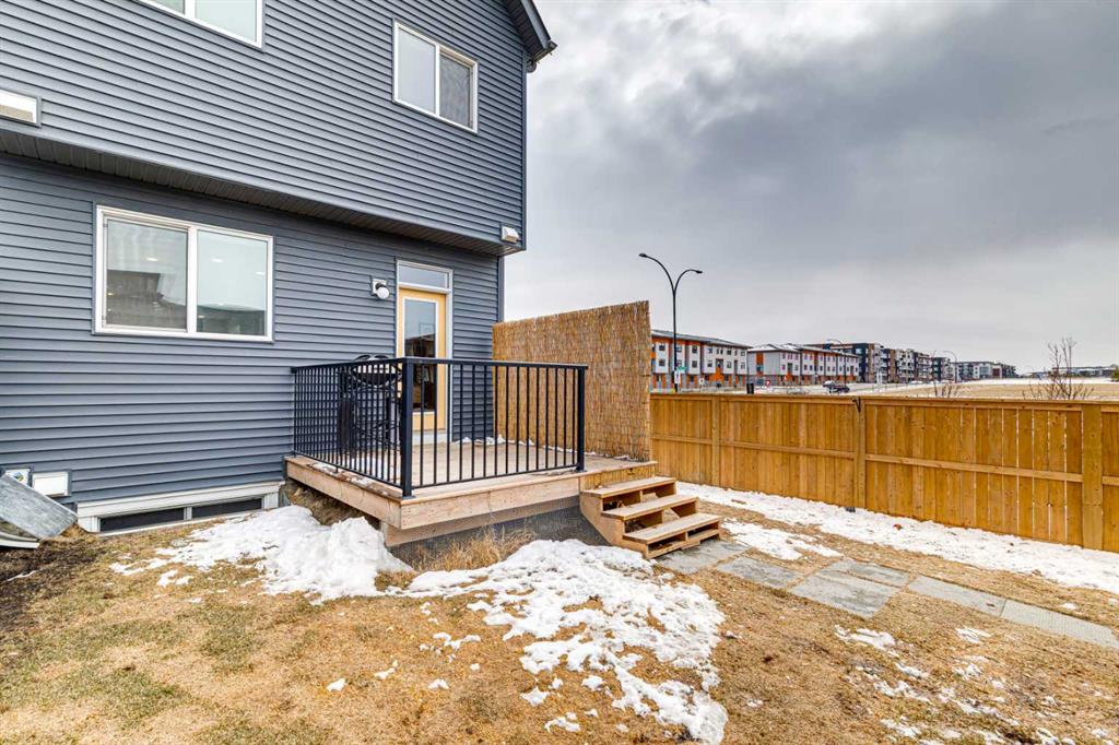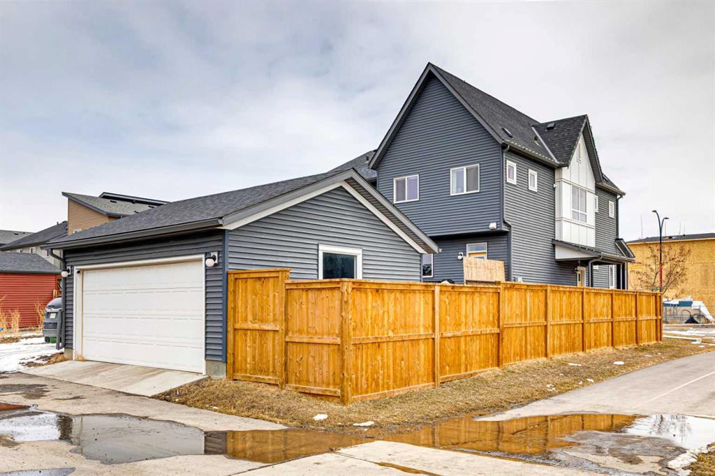 Welcome to this upgraded former Homes By Avi showhome in SW Calgary, perfectly positioned on a corner lot in Belmont with a heated double detached garage and a larger-than-average fully fenced yard. Filled with natural light from its additional windows, this home immediately stands out with a bright, open-concept layout and thoughtful design throughout. The main level offers 9’ ceilings, upgraded LVP flooring, built-in speakers, and a seamless flow between the living, dining, and kitchen spaces — ideal for both everyday living and entertaining. The kitchen is well-appointed with quartz countertops, stainless steel appliances, a full-height cabinetry package, a large island, and a proper hood fan — combining both function and style. Upstairs, the layout is both practical and comfortable, featuring 3 bedrooms, a bonus room, and convenient upper-level laundry. The primary suite offers vaulted ceilings, a walk-in closet, private ensuite, and a Juliet balcony — a rare and standout feature in this price range. The separate side entrance and basement rough-ins provide excellent potential for future development (subject to city approval), making this a strong option for both homeowners and investors. Outside, enjoy a fully landscaped yard, rear deck with BBQ gas line, and additional side yard space — perfect for pets, kids, or added flexibility for future use. Additional highlights include central air conditioning, a high-efficiency furnace, triple-pane windows, smart garage capability, and whole-home speaker wiring. Ideally located with quick access to Stoney Trail and Macleod Trail, this home is surrounded by parks, pathways, nearby pond access, and future community amenities — offering both convenience and long-term value.