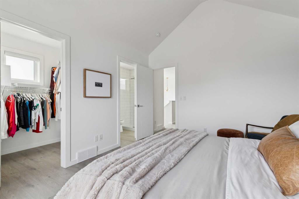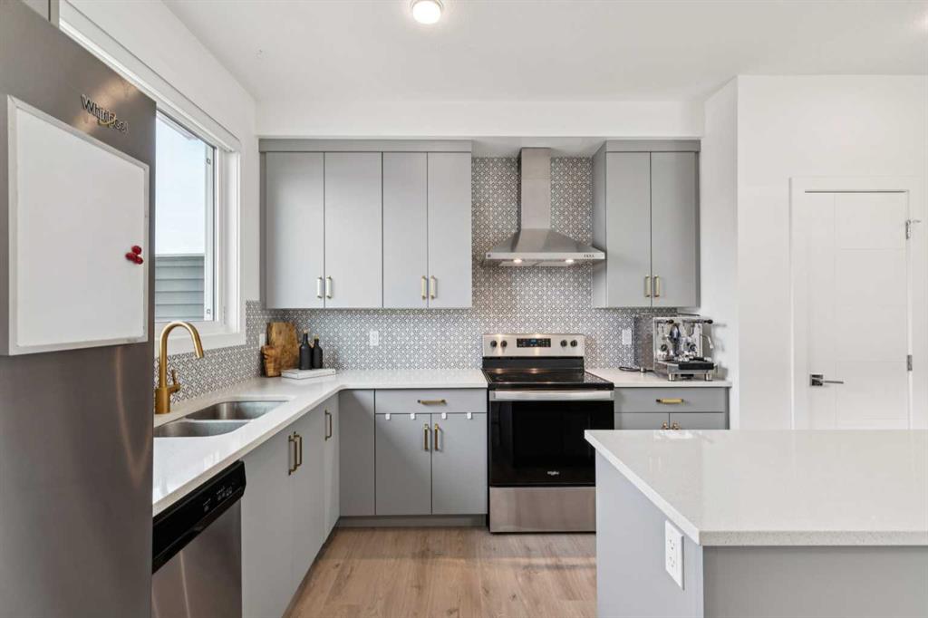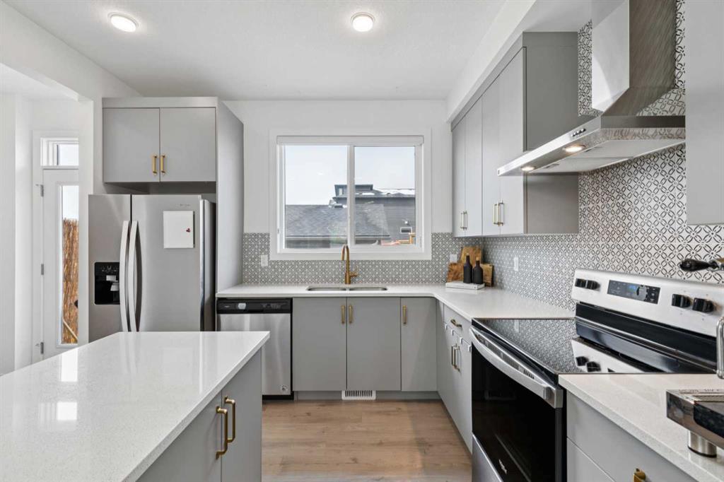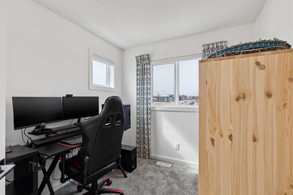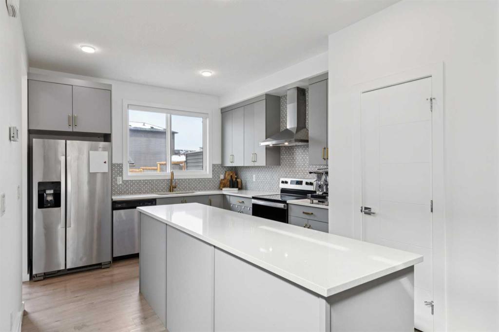 Welcome to this upgraded former Homes By Avi showhome in SW Calgary, perfectly positioned on a corner lot in Belmont with a heated double detached garage and a larger-than-average fully fenced yard. Filled with natural light from its additional windows, this home immediately stands out with a bright, open-concept layout and thoughtful design throughout. The main level offers 9’ ceilings, upgraded LVP flooring, built-in speakers, and a seamless flow between the living, dining, and kitchen spaces — ideal for both everyday living and entertaining. The kitchen is well-appointed with quartz countertops, stainless steel appliances, a full-height cabinetry package, a large island, and a proper hood fan — combining both function and style. Upstairs, the layout is both practical and comfortable, featuring 3 bedrooms, a bonus room, and convenient upper-level laundry. The primary suite offers vaulted ceilings, a walk-in closet, private ensuite, and a Juliet balcony — a rare and standout feature in this price range. The separate side entrance and basement rough-ins provide excellent potential for future development (subject to city approval), making this a strong option for both homeowners and investors. Outside, enjoy a fully landscaped yard, rear deck with BBQ gas line, and additional side yard space — perfect for pets, kids, or added flexibility for future use. Additional highlights include central air conditioning, a high-efficiency furnace, triple-pane windows, smart garage capability, and whole-home speaker wiring. Ideally located with quick access to Stoney Trail and Macleod Trail, this home is surrounded by parks, pathways, nearby pond access, and future community amenities — offering both convenience and long-term value.