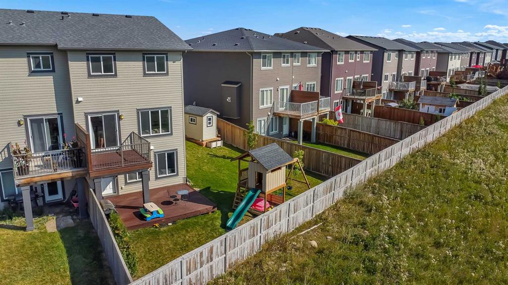 This is the ONE you’ve been waiting for in the highly sought-after community of HILLCREST! This beautifully maintained 3 BED, 3.5 BATH home offers nearly 2,000 SQ FT OF DEVELOPED LIVING SPACE and sits on a RARE, OVERSIZED LOT! Step inside to a thoughtfully designed OPEN CONCEPT MAIN FLOOR, featuring a spacious kitchen with a BREAKFAST BAR, STAINLESS STEEL APPLIANCES including a GAS STOVE, and a PANTRY—perfect for everyday living and entertaining. The kitchen flows seamlessly into the dining area and cozy living room, where you’ll enjoy an UNOBSTRUCTED VIEW and direct access to a PRIVATE BALCONY—with NO NEIGHBOURS BEHIND! A convenient HALF BATH completes the main level. Upstairs, the PRIMARY SUITE is your own private retreat, complete with a 4-PIECE ENSUITE and a WALK-IN CLOSET. You’ll also find TWO GENEROUSLY SIZED BEDROOMS, UPSTAIRS LAUNDRY, and another FULL 4-PIECE BATHROOM. The WALK-OUT BASEMENT is fully finished and offers a WET BAR, is wired for SURROUND SOUND, and includes a 3-PIECE BATHROOM plus plenty of STORAGE SPACE. Outside, enjoy the incredible OVERSIZED YARD—perfect for kids, pets, or hosting summer BBQs—with a SECOND LARGE DECK, PLENTY OF PRIVACY, and a STORAGE SHED for your outdoor gear. You’ll love the convenience of the ATTACHED SINGLE GARAGE, and the unbeatable location—close to schools, walking paths, a local brewery, shopping, and major routes for easy commuting. Don’t miss out on this one—it’s a must-see!
