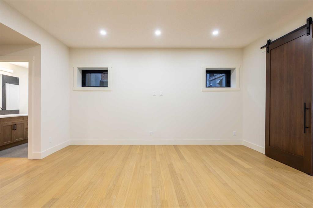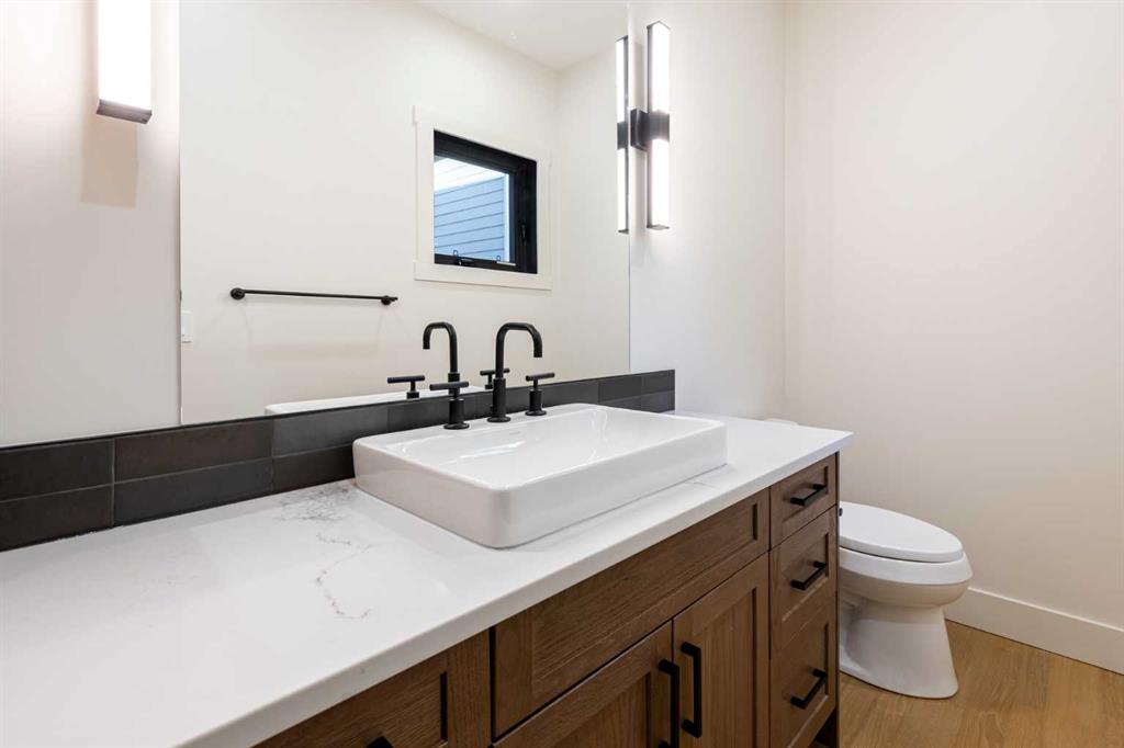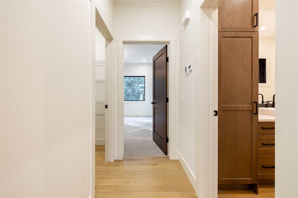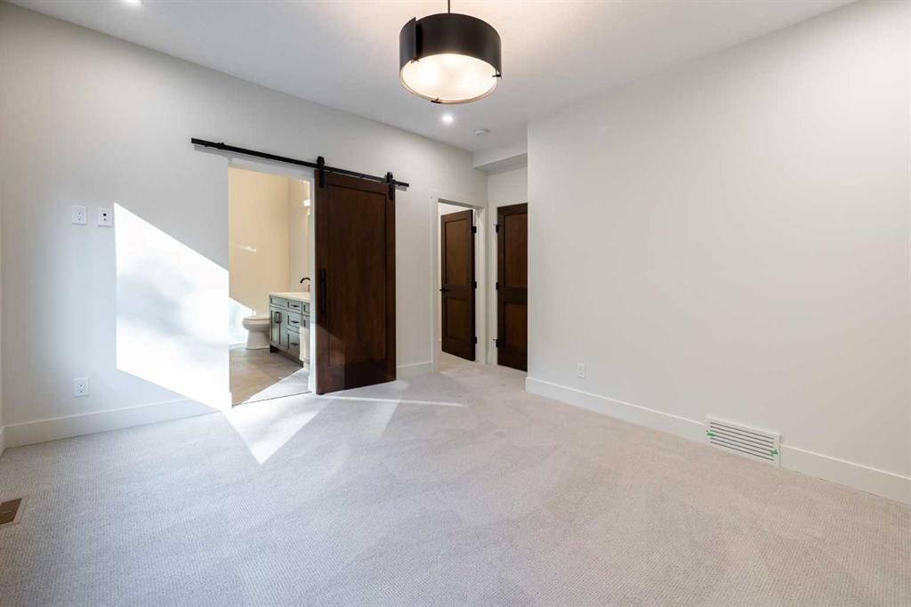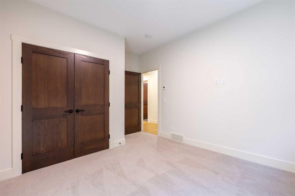 Welcome to this exceptional 3,197 sq. ft. mountain retreat (2,045 sq. ft. above grade), a home that blends sophisticated style with breathtaking natural surroundings. Set against the stunning backdrop of an environmental reserve and with convenient access to downtown Canmore, it offers an unparalleled blend of mountain living and modern luxury. With a total of 4 bedrooms and 3.5 baths, this home is thoughtfully designed for relaxation and entertaining, perfect for those looking to immerse themselves in the beauty of the Rockies while enjoying the finest in modern living. The ranch-style exterior features professional front landscaping and an aggregate driveway that leads to a dbl-attached garage, complete with epoxy-coated floors for a polished and practical finish. Glass railings encase the vinyl deck at the front, offering a stylish touch to your unobstructed views. A built-in BBQ gas line makes outdoor cooking convenient, while the back deck includes similar glass railings and a dura deck surface for durability and low maintenance. Expansive windows capture gorgeous views, bringing the surrounding natural beauty indoors. Enjoy direct access to the double-attached garage, making entry and storage convenient for your everyday needs before inviting warmth welcomes you with two well-sized bedrooms, a full bathroom, and tile flooring throughout. A spacious family room offers a cozy space for gatherings, and large windows flood the lower level with natural light. Head to your main floor, which is the heart of the home, featuring elegant Giverny Oak hardwood flooring in the open-concept living and dining areas. A stone-surround gas fireplace offers a rustic focal point, set against vaulted, beamed ceilings in the great room, which add height and a touch of rustic elegance. Sliding glass patio doors open onto the front deck, where you can grill with the gas BBQ line and enjoy the mountain air. The kitchen is a chef’s dream, boasting quartz countertops, dual-tone cabinets with under-cabinet lighting, and a stylish backsplash. A $10,000 appliance credit allows you to personalize the space with your choice of appliances. Adjacent to the kitchen, you’ll find one of two primary bedrooms that includes a private 5-pc ensuite! Ascend to the exclusive upper floor, entirely dedicated to a luxurious primary suite. This private retreat includes a plush carpeted bedroom, an expansive flex space for a personal office, reading nook, or even a fitness area, and access to a large balcony—ideal for a morning coffee with a view. The spa-like ensuite is an indulgent escape, with a glass-enclosed shower, a separate soaking tub, and “yours and mine” sinks, all designed to provide a serene experience. Luxury lives here. Don’t miss the opportunity to make this retreat your own! SOME PHOTOS ARE VIRTUALLY STAGED.