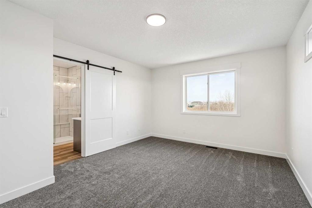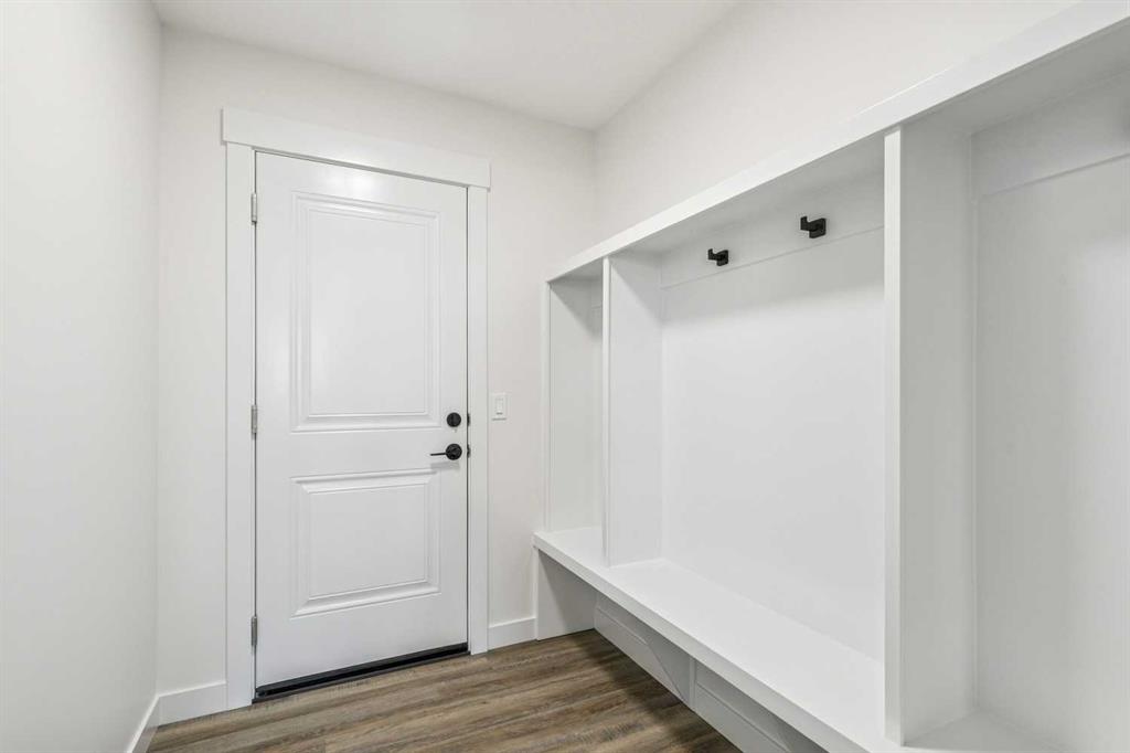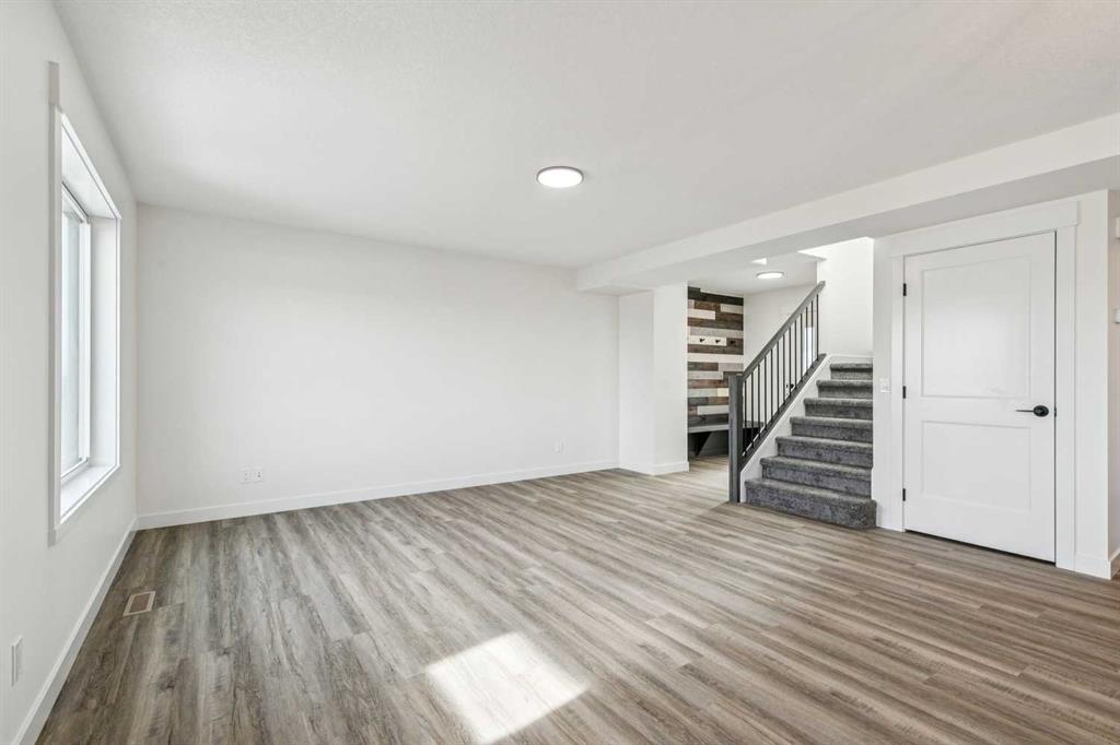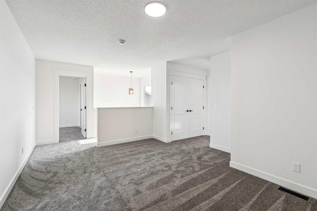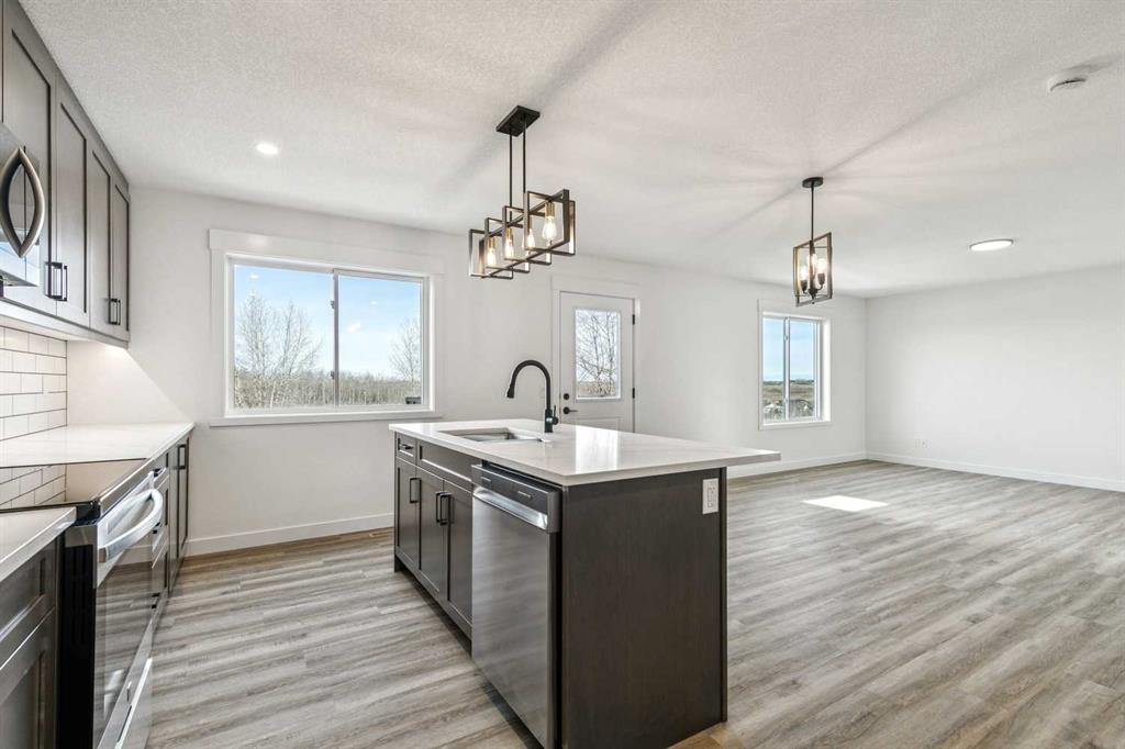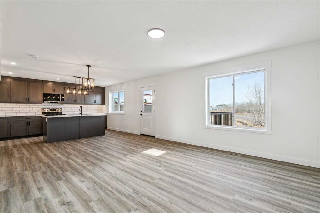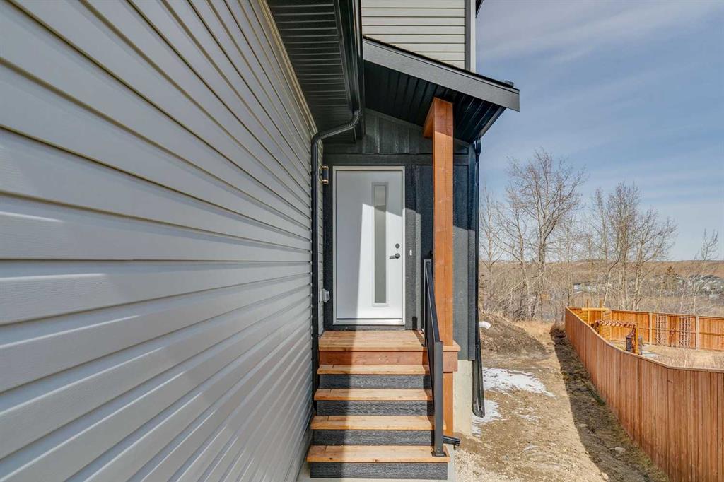 Welcome to this beautifully crafted semi-detached home by Jalin Homes, ideally situated on a quiet cul-de-sac in the charming community of Didsbury. Set on an impressive 8,150 sq ft pie-shaped lot, this property offers exceptional space, privacy, and curb appeal. The oversized double front attached garage and extended driveway ensure parking is never a concern, making this home as functional as it is attractive. Step inside to discover 1,745 sq ft of thoughtfully designed living space, highlighted by luxury vinyl plank flooring, a stunning wood feature wall with built-in bench and coat hooks in the front entry, and a second custom mudroom bench with coat rack for added everyday convenience. The upgraded trim package and spindle railing add a polished, modern touch throughout. The kitchen is a true centerpiece, featuring quartz countertops, undercabinet lighting, a large island, and a large walk-in pantry with wood shelving. The open-concept layout seamlessly connects the kitchen, dining, and living areas—perfect for both entertaining and daily living. Upstairs, you’ll find three spacious bedrooms, a versatile bonus room, and convenient upper-level laundry. The primary suite offers a walk-in closet and a beautifully finished ensuite complete with dual vanities and a fully tiled shower, creating a comfortable and functional retreat. The walk-out basement is undeveloped and full of opportunity, with rough-ins for in-floor heat, a bathroom, and a wet bar or future kitchen. Whether you’re looking to expand your living space or explore additional possibilities (subject to municipal approvals), this lower level provides incredible flexibility. Enjoy immediate possession and peace of mind with a 10-year new home warranty. Located in the welcoming town of Didsbury, you’ll appreciate the strong sense of community along with convenient access to schools, parks, walking paths, and local amenities—all while being within an easy commute to Airdrie and Calgary.