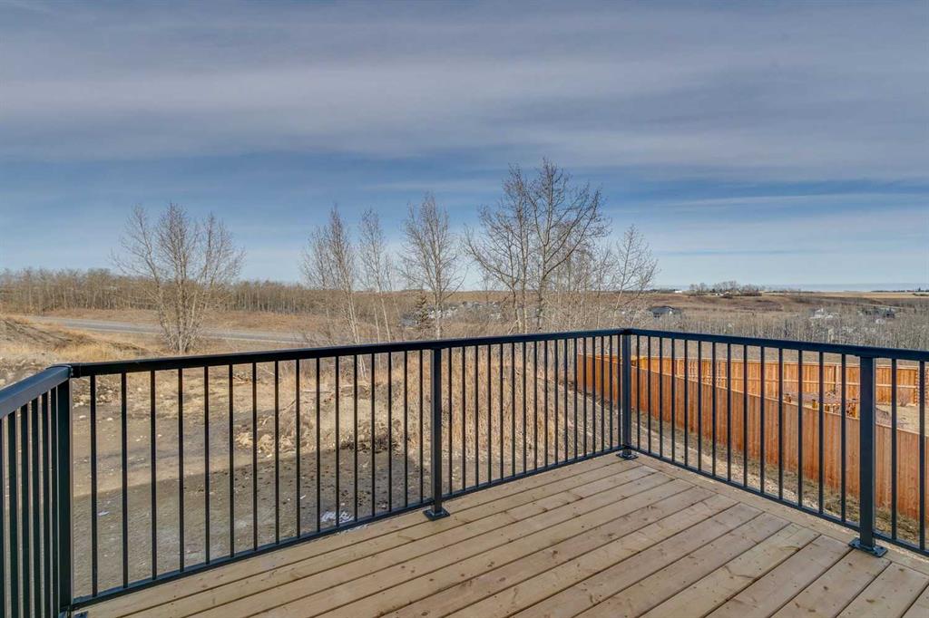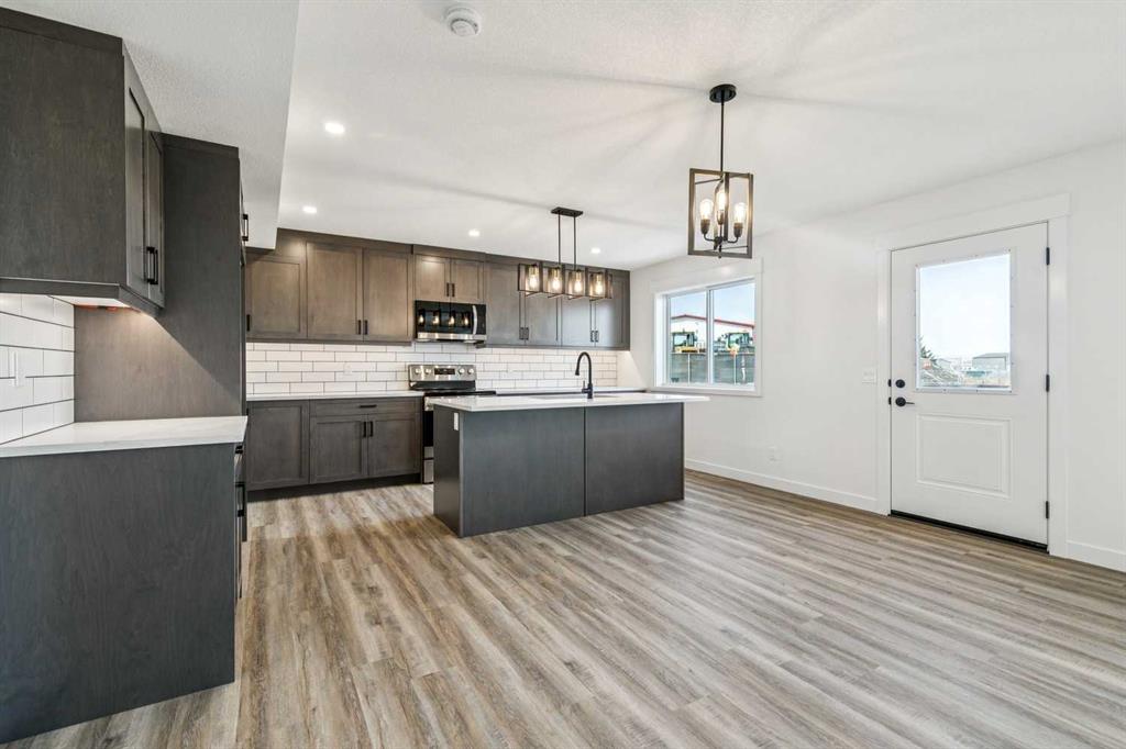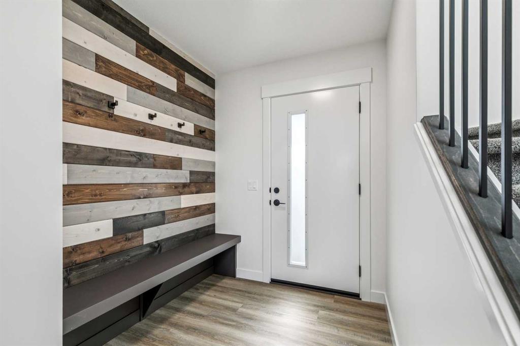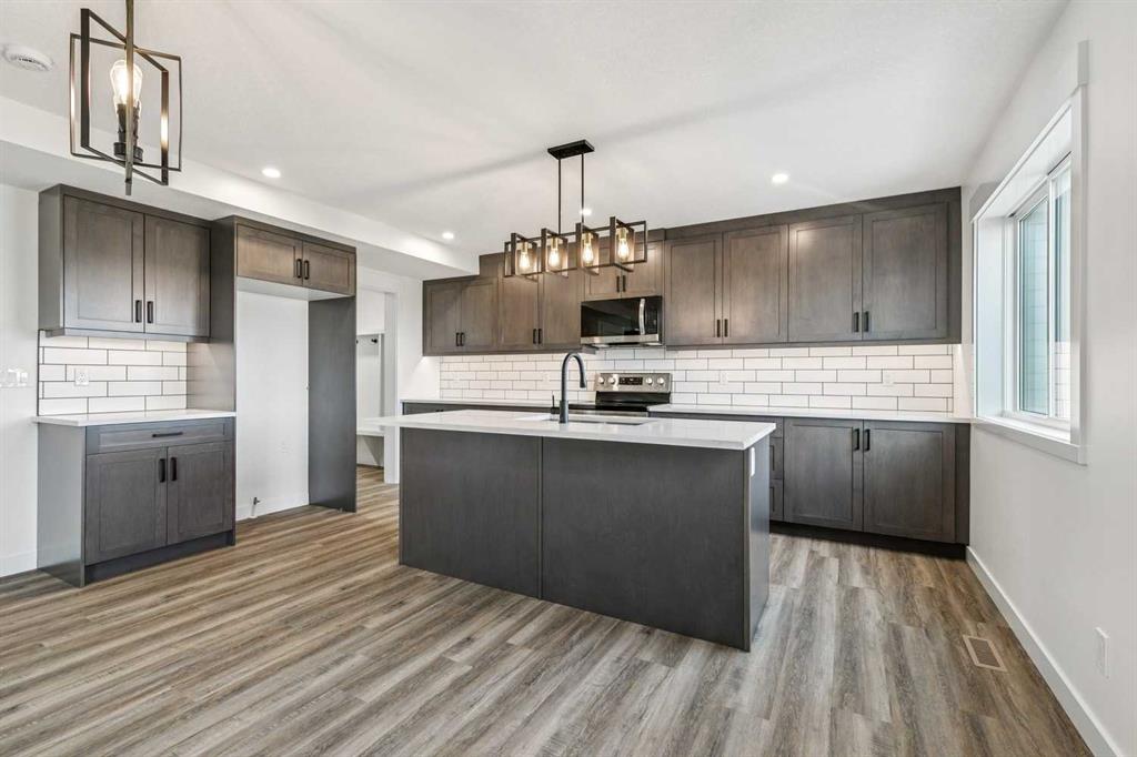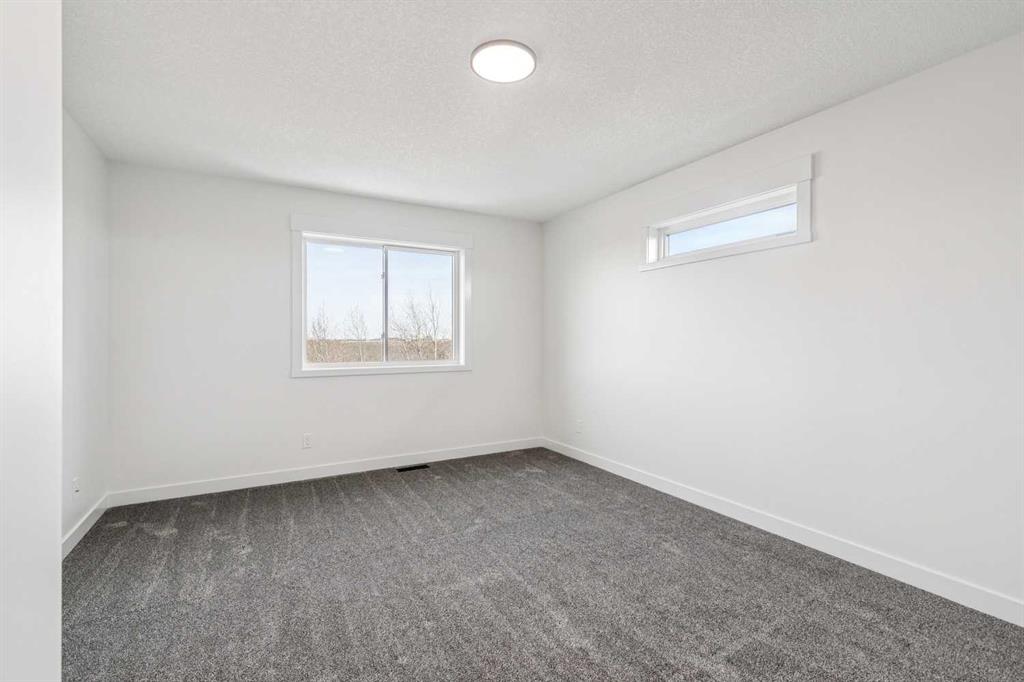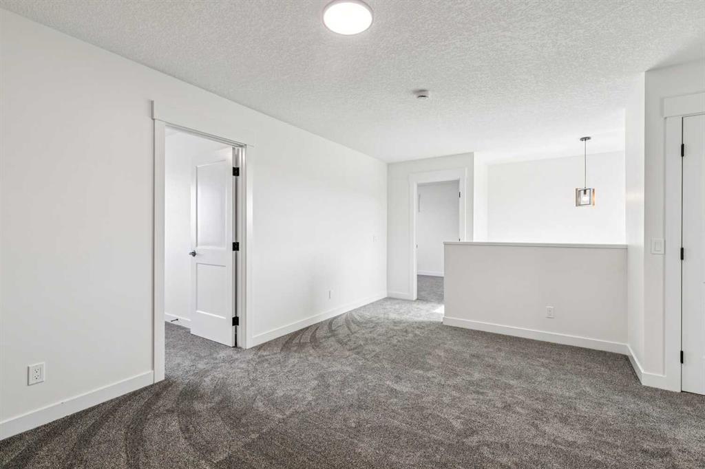Welcome to this beautifully crafted semi-detached home by Jalin Homes, ideally situated on a quiet cul-de-sac in the charming community of Didsbury. Set on an impressive 8,150 sq ft pie-shaped lot, this property offers exceptional space, privacy, and curb appeal. The oversized double front attached garage and extended driveway ensure parking is never a concern, making this home as functional as it is attractive. Step inside to discover 1,745 sq ft of thoughtfully designed living space, highlighted by luxury vinyl plank flooring, a stunning wood feature wall with built-in bench and coat hooks in the front entry, and a second custom mudroom bench with coat rack for added everyday convenience. The upgraded trim package and spindle railing add a polished, modern touch throughout. The kitchen is a true centerpiece, featuring quartz countertops, undercabinet lighting, a large island, and a large walk-in pantry with wood shelving. The open-concept layout seamlessly connects the kitchen, dining, and living areas—perfect for both entertaining and daily living. Upstairs, you’ll find three spacious bedrooms, a versatile bonus room, and convenient upper-level laundry. The primary suite offers a walk-in closet and a beautifully finished ensuite complete with dual vanities and a fully tiled shower, creating a comfortable and functional retreat. The walk-out basement is undeveloped and full of opportunity, with rough-ins for in-floor heat, a bathroom, and a wet bar or future kitchen. Whether you’re looking to expand your living space or explore additional possibilities (subject to municipal approvals), this lower level provides incredible flexibility. Enjoy immediate possession and peace of mind with a 10-year new home warranty. Located in the welcoming town of Didsbury, you’ll appreciate the strong sense of community along with convenient access to schools, parks, walking paths, and local amenities—all while being within an easy commute to Airdrie and Calgary.