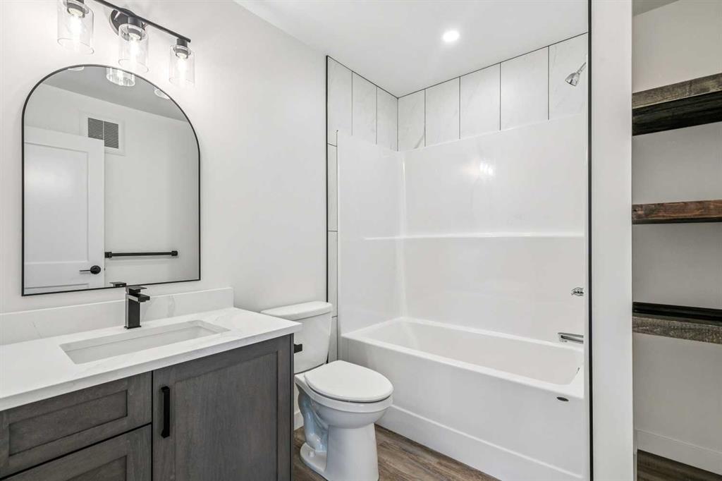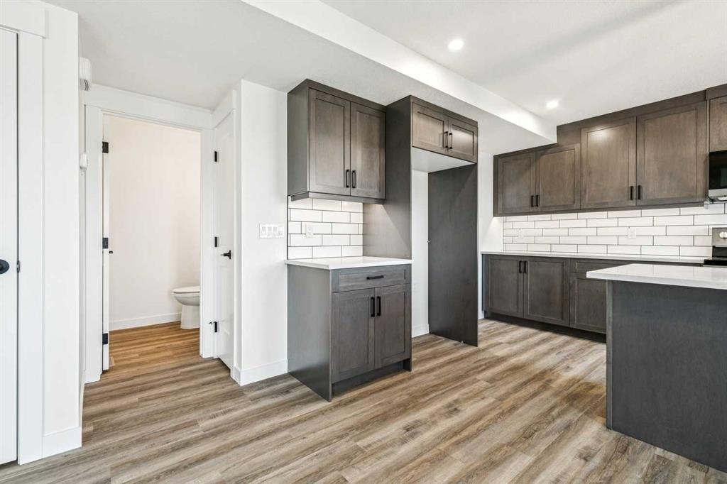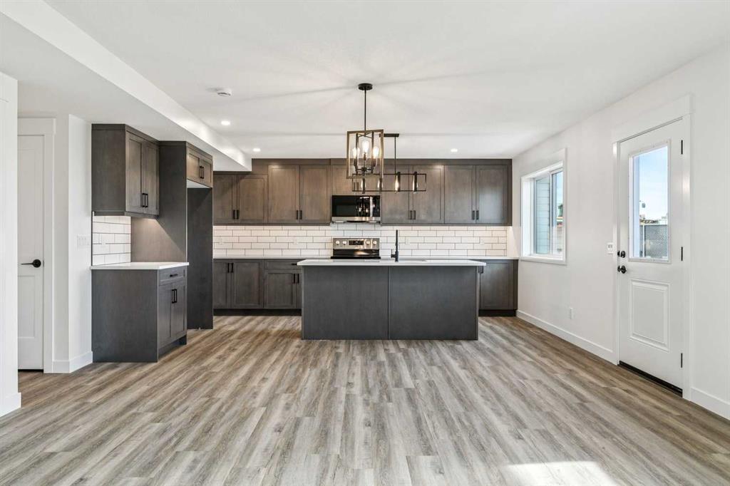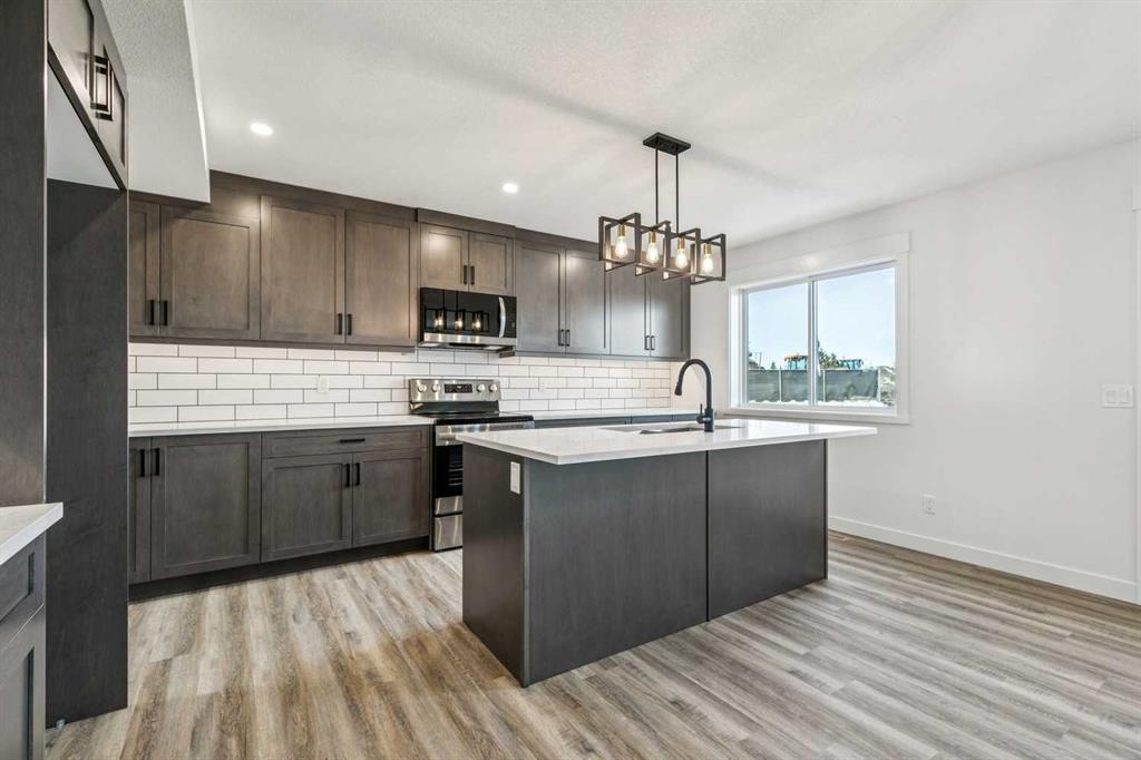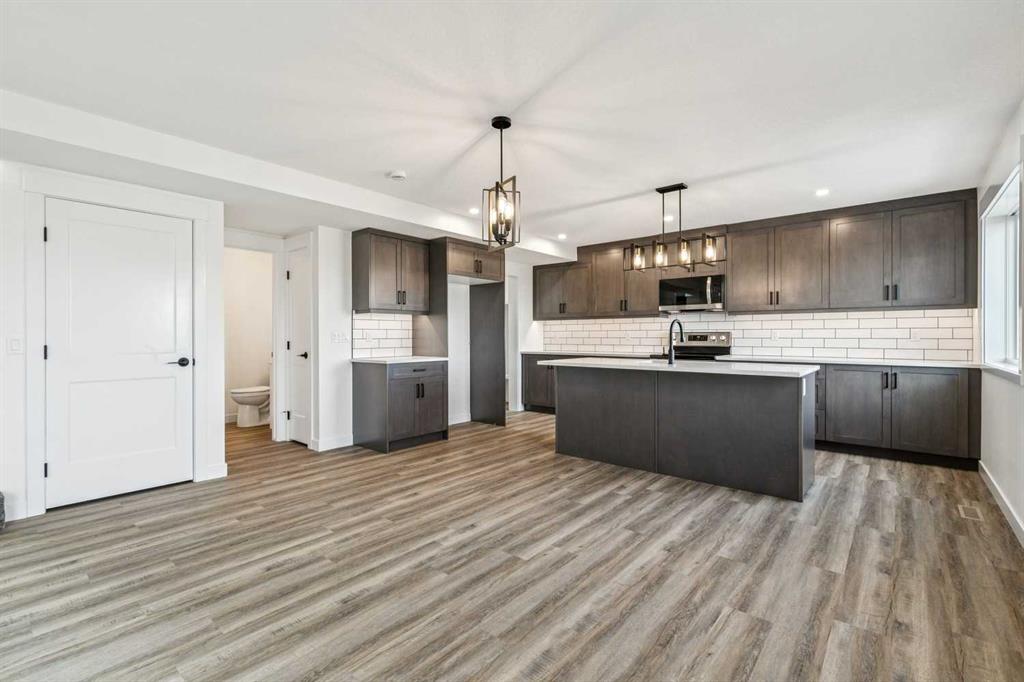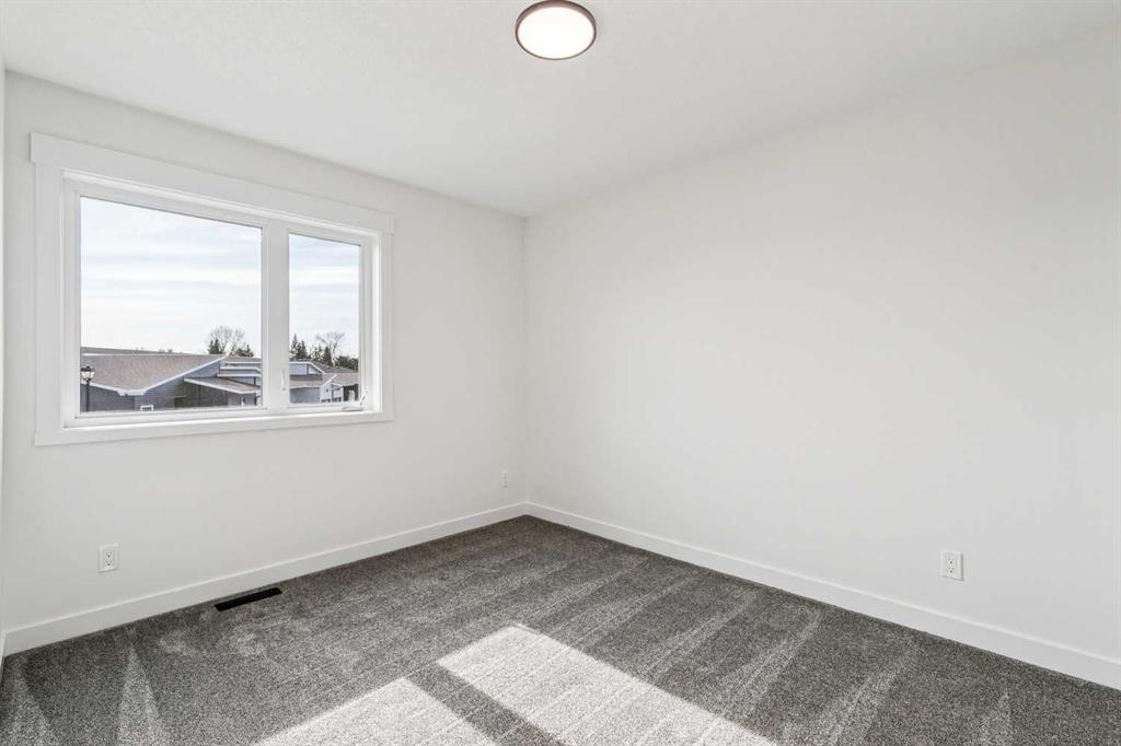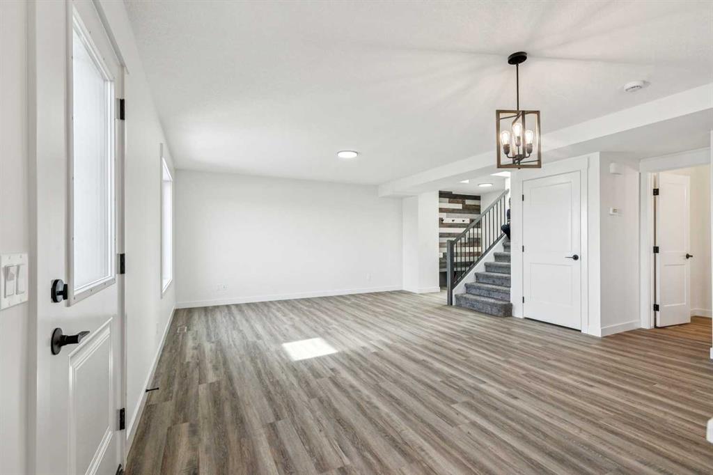 Welcome to this beautifully crafted semi-detached home by Jalin Homes, ideally situated on a quiet cul-de-sac in the charming community of Didsbury. Set on an impressive 8,150 sq ft pie-shaped lot, this property offers exceptional space, privacy, and curb appeal. The oversized double front attached garage and extended driveway ensure parking is never a concern, making this home as functional as it is attractive. Step inside to discover 1,745 sq ft of thoughtfully designed living space, highlighted by luxury vinyl plank flooring, a stunning wood feature wall with built-in bench and coat hooks in the front entry, and a second custom mudroom bench with coat rack for added everyday convenience. The upgraded trim package and spindle railing add a polished, modern touch throughout. The kitchen is a true centerpiece, featuring quartz countertops, undercabinet lighting, a large island, and a large walk-in pantry with wood shelving. The open-concept layout seamlessly connects the kitchen, dining, and living areas—perfect for both entertaining and daily living. Upstairs, you’ll find three spacious bedrooms, a versatile bonus room, and convenient upper-level laundry. The primary suite offers a walk-in closet and a beautifully finished ensuite complete with dual vanities and a fully tiled shower, creating a comfortable and functional retreat. The walk-out basement is undeveloped and full of opportunity, with rough-ins for in-floor heat, a bathroom, and a wet bar or future kitchen. Whether you’re looking to expand your living space or explore additional possibilities (subject to municipal approvals), this lower level provides incredible flexibility. Enjoy immediate possession and peace of mind with a 10-year new home warranty. Located in the welcoming town of Didsbury, you’ll appreciate the strong sense of community along with convenient access to schools, parks, walking paths, and local amenities—all while being within an easy commute to Airdrie and Calgary.