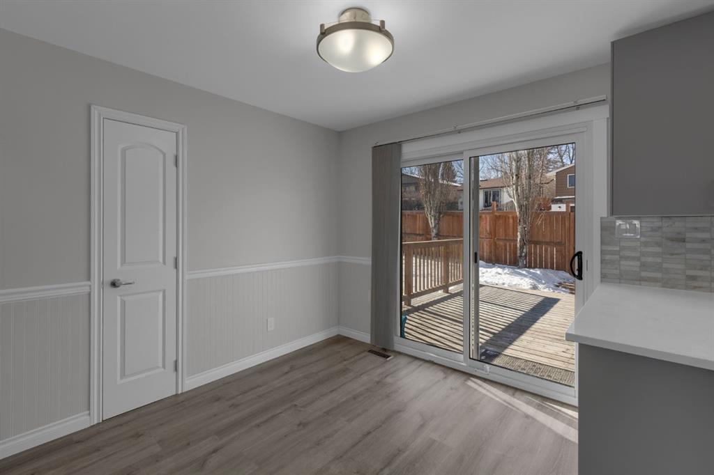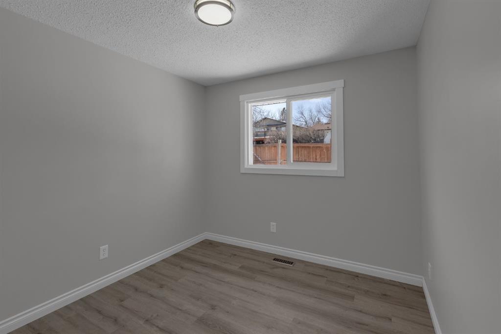 This exquisite, 1,314 sq. ft. bungalow with a fresh top-to-bottom, inside-and-out renovation, showcases exceptional craftsmanship and thoughtful design throughout. The beautifully updated exterior (new soffits, fascia, gutters, insulated vinyl siding and added 1” insulation board), pairs with the striking new front door and glasswork, to create outstanding curb appeal. Step inside to a welcoming foyer that opens into a bright and comfortable living room highlighted by a corner gas fireplace. Luxury vinyl plank flooring and brand new windows (offering additional energy-efficient insulation) extend throughout the bright and airy main floor. Leading from the living area, the fully redesigned kitchen is truly the heart of the home. Featuring stylish new cabinetry, a modern backsplash, and elegant quartz countertops, this culinary space blends functionality with refined finishes. A large window enhances the openness, while the appliance package, including a Samsung stainless steel induction stove, a Frigidaire Gallery double-door refrigerator with a versatile temperature-controlled drawer, and a Bosch dishwasher, add a true premium touch for the home chef. The main level offers three generous-sized bedrooms, providing ample space for family living. Both of the main floor bathrooms, including the primary bedroom’s 2-pc ensuite, and the main bathroom, feature granite countertops, with the main bath boasting a JennAir programmable heated backrest bathtub, perfect for unwinding at the end of the day. Wrought iron railings greet you at the top of the stairs as you descend into the newly updated basement. Downstairs, the recently refreshed basement features new paint, updated lighting, plush carpeting with quality underlay, and another renovated bathroom. The spacious laundry room is accented by a charming sliding barn door, while an oversized storage/workshop area offers excellent versatility. Additional home features include newly replaced shingles (5 months old) and topped up insulation in the attic. Outside, the expansive backyard is designed for both relaxation and entertaining. Enjoy summer evenings on the massive deck, gather around the fire pit area, and take advantage of the RV/car parking area and the included storage shed. The generous yard provides plenty of room for children, pets, and hosting family and friends. Located on a quiet cul-de-sac with a park and playground directly across from your front door, this home offers a wonderful view as well as a safe place for children to play within eyesight. Ideally situated with convenient access to Nose Hill Park, Deerfoot City, and the Calgary International Airport, this home is also close to grocery stores, dining, shopping, schools, and pathways, making everyday living effortless. This is a rare opportunity to own a meticulously renovated property in a desirable and convenient location.