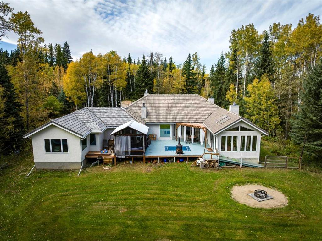 This reimagined Elk Valley home is modern mountain living done right. Oak hardwood and trim throughout the main level, a massive dining area perfect for family gatherings and entertaining, and 1 of 3 fireplaces is a cozy Napoleon woodstove on the main floor that anchors the vaulted living area. At an expansive 6000 square feet of finished space, including bedrooms and bathrooms galore, this home adapts to every stage of life—multi-generational, creative, or simply those seeking open space and the calmness of nature. The finished basement has ample room for workouts, games, movie nights, or wherever your hobbies and imagination take you. If not, 2 oversized double garages can handle the overflow! The 2-acre property backs directly onto greenspace and trail systems that connect to over 80 acres of community accessible forest, and the Elbow River is just a 15-minute walk over the hill. On the outside of the home, the concrete tile roof and modern stucco exterior blend seamlessly into the forest backdrop while protecting against the elements of any season. Evenings invite stargazing from the expansive deck or soaking in the indoor hot-tub sunroom, surrounded by dark, whisper-quiet skies. The fenced yard offers safety for kids and freedom for dogs while the wild hums just beyond the gate. This is Elk Valley Estates—where metro meets raw nature, where design meets intention, and where life slows down just enough to be savoured. Starlink can connect you with the world while you work and play from home. 30m to Calgary amenities, less than an hour to YYC – or a stones throw from the WBC trailhead and all of K-country. More valuable features on this home include new furnaces, air exchange systems, full radon exhaust system, top quality washer and dryer and an additional brand new large capacity washer with additional washer in drawer compartment for delicates, large kitchen pantry, leathered granite counters in bathrooms and mudroom, private well with beautiful water, private septic tank and field system regularly maintained, upgraded insulation and excellent temperate control in all seasons, property is naturally sheltered from wind gusts, circular driveway for easy arrival and departure. Click all links for more media. Out of respect for seller, neighbours and overall general privacy more aerial photos are avaibale upon request but will not be featured on MLS.
