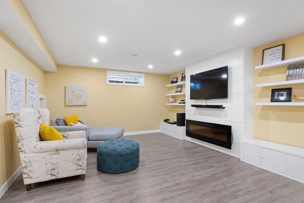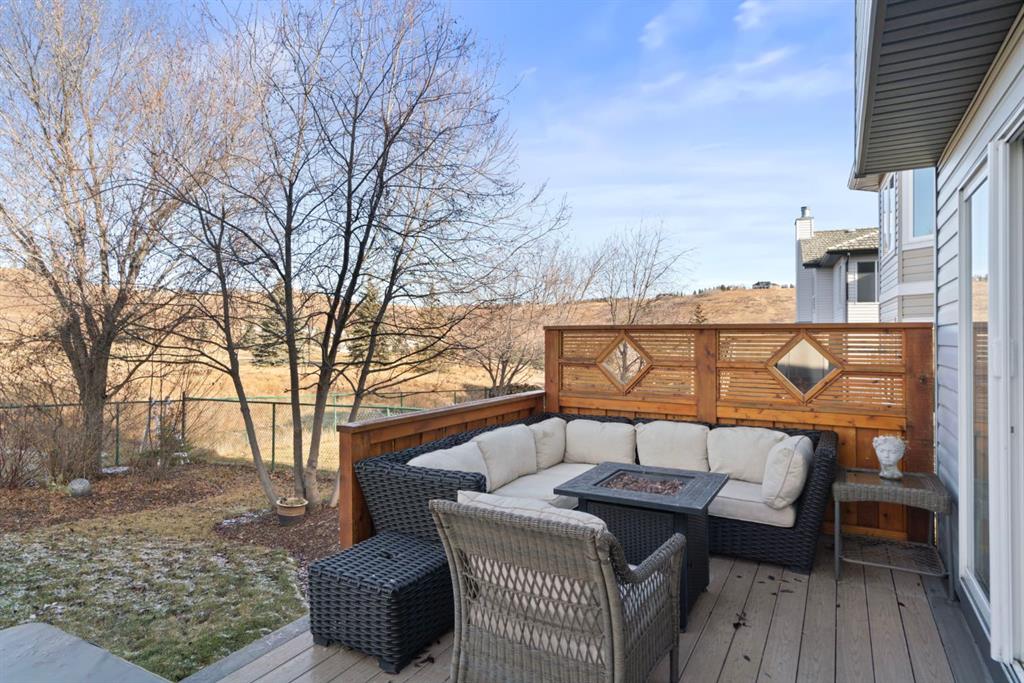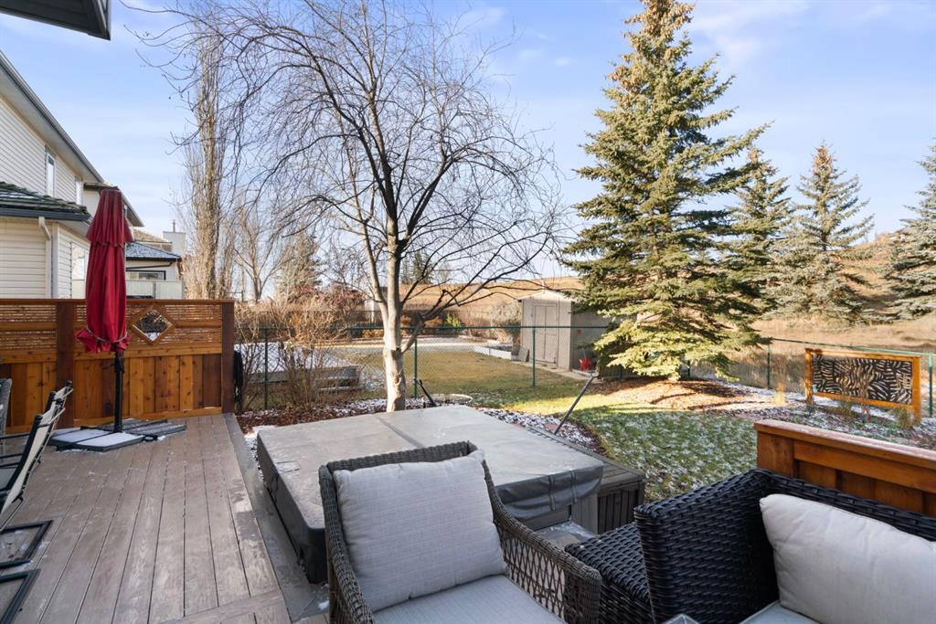 Welcome to 27 Gleneagles Terrace, an inviting, beautifully updated home backing directly onto the rolling fairways of the GlenEagles Golf Course. Thoughtfully designed with sun-filled living spaces and charming character details throughout, this 2-storey offers over 2,800 sq ft of finished living space in one of Cochrane’s most sought-after communities. The main floor features a bright front office with custom built-ins, a welcoming foyer with a bold statement door, and a spacious living room with soaring ceilings, large windows, and a feature fireplace framed by stylish tile and built-ins. The refreshed kitchen is both functional and eye-catching, showcasing crisp white cabinetry, granite counters, a centre island with seating, stainless steel appliances, and a modern tile backsplash. The dining area enjoys peaceful views of the golf course and easy access to the deck. Upstairs, the primary suite overlooks the treed landscape and features a window bench, built-in shelving, a walk-in closet, and a serene 5-pc ensuite. Two additional bedrooms and a full bath complete the level. The fully developed basement is perfect for family living, offering a large recreation room with a sleek fireplace feature wall, media area, gym space, and ample storage. Step outside to your private backyard oasis, where mature trees create a natural buffer and the hot tub provides the perfect spot to relax while watching the wildlife pass by. This is truly a great settings in Glen Eagles, quiet, scenic, and connected to Cochrane’s extensive pathway system. Beautifully maintained and move-in ready, this home combines comfort, style, and an unbeatable location. Don’t miss your chance to live on the golf course in Glen Eagles!