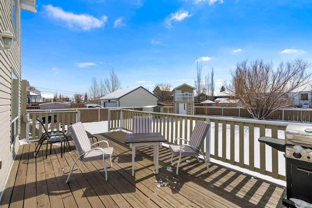The kitchen has been refreshed with NEW QUARTZ COUNTERTOPS IN 2026 and offers plenty of workspace and storage. Recent updates throughout the home include NEW CARPET IN 2025 and beautifully UPDATED BATHROOMS IN 2025, providing a clean, modern feel. Upstairs, you’ll find spacious bedrooms including a comfortable primary retreat with walk in closet and four piece ensuite, while the overall layout offers flexibility for family living. Major upgrades have already been taken care of, including a NEW ROOF IN 2021 and SOLAR PANELS INSTALLLED IN 2022, helping reduce long-term energy costs and improve efficiency. The home also features CENTRAL AIR CONDITIONING perfect for staying cool during those hot Alberta summer days. Step outside and enjoy the expansive backyard complete with a CHARMING CHILDREN’S PLAYHOUSE, making it an ideal space for families. With plenty of room for outdoor living and future possibilities, this yard truly sets the home apart. Located in the welcoming community of Langdon, you’ll enjoy a quieter pace of life while still being just a short drive to Calgary. Families will appreciate being close to Sarah Thompson School (K–4), Langdon School (5–9), and Hugh Sutherland School (Grades 5–12). Everyday amenities are just minutes away including Langdon Crossing Shopping Centre, The Track Golf Course, local parks, pathways, and a variety of shops, restaurants, and services that make Langdon such a desirable place to call home. This is a fantastic opportunity to own a move-in ready home with significant upgrades, a huge lot, and all the features today’s buyers are looking for.