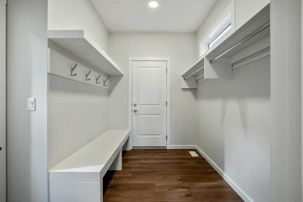 This Remi Model by Bedrock homes is situated on a beautiful corner lot with Mountain views! This model features a welcoming front foyer with open to above, a central flex room on the main floor, and a walk-through mudroom and pantry leading straight to the designer kitchen. The kitchen features coffered ceilings for an elegant feeling with a large island that opens up to the dining area and great room, great for a gathering space! The open to above staircase will lead you upstairs to find two secondary bedrooms with a full bathroom at the front of the home, a central bonus room, laundry, and a large primary suite. Last but not least primary bedroom features a spacious four-piece ensuite with a water closet, dual vanities, and a soaker tub, and conveniently leads straight to the large walk-in closet. Photos are representative.