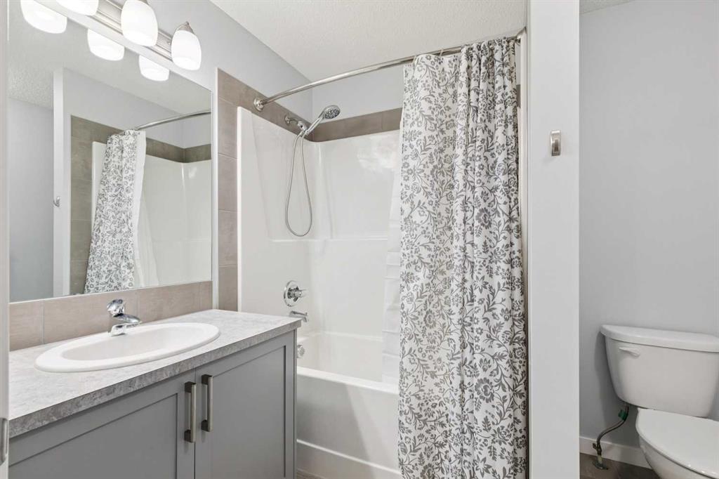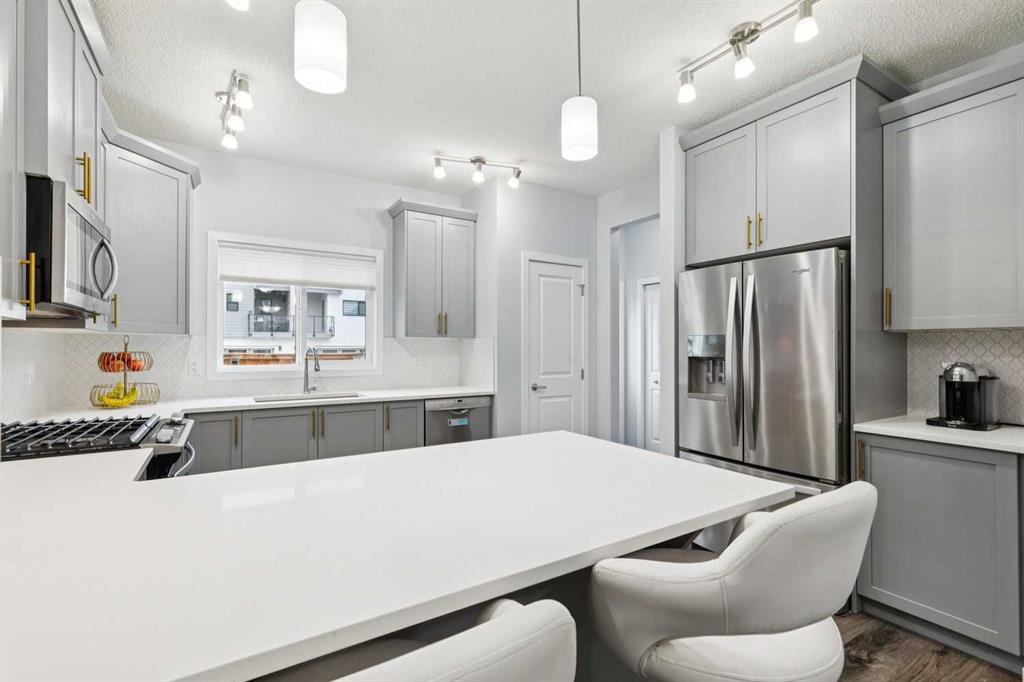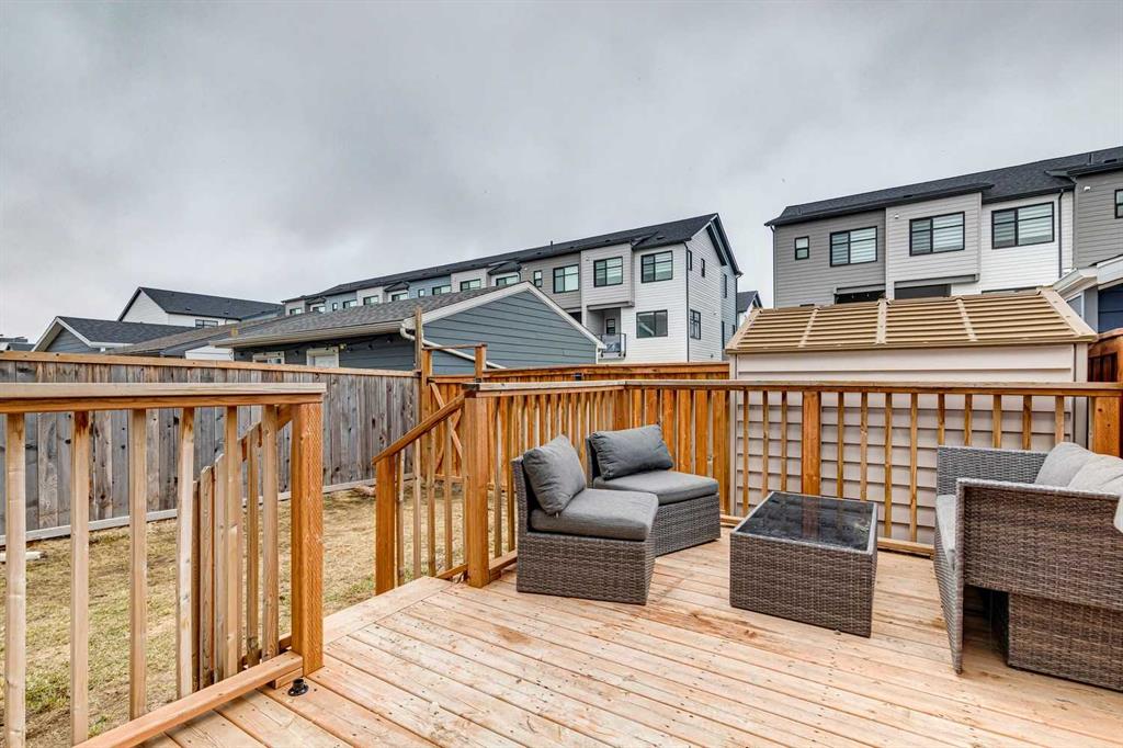 OPEN HOUSE – Sunday April 19, 12:30-2:30 – This unique two-and-a-half storey home in the heart of Mahogany offers the perfect blend of space, function, and style. A large, welcoming front porch sets the tone, leading into a spacious foyer with a practical pony wall that keeps everyday clutter tucked away from the main living space. The living room is warm and inviting with a gas fireplace, large windows that fill the home with natural light, and tasteful floating shelves that add character. The open-concept layout continues into a generous dining area, ideal for family meals or entertaining, and flows seamlessly into a bright kitchen featuring a large U-shaped counter, full-size appliances, pantry storage, and modern cabinetry accented with stylish gold details. Just around the corner, a convenient half bath and access to the fully fenced backyard make daily living easy, while the large deck and rear parking pad for two vehicles add even more functionality. Upstairs, the first upper level offers three bedrooms, including a primary retreat with a walk-in closet and private ensuite, while the other two bedrooms share a 4pc guest bath. Laundry on this floor also adds utmost convenience for families. The top floor creates a standout private space with an additional bedroom, full bathroom, and a versatile den—perfect for a playroom, home office, or quiet retreat. Recent upgrades, including new EVP flooring on the second and third floors (2025) and new carpet on the stairs (2025), bring a fresh, modern feel throughout. The unfinished basement is ready for your future vision. Living in Mahogany means access to one of Calgary’s most sought-after lake communities, known for its beautiful pathways, vibrant amenities, and year-round recreation. Residents enjoy exclusive lake access, nearby schools, shopping, dining, and an active, welcoming neighbourhood atmosphere that makes it easy to feel at home.