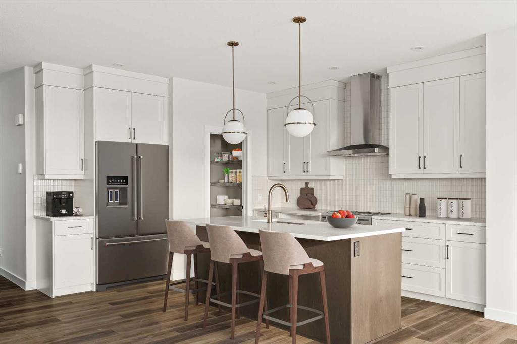 Welcome to the brand-new ‘Purcell 24’ by Brookfield Residential, featuring a fully legal 1-bedroom basement suite and available for possession this year! Situated in the vibrant new community of Seton Ridge, this stunning, fully finished home offers nearly 3,000 square feet of developed living space over three levels, with 5 bedrooms (4 upstairs and 1 in the basement) and 3.5 bathrooms. The open-concept main floor is thoughtfully designed for both everyday living and entertaining. The kitchen is a true showpiece, featuring two-tone cabinetry in rich maple and crisp white shaker finishes, complemented by light luxury vinyl plank flooring throughout — ideal for families with children or pets. A suite of upgraded appliances, including a gas range, built-in microwave, and sleek range hood, elevate the space, while a walk-through pantry adds function, connecting the kitchen to the mudroom and double attached garage for added convenience. Natural light floods the spacious living and dining areas through a wall of windows that overlook the backyard, and a large deck spans the entire width of the home, creating the perfect space to relax outdoors. A stylish 2-piece powder room completes the main level. Upstairs, a central bonus room separates the primary suite from the additional bedrooms, offering privacy and flexibility for a growing family. The luxurious primary retreat features a bright front-facing wall of windows and a 5-piece ensuite with dual sinks, a soaker tub, and a walk-in shower. Three more generously sized bedrooms, a full 4-piece bathroom, and an upstairs laundry room complete the upper level. The walk-out basement is fully developed with a legal 1-bedroom suite, making it an excellent mortgage helper or ideal for multigenerational living. The suite includes its own kitchen, living area, laundry, 4-piece bathroom, and separate mechanical systems. Set in Seton Ridge, a new community where nature meets city convenience, this home is close to pathways, parks, and all major amenities. Plus, it comes with Alberta New Home Warranty and Brookfield’s builder warranty, giving you peace of mind with your new home investment.
